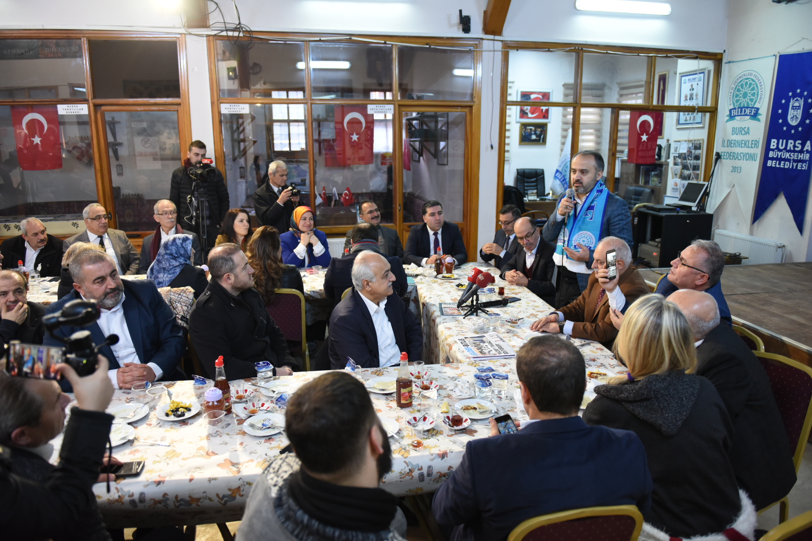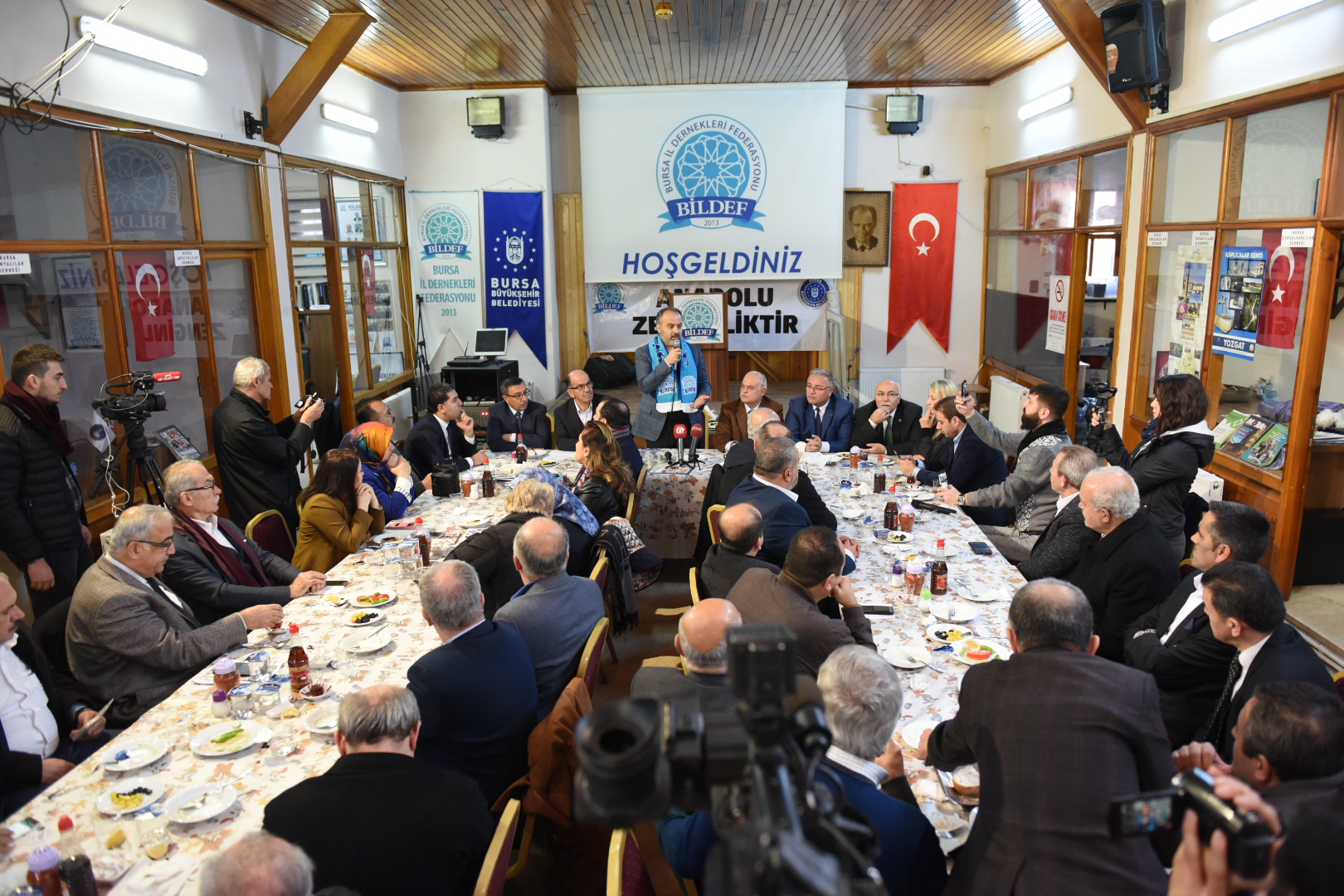 BİLDEF Başkanı Mustafa Dursun ise federasyon olarak birlik ve beraberlik duyguları içerisinde Bursa’nın huzur ve güvenliğine katkıda bulunduklarını söyledi. Anadolu’yu ve Osmanlı’nın ayak bastığı Balkan coğrafyalarını karış karış gezdiklerini, kültürler arasında köprü kurduklarını ifade eden Dursun, “Şimdiye kadar Çorum, Niğde, Afyonkarahisar, Kütahya, Konya, Malatya, Karaman ve Bitlis illerimize geziler düzenleyerek, Bursa’daki kardeşlik bağlarını oralara taşımaya aracılık ettik. Aynı zamanda Saraybosna, Arnavutluk, Kosova, Sırbistan ve Karadağ gibi atalarımızın ayak bastığı coğrafyalara da gezilerek düzenleyerek, kardeşlik bağlarımızı geliştirdik. Bu tür gezileri önümüzdeki aylarda da devam ettireceğiz. Hakkari’den Edirne’ye tüm yurdu dolaşarak, birlik ve beraberliğimizi tüm yurda yaymaya çalışacağız” şeklinde konuştu.