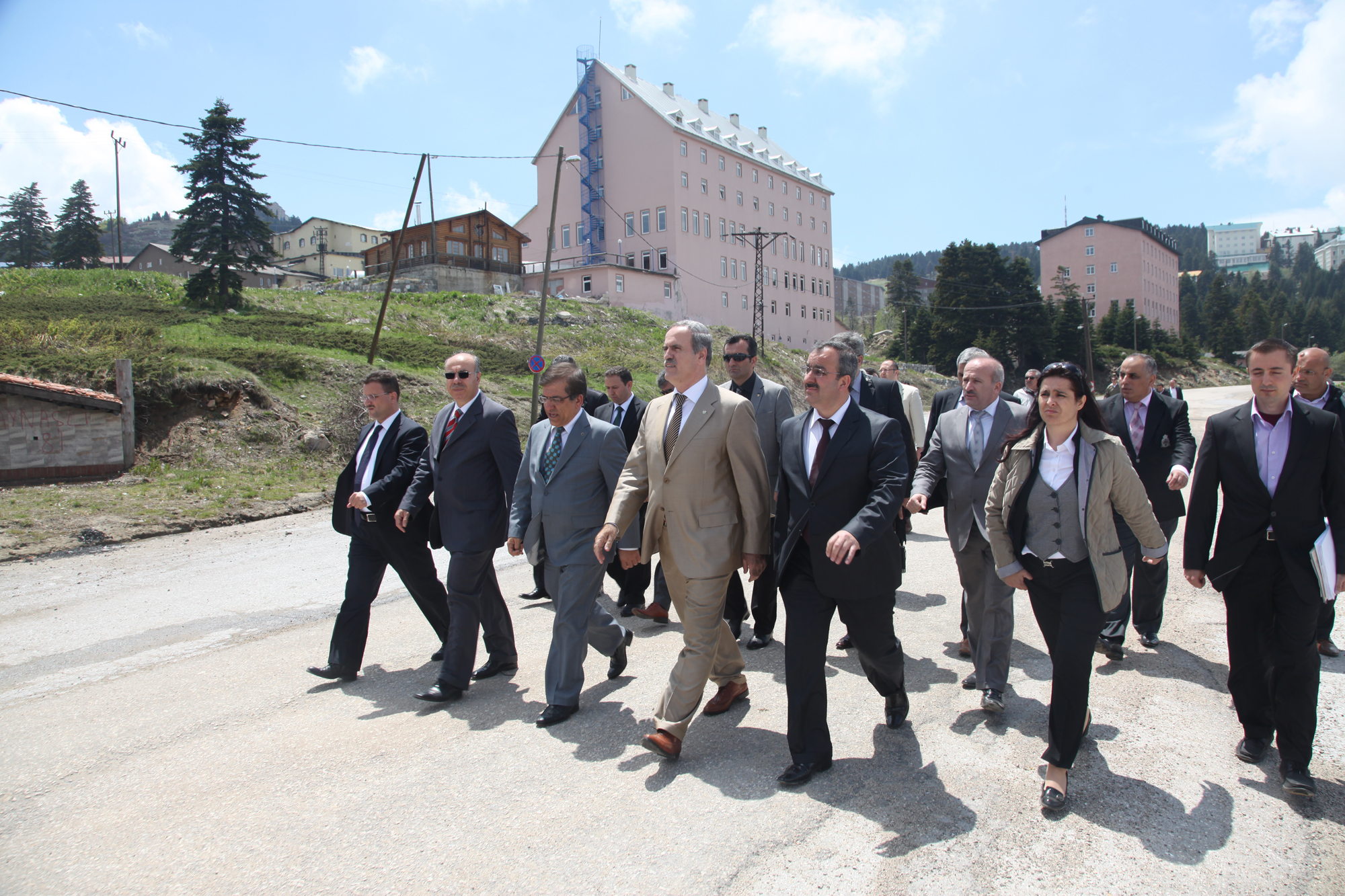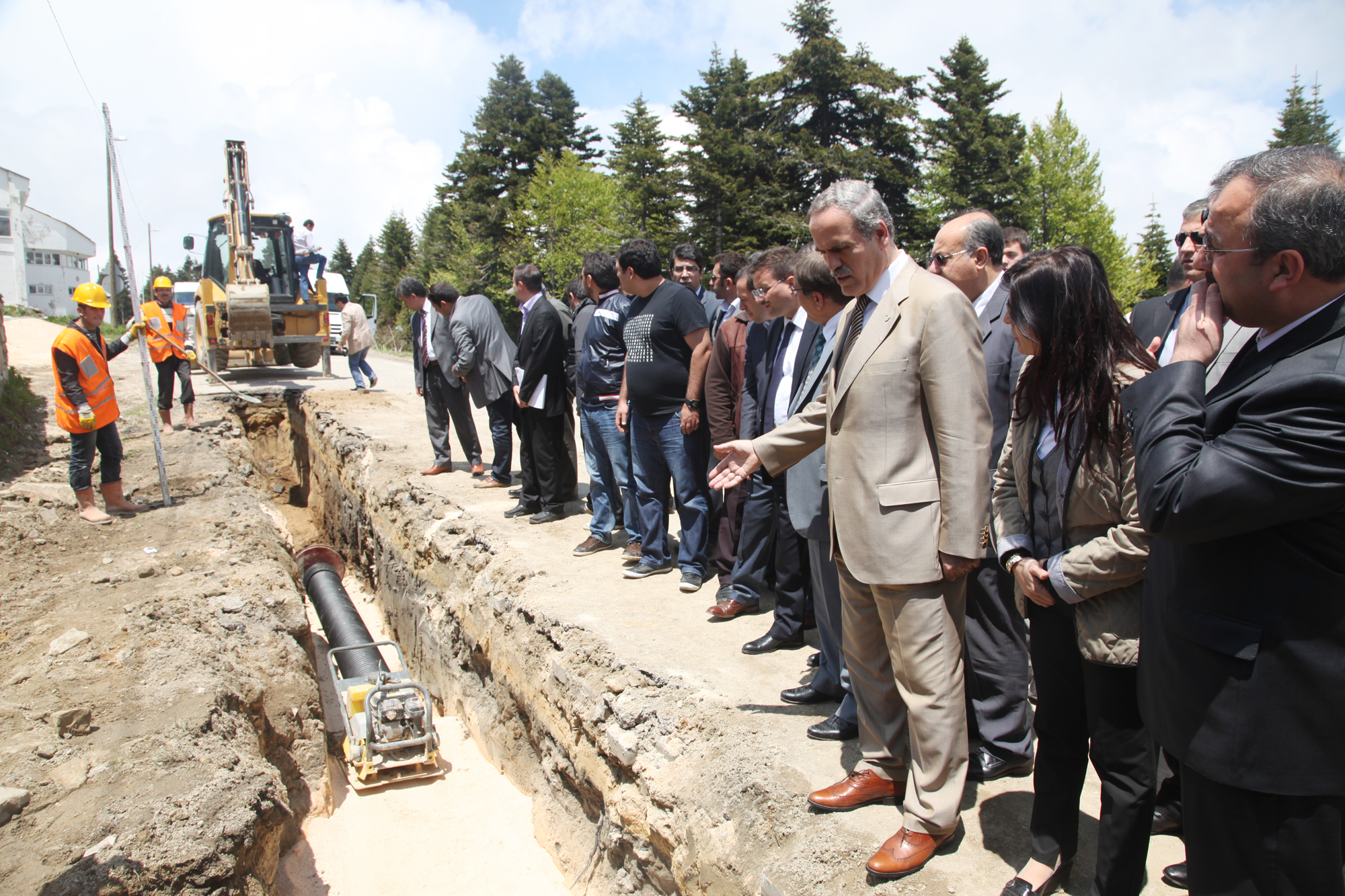 Uludağ’ı dünyaca ünlü bir turizm merkezi haline getirmeyi hedefleyen Büyükşehir Belediye Başkanı Recep Altepe, AK Parti İl Başkanı Sedat Yalçın ile birlikte teleferikle Uludağ’a çıkarak çalışmaları yerinde inceledi. Uludağ’daki altyapı çalışmalarını da Yalçın ile birlikte başlatan Başkan Altepe, Uludağ’da yıllardır konuşulan ama yapılamayan çalışmayı hayata geçirmekten dolayı mutluluk duyduklarını söyledi. Uludağ’da çalışma süresinin mevsim şartları nedeniyle çok kısa olduğunu, bu nedenle Oteller Bölgesi’ndeki çalışmaları kış şartları başlamadan bitirmeyi hedeflediklerini söyleyen Başkan Altepe, “Uludağ, dünyanın en güzel dağı. Bu güzelliğin Bursa’da olması bizim için büyük şans. Uludağ’ı yeniden bir cazibe merkezi haline getirmek için yetkinin Büyükşehir’e verilmesi konusunda uzun zamandır çalışıyorduk. Orman ve Su İşleri Bakanlığı’mız ve Milli Parklar Genel Müdürlüğü ile yaptığımız görüşmeler sonucunda çalışmaları başlattık. Altyapının ardından otoparklarla ilgili çalışmaları da başlatacağız. O konuda bazı küçük pürüzler var. O pürüzleri de aştıktan sonra otoparklar, ardından spor tesisleri, günübirlik tesisler ve kayak pistleri ile ilgili çalışmalarımızı da başlatacağız. Bu çalışmalar kapsamında Alaçam bölgesine uzanan yeni pistlerin yanında mevcut pistlerin ıslah edilmesi ve çevresinin ağaçlandırılması da hayata geçirilecek” diye konuştu.