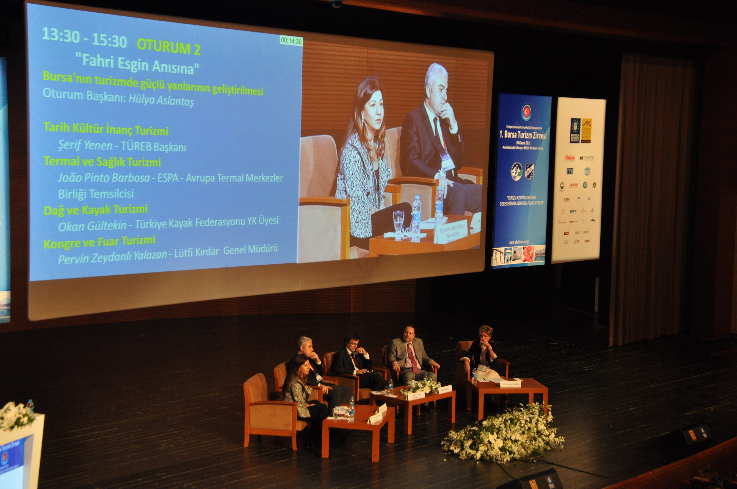 Lütfi Kırdar Kongre Merkezi Genel Müdürü Pervin Zeydanlı Yalazan ise ‘Kongre ve Fuar turizmi’ hakkında düşüncelerini aktardı. Merinos AKKM’nin sektörde yeni olmasına rağmen uluslar arası toplantıları alabileceğini söyleyen Pervin Zeydanlı Yalazan, “Uluslar arası kongrelerin Bursa’ya getirilmesi mümkündür. Bugün olmasa bile yıllar içerisinde uluslar arası kongrelerin Bursa’da yapılacağına inanıyorum. Bursa’da tüm kesimlerin kongre turizmine hazır olduğunu düşünüyorum. Bursa Büyükşehir Belediye Başkanı Recep Altepe’nin açılışta dediği gibi ‘Kongre merkezi yapmakla kongre gelmez’. Tanıtım ve pazarlama faaliyetleri de ayrı koldan başlatılmalı ve sürdürülmelidir. ‘Yeşil Bursa’ vurgusu öne çıkarılmadır. Kongreler uzun vadeli organizasyonlardır. Bugün bile uluslar arası kongre alınabilmesi için en az 3 yıl gerekiyor” dedi.