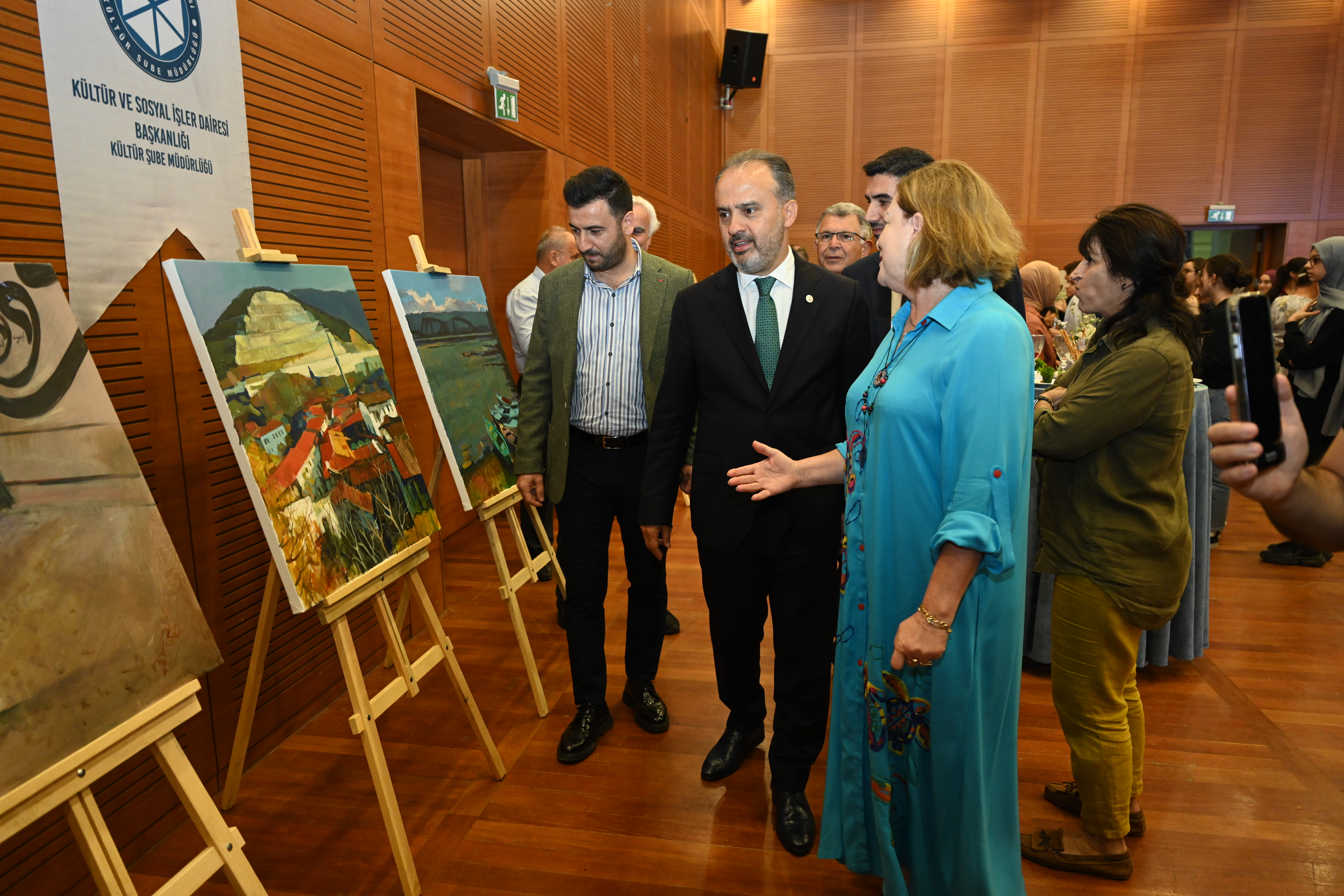 Atatürk Kongre ve Kültür Merkezi Hüdavendigar Salonu’nun fuaye alanındaki serginin açılış törenine katılan Bursa Büyükşehir Belediyesi Başkanı Alinur Aktaş, Bursa’ya önemli bir değer olarak kalacak eserlere imza atan tüm ressamlara teşekkür etti. Her şehrin bir hikayesi olduğunu, Bursa’nın hikayesinin ise belki de en orijinal hikayelerden biri olduğunu kaydeden Başkan Aktaş, “Bursa beş farklı medeniyete ev sahipliği yapmış, özellikle erken dönem Osmanlı'nın eserlerini bağrında barındıran ve çok önemli izlerini hala taşıyan bir şehir. Burada açıkçası ressamlarımızın eserlerine baktığımızda da bunu çok net görmek mümkün. Ben her bir sanatçımıza teşekkür ediyorum. Bu çalışmalar ne benim şahsıma ve ne de bir başka kişiye ait çalışmalar. Bunlar Bursa'nın çalışmaları, Bursa'ya değer olarak kalacak çalışmalar. Dolayısıyla şehir dışından, yurt dışından gelen misafirlerimiz var. Her birine ayrı ayrı teşekkür ediyorum. Yüreklerine sağlık” dedi.
