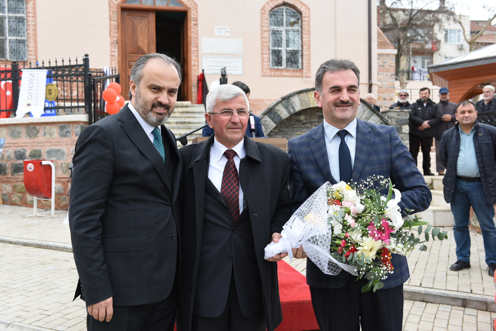 BURSA – Bursa Büyükşehir Belediyesi tarafından Gemlik İlçesi’nde yapımı tamamlanan Tarihi Umurbey Çarşı Camii çevresi ve meydan düzenlemesi, törenle ilçelilerin hizmetine açıldı. Büyükşehir Belediye Başkanı Alinur Aktaş, Büyükşehir Belediyesi olarak ayrım yapmadan tüm ilçelerin problemleriyle yakından ilgilendiklerini söyledi.