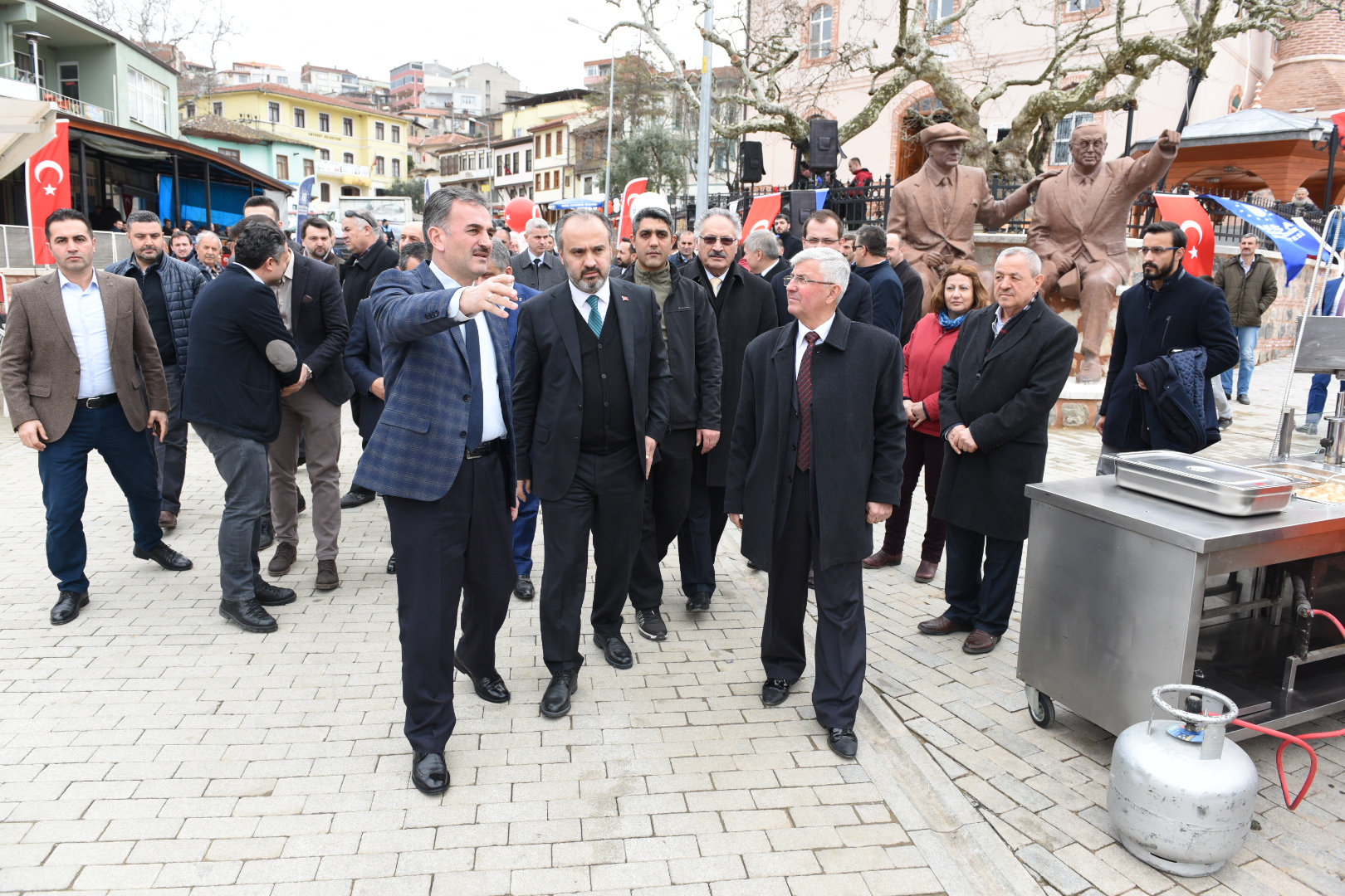 Büyükşehir Belediyesi tarafından birçok noktada tarihi kültürel yapıların bakım ve onarım çalışması yapıldığını hatırlatan Başkan Aktaş, “Gemlik gibi önemli bir ilçemizin, mahallelerinin meydanları da çok önemli. Çünkü bölgeler meydanlarıyla anılıyor. İşin bir ayağında Gemlik Belediyesi diğer ayağında Büyükşehir Belediyesi var. Yapılan çalışmalarla bu güzel eser ayağa kaldırıldı” dedi.