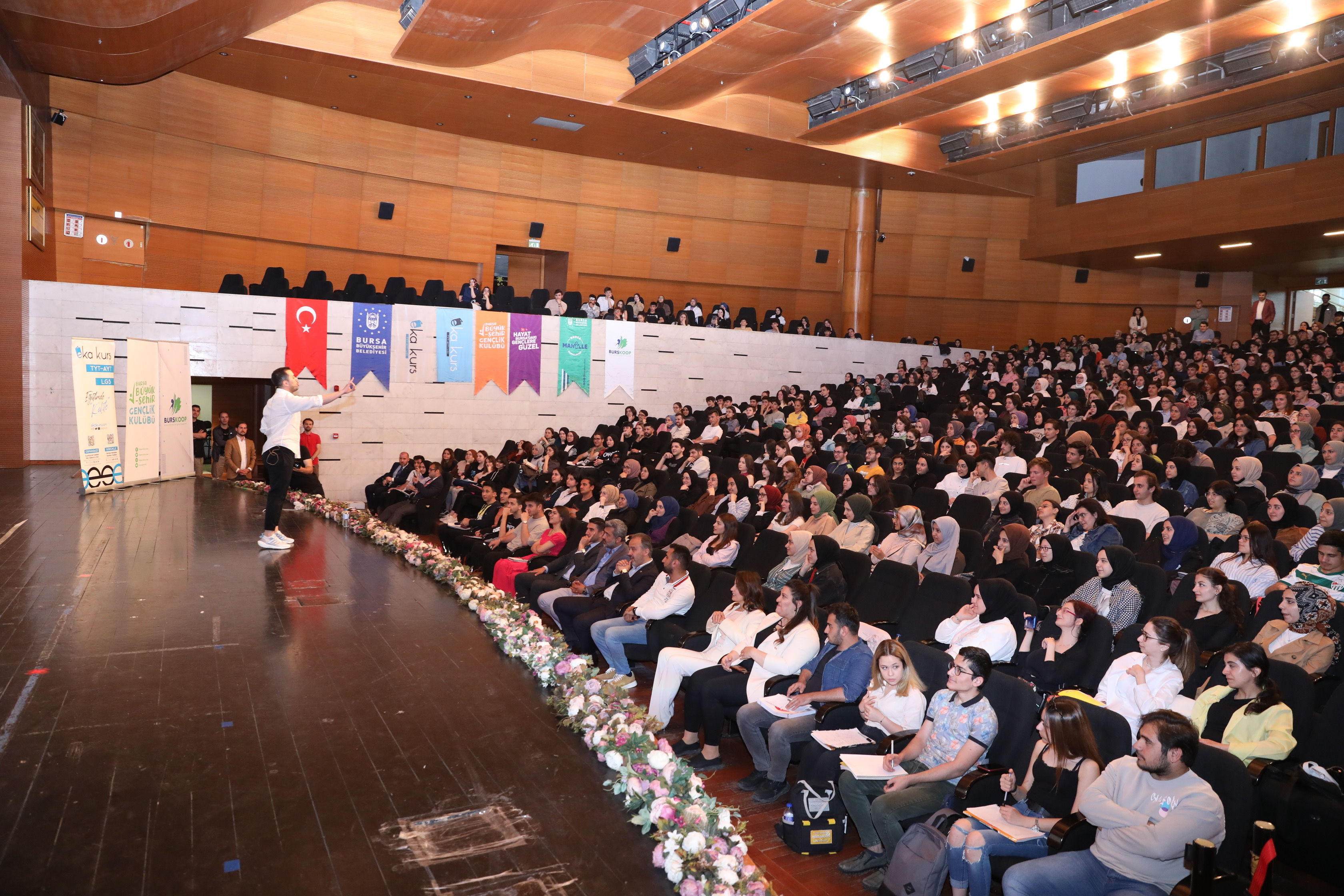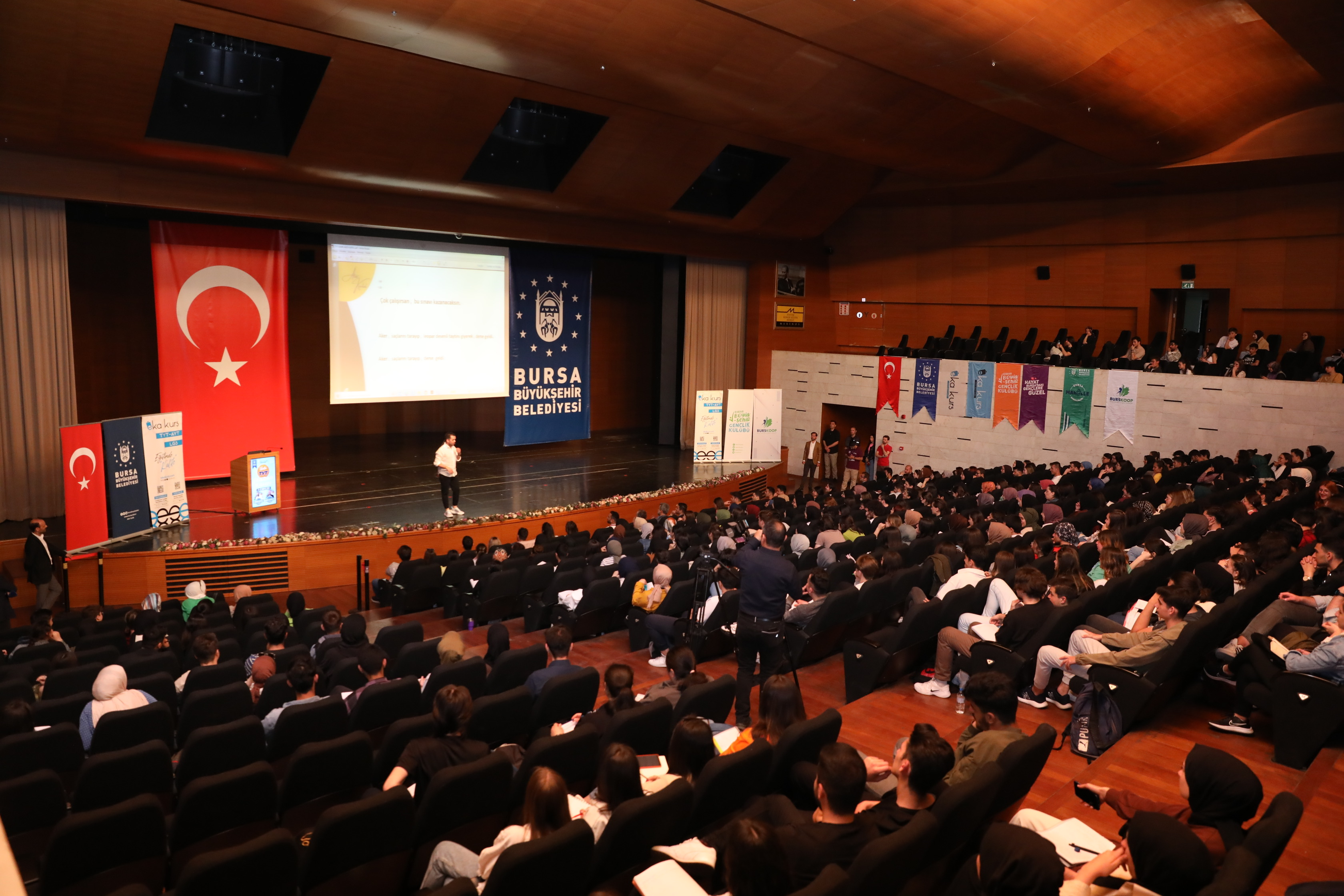 19 Mayıs Atatürk’ü Anma Gençlik ve Spor Bayramı, Bursa’da bu sene kapsamlı hazırlanan programlarla dolu dolu kutlanıyor. Bir haftaya yayılan etkinliklerle eğlencenin tadını çıkaran gençler, tiyatrodan konsere kadar birçok farklı organizasyonla bayramı büyük keyifle yaşıyor. Bursa Gençlik Festivali kapsamında Atatürk Kongre Kültür Merkezi’nde düzenlenen TYT Genel Tekrar Kampı, gençlerin yoğun katılımıyla başladı. İki gün süren tekrar kampında, alanında uzman eğitmenler tarafından gençlere zorlandıkları konular ve sınavda çıkan sorular hakkında detaylı konu anlatımı yapıldı.