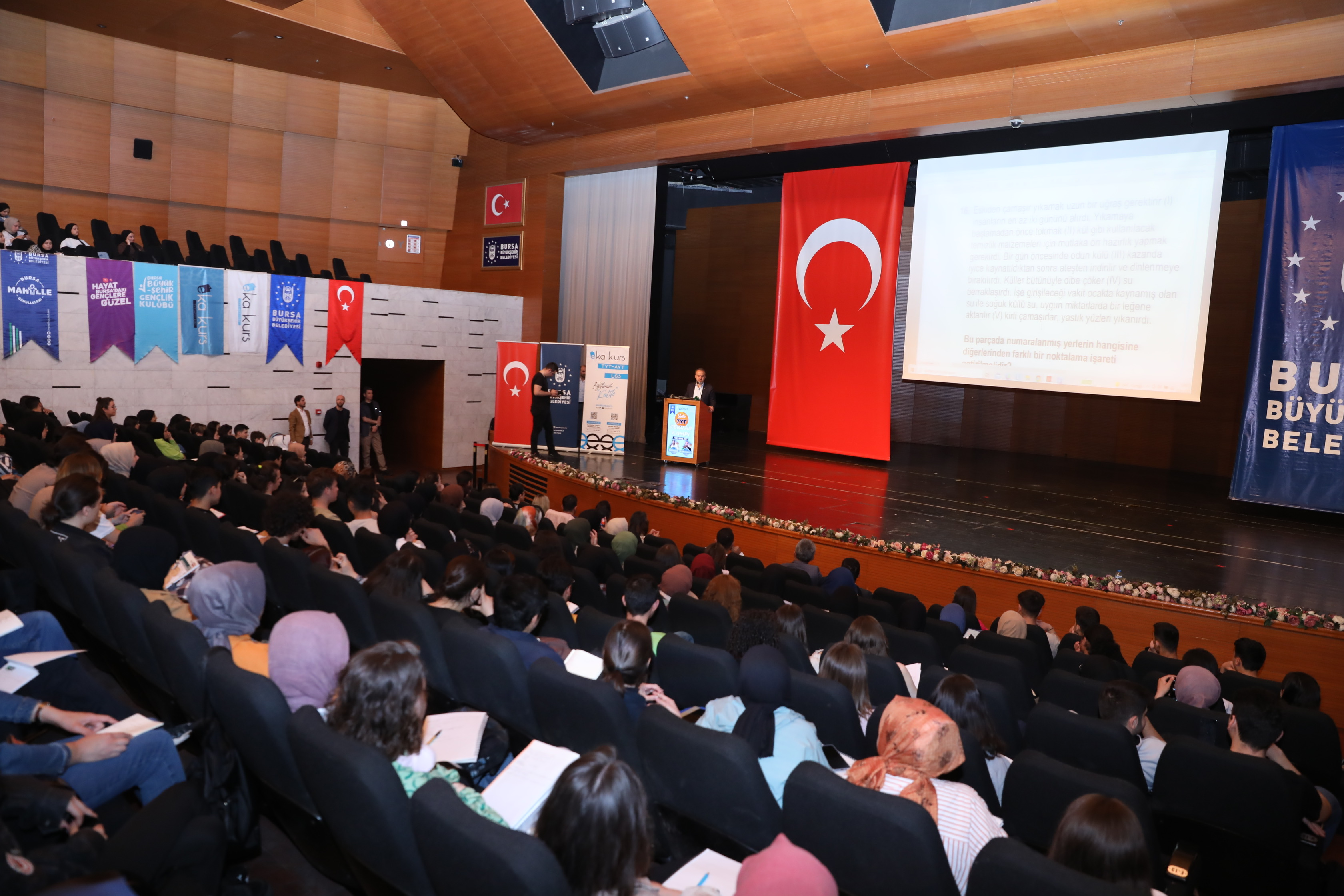 BURSA – Bursa Büyükşehir Belediyesi, 19 Mayıs Atatürk’ü Anma Gençlik ve Spor Bayramı’nı bir haftaya yayılan programlarla kutlamaya devam ederken, Bursa Gençlik Festivali kapsamında düzenlenen TYT Genel Tekrar Kampı gençlerden büyük ilgi gördü.