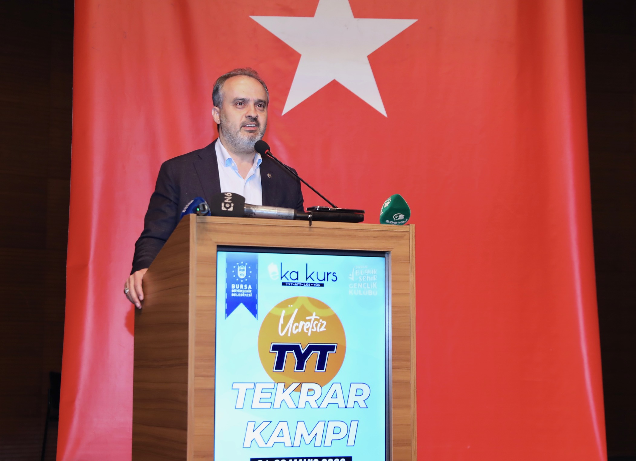 Bursa Büyükşehir Belediye Başkanı Alinur Aktaş da TYT Genel Tekrar Kampı’na katılarak gençlerle biraraya geldi. Sınava hazırlanan gençlerin heyecanını hissettiğini söyleyen Başkan Alinur Aktaş, herkesin gönlünden geçen bölümleri kazanmasını temenni etti. Gençlerin istediği bir işi keyifle yapmasının önemli olduğunu belirten Başkan Aktaş, belediyelerin asli işlerinin yol, ulaşım ve altyapı konuları olmasına karşın gençlik projelerine ayrıca önem verdiklerini ifade etti. 19 Mayıs Atatürk’ü Anma Gençlik ve Spor Bayramı’nı bir haftaya yayarak Gençlik Festivali ile kutladıklarını anlatan Başkan Aktaş, “Amacımız geleceğimiz olan gençlerimizin hayata daha iyi hazırlanmasını sağlamaktır. Yıl içerisinde üniversite sınavına hazırlanan öğrencilere çeşitli eğitimlerin yanı sıra YKS deneme sınavı kitapçığı dağıtımı gibi sınav öncesi hazırlık süreçlerine de yardımcı oluyoruz. Sınav öncesinde hızlandırılmış kamplarla üniversite adaylarına tam destek veriyoruz. Bunun yanında 3 bin üniversite öğrencisine BURSKOOP marifetiyle burs vermeye başladık. Eylül ayından itibaren bu sayıyı 5 bine çıkarmayı hedefliyoruz” dedi.