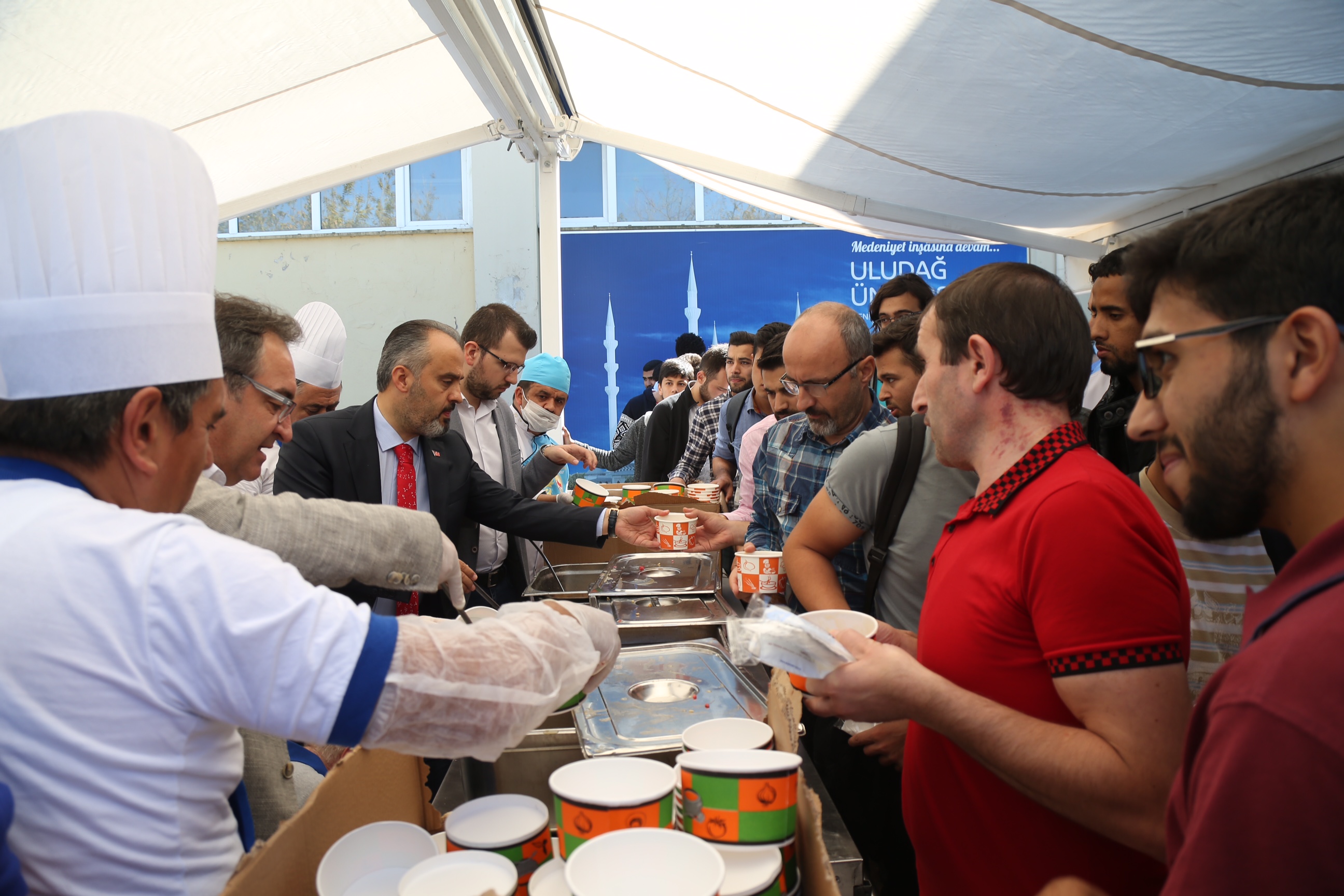 Başkan Alinur Aktaş daha sonra Uludağ Üniversitesi Rektörü Prof. Dr. Yusuf Ulcay, AK Parti Nilüfer İlçe Başkanı Ufuk Ay, AK Parti İl Gençlik Kolları Başkanı Tarık Köse, Rektör Yardımcıları ve akademisyenlerle birlikte öğrencilere aşure ikramında bulundu. Şehrin muhtelif yerlerinde aşure dağıtımlarının devam ettiğini dile getiren Başkan Aktaş, Bursa Büyükşehir Belediyesi'nin 50 bin civarında aşure dağıttığını ifade etti. Bursa'nın da her bölgeden insanı bünyesinde barındırmasıyla aşureye benzediğini anlatan Başkan Aktaş, Uludağ Üniversitesi'nde eğitim gören gençlerin ağızlarını tatlandırmak amacıyla aşure ikramında bulunduklarını kaydetti.