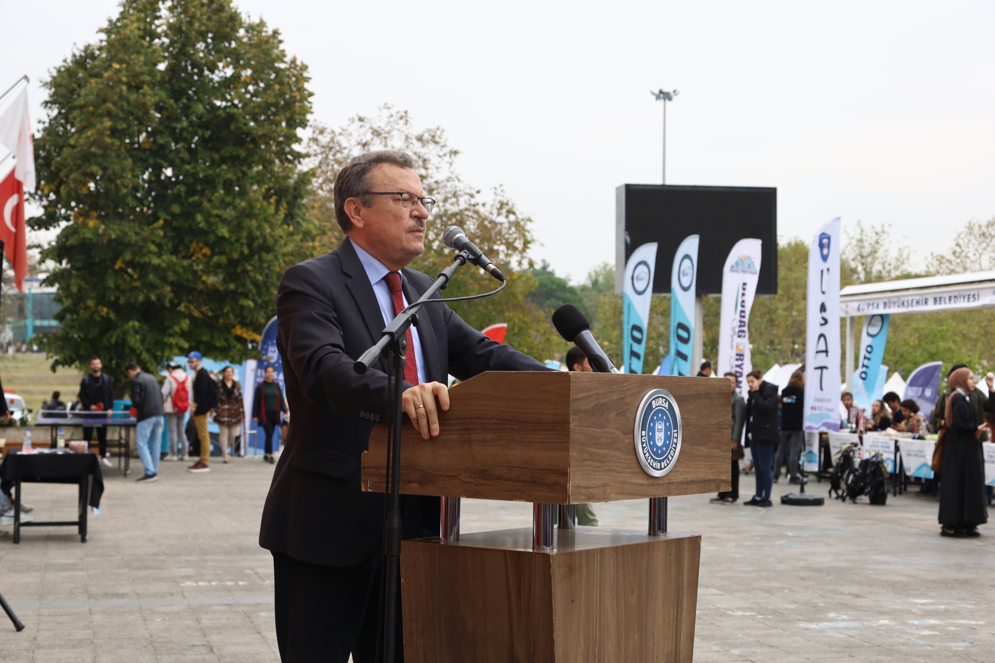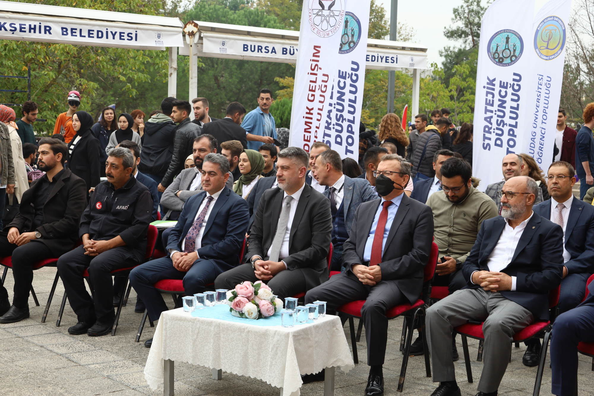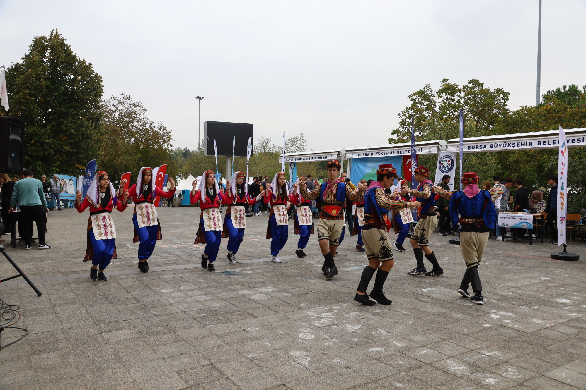 Büyükşehir Belediyesi Bando Takımı’nın konser verdiği şölende, Büyükşehir Belediyesi Kültür Akademisi, Türk Halk Kültürü Kulübü ve Bursa Erkek Lisesi halk oyunları ekiplerinin gösterisi sahnelendi. Program, protokol üyelerinin üniversite topluluk stantlarını gezerek bilgi almasıyla devam etti.