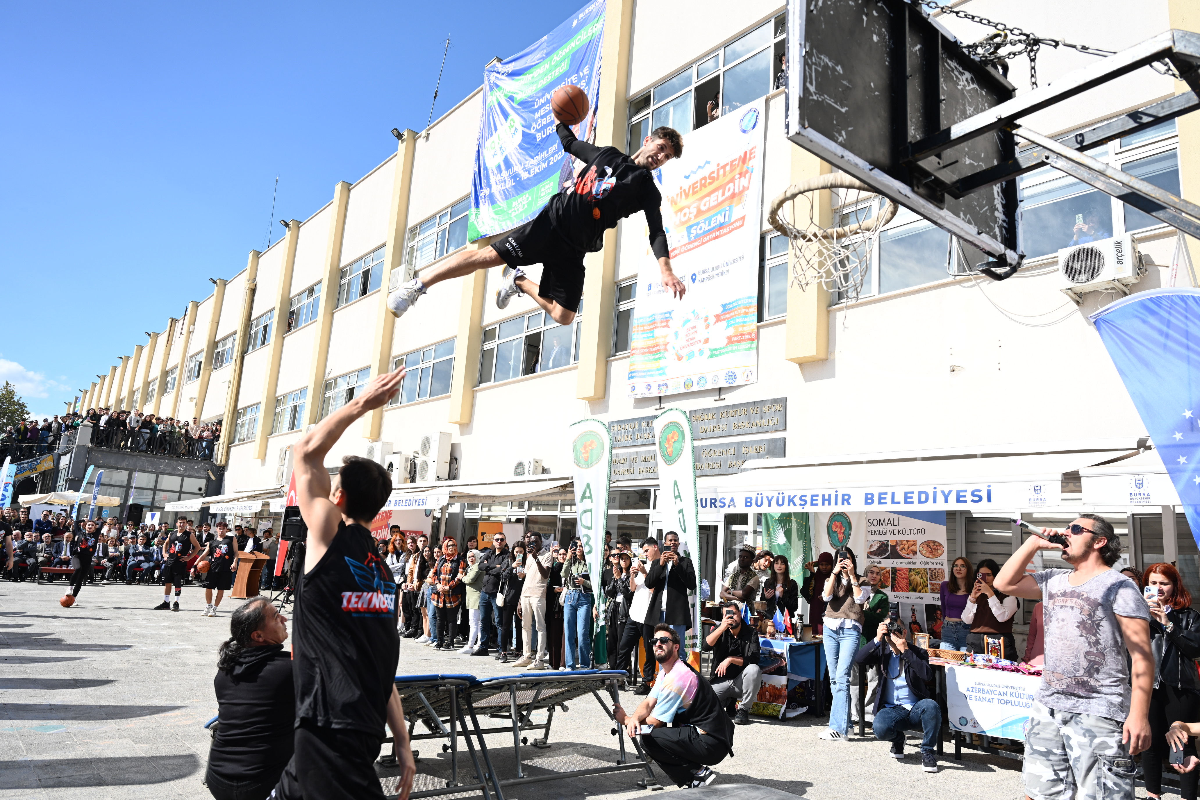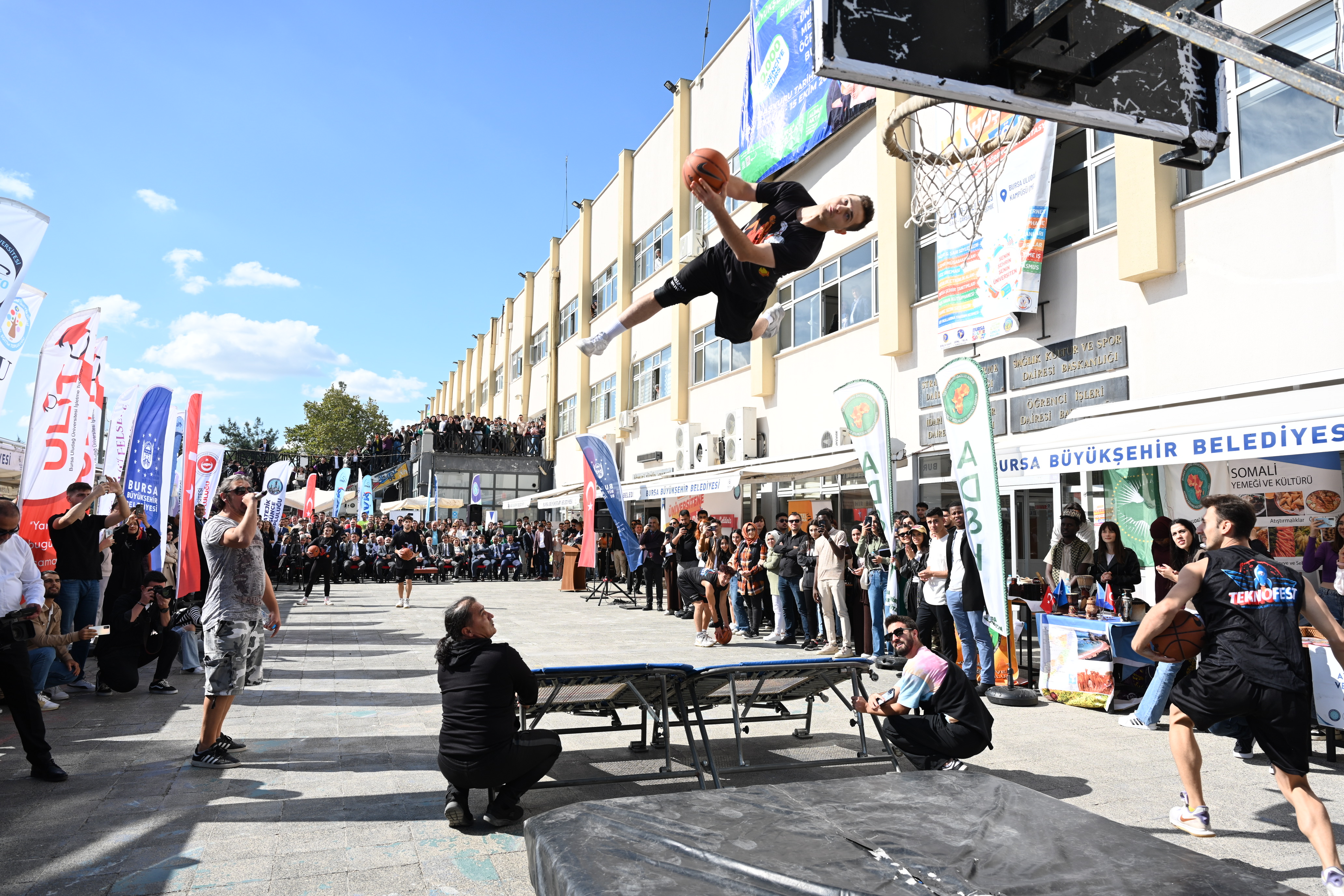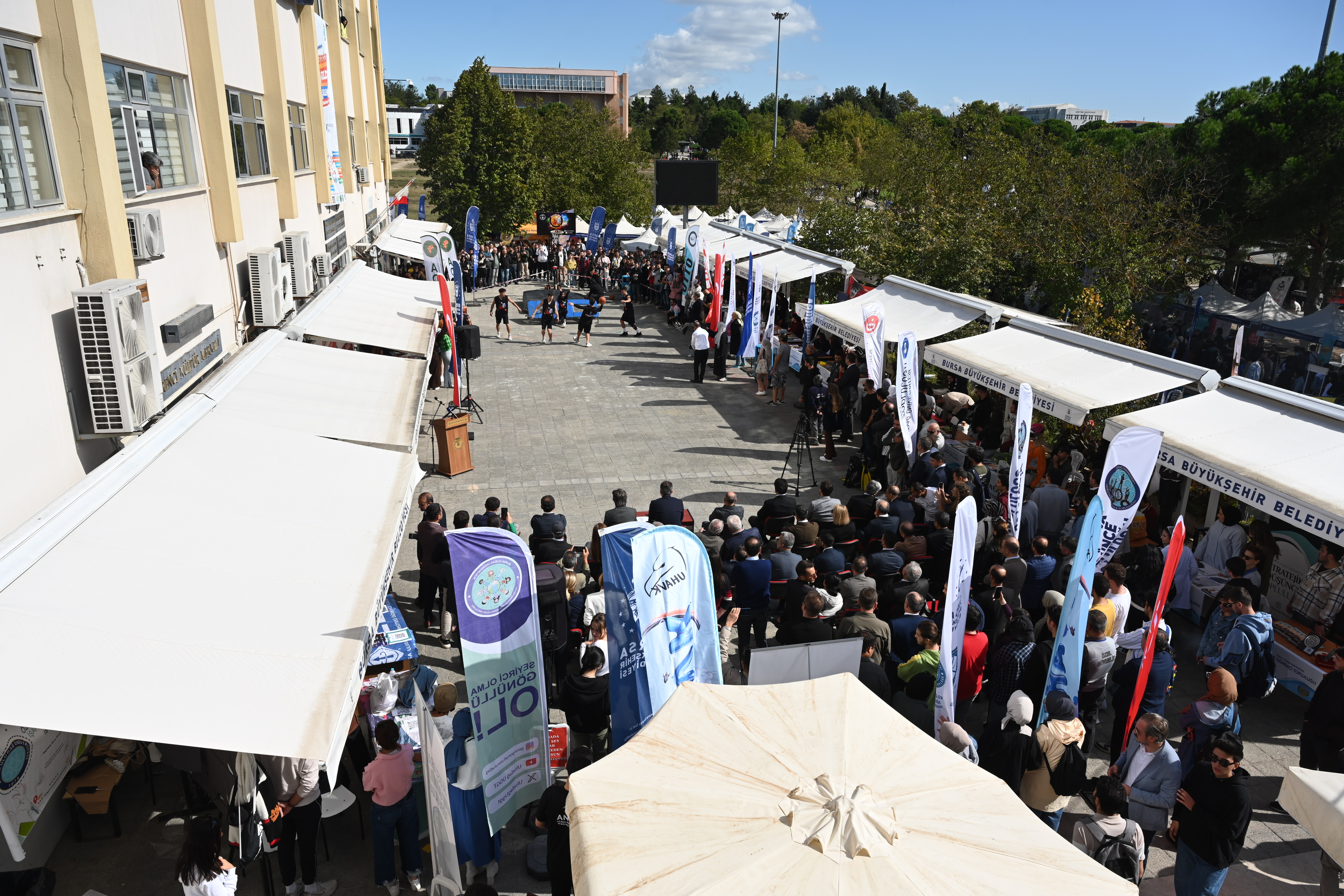 Konuşmaların ardından Başkan Aktaş ve protokol üyeleri, öğrenci topluluklarının stantlarını gezerken, etkinlik kapsamındaki basketbol şovu da ilgiyle izlendi.