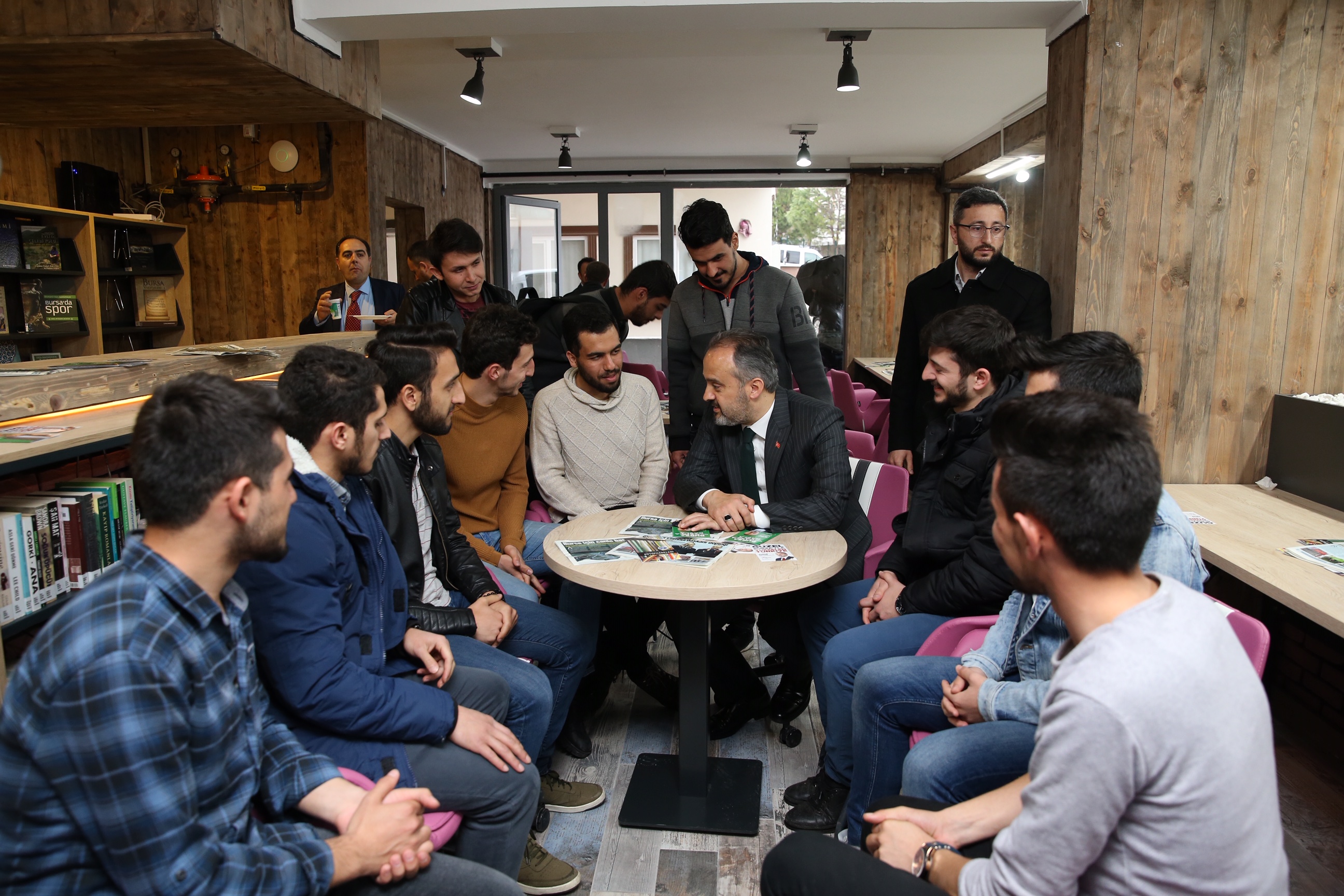 Gençlerin sosyal, kültürel, sanatsal alanda dolu dolu vakit geçirmeleri, meslek öğrenmeleri, ekonomiye katkı sağlayacak projeler geliştirmeleri noktasında her türlü desteği sağlayan Bursa Büyükşehir Belediyesi, Görükle’de ağırlıklı olarak üniversiteli gençlere hizmet verecek bir merkezi daha hizmete açtı. Daha önce hizmete açılan Görükle Gençlik Merkezi, bölgede önemli bir eksikliği giderirken, Görükle’ye şimdi de Millet Kıraathanesi kazandırıldı. Toplam 280 metrekarelik alana sahip, 100 öğrenci kapasiteli Millet Kıraathanesi, içindeki kütüphanesi, internet hizmeti, belirli saatlerde çay ve çorba ikramlarıyla üniversitelilerin boş zamanlarını en iyi şekilde değerlendirebilecekleri bir mekan oldu. Gençlerin yoğun ilgi gösterdiği Millet Kıraathanesi açılış törenine Büyükşehir Belediye Başkanı Alinur Aktaş’ın yanı sıra Bursa Milletvekili Ahmet Kılıç, AK Parti İl Başkanı Ayhan Salman ve AK Parti Nilüfer Belediye Başkan Adayı Necati Şahin de katıldı.
