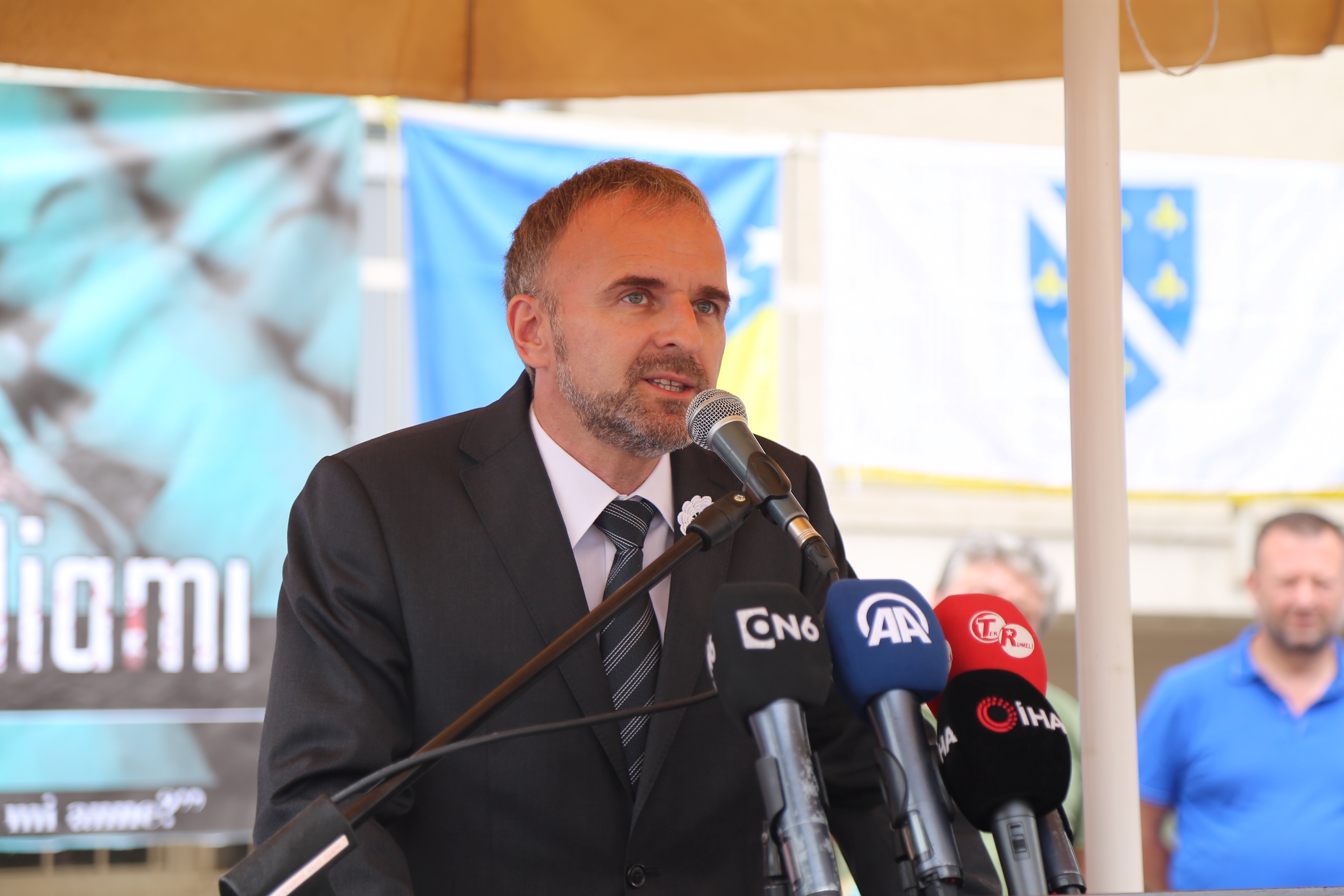 Bosna Hersek Ankara Büyükelçisi Bakir Sadoviç de iki gün önce Bosna Hersek’ten döndüğünü, Cumhurbaşkanı Recep Tayyip Erdoğan ile birlikte kimlikleri tespit edilen 33 şehidi uğurlama törenine katıldığını hatırlattı. Bugün, Türkiye’de ve dünyanın farklı ülkelerinde 11 Temmuz 1995 soykırımının anıldığını dile getiren Sadoviç, “Bu katliama katılanlar, sebep olanlar cezalarını Lahey’de aldılar. Kimileri 700 yıla varan kimileri de ömür boyu hapis cezaları aldılar. Ancak bu cezalar, bu dünyanın adaleti. Onlar öbür dünyada da en büyük cezayı alacaklar. Bu zor günümüzde bizi yalnız bırakmadığınız için teşekkür ediyorum. Bosna Hersek’i hiçbir zaman unutmadığı için Türkiye’ye teşekkür ediyorum” dedi.