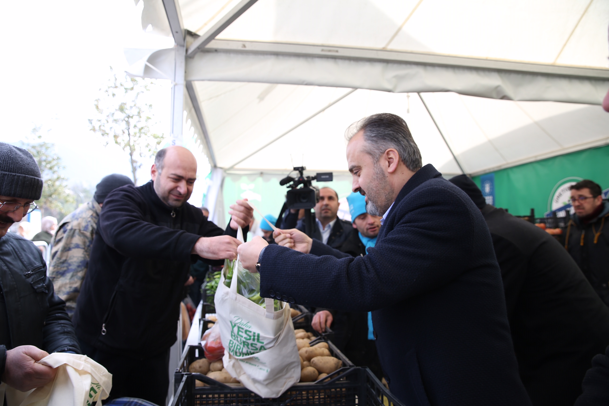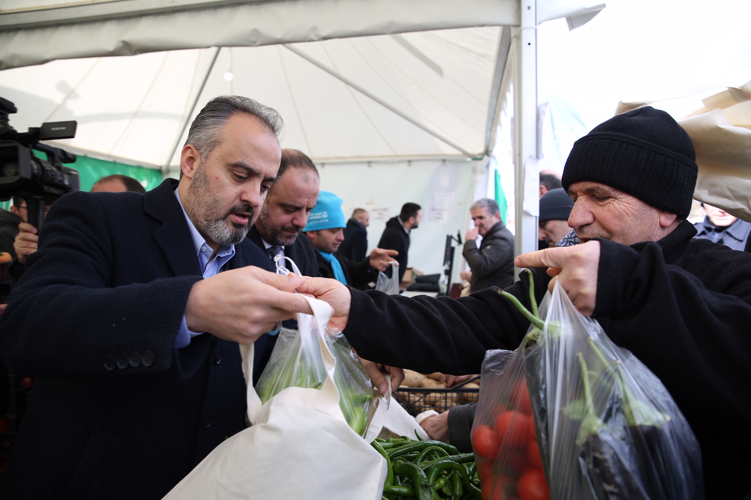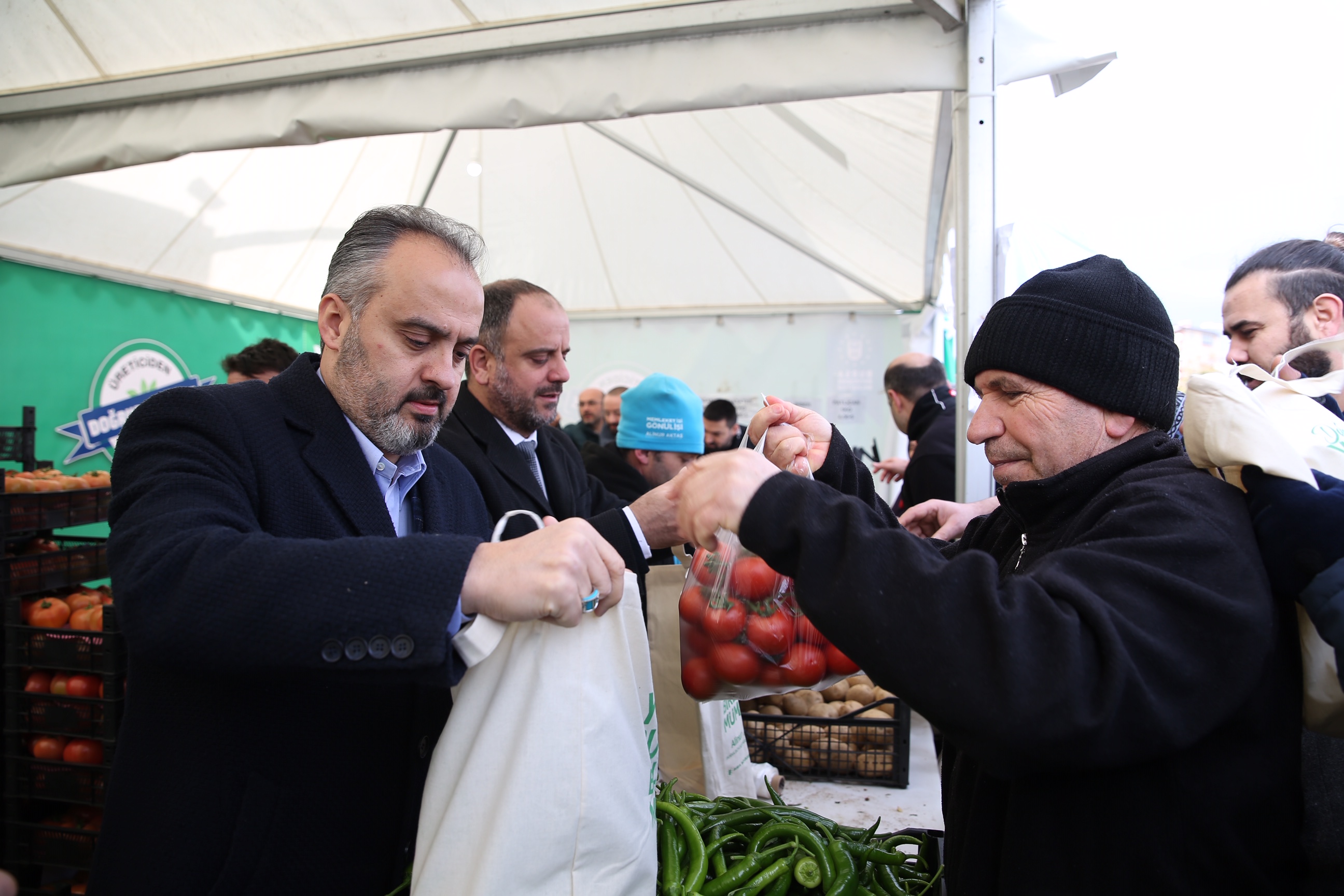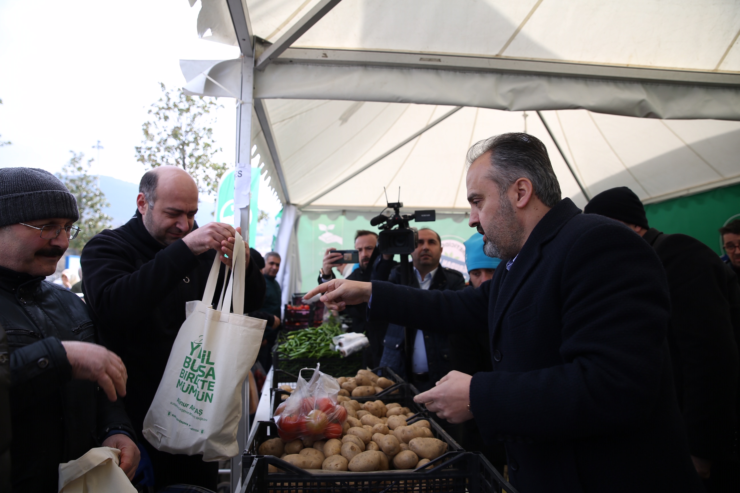 Bursa Büyükşehir Belediye Başkanı Alinur Aktaş da uygulamanın ikinci gününde beraberindeki Büyükşehir Belediyesi Genel Sekreteri İsmail Yılmaz ve TARIM A.Ş. Genel Müdürü Fetullah Bingül ile birlikte Mihraplı’daki tanzim satış noktasını ziyaret etti. Burada standın arkasına geçip, alışveriş yapan vatandaşlarla sohbet eden Başkan Aktaş, gösterilen yoğun ilginin memnuniyet verici olduğunu söyledi. Tanzim satış uygulamasıyla Cumhurbaşkanı Erdoğan’ın Bursa ziyaretinin aynı güne denk gelmesinin de güzel bir tesadüf olduğunu belirten Başkan Aktaş, “Cumhurbaşkanımız da dün mitingde açıklamıştı. Tamamen Maliye Bakanlığı’mızın kontrolünde bu uygulamayı başlattık. Şuanda satışlarımız üç noktada devam ediyor ama bunu kısa zamanda 10 noktaya çıkaracağız. Halen 6 çeşit ürün var ve ürün çeşitliliğini de artıracağız. Sadece temel ürünlerin satışı yapılacak. Olayın ticari bir boyuta taşınmaması için bir kişiye en fazla 3’er kilo sınırlaması getirdik. Amacımız halkımızın kendi ihtiyacını buradan temin etmesi. Bu uygulamada amacımız, sıkıntılı dönemlerde halkımızın aile ekonomisine destek sağlamak. Şunun altını çizmek istiyorum, bu bir kıtlıktan ziyade spekülatif fiyat artışlarının bir nebze de olsa tolere etmek için başlatılmış bir uygulama” diye konuştu.