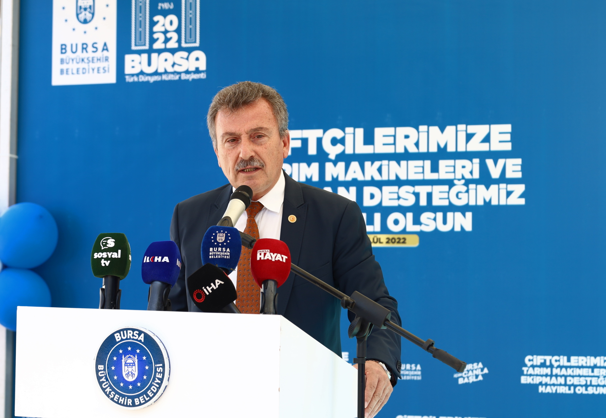 BURSA – Bursa Büyükşehir Belediyesi’nin kırsal kalkınma hedefleri doğrultusunda Bursa İli Hayvancılığı Geliştirme Birliği (HAGEL) destekleriyle temin edilen tarım makineleri törenle çiftçilere dağıtıldı.