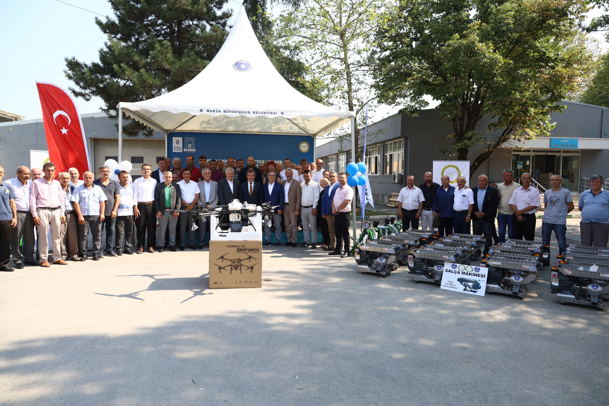 Bursa’da kırsal kalkınmayı sağlayarak köyden kente göçün önüne geçmeyi hedefleyen Büyükşehir Belediyesi, çiftçilere yönelik ekip ve ekipman desteklerini hız kesmeden sürdürüyor. Son alarak Mustafakemalpaşa, İznik, Nilüfer, Mudanya, Gemlik, Orhangazi, Yenişehir, Orhaneli, Keles, Gürsu, Karacabey, Büyükorhan, Harmancık ve Osmangazi ilçelerimizdeki 53 kırsal mahalleye salça makinesi, ceviz soyma makinesi ve ceviz silkme makinesi dağıtıldı. Bunun yanında bu yıl özellikle ayçiçeğinde görülen tırtıl zararlısı ile mücadelede sıkça kullanılan dronelerden de bir tane Mustafakemalpaşa ilçesine gönderildi.