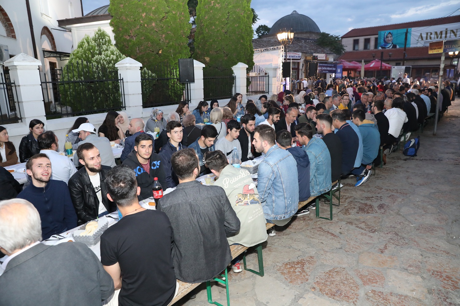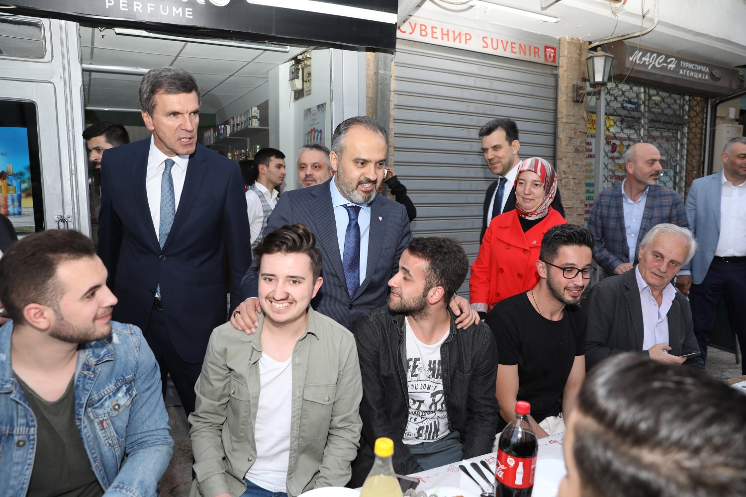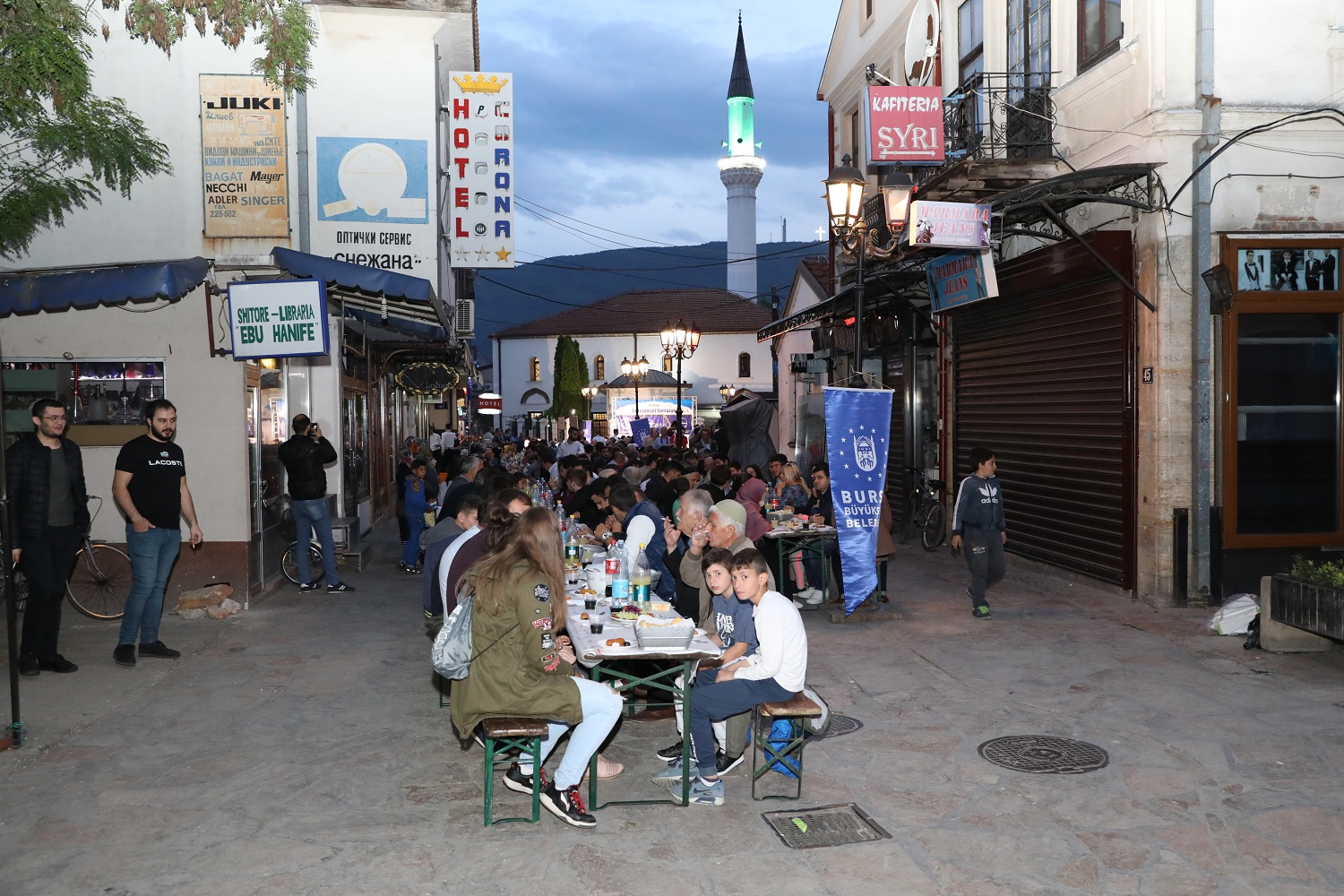 Üsküp, tarihi günlerinden birini daha yaşadı. Bursa Büyükşehir Belediyesi’nin El Hilal Derneği’yle ortaklaşa organize ettiği iftar yemeği, yoğun katılıma sahne oldu. Yüzlerce Üsküplü ‘aileleriyle birlikte’ kurulan sofralarda orucunu açarken; Balkan Müslümanlarını Türkiye’nin Üsküp Büyükelçisi Tülin Erkal Kara, AK Parti Bursa İl Başkanı Ayhan Salman, Bursa Ticaret ve Sanayi Odası (BTSO) Başkanı İbrahim Burkay, AK Parti Bursa milletvekilleri Emine Yavuz Gözgeç, Zafer Yıldız, Mustafa Esgin ve Refik Özen de yalnız bırakmadı. Tarihi Murat Paşa Camii önünden başlayarak Türk Çarşısı boyunca uzayan sofralar, Üsküplü Müslümanların ilgisiyle şenlendi. İftar yemeğinin duası ise Türkiye Büyükelçiliği Din Hizmetleri Müşaviri Murat Altan tarafından yapıldı.