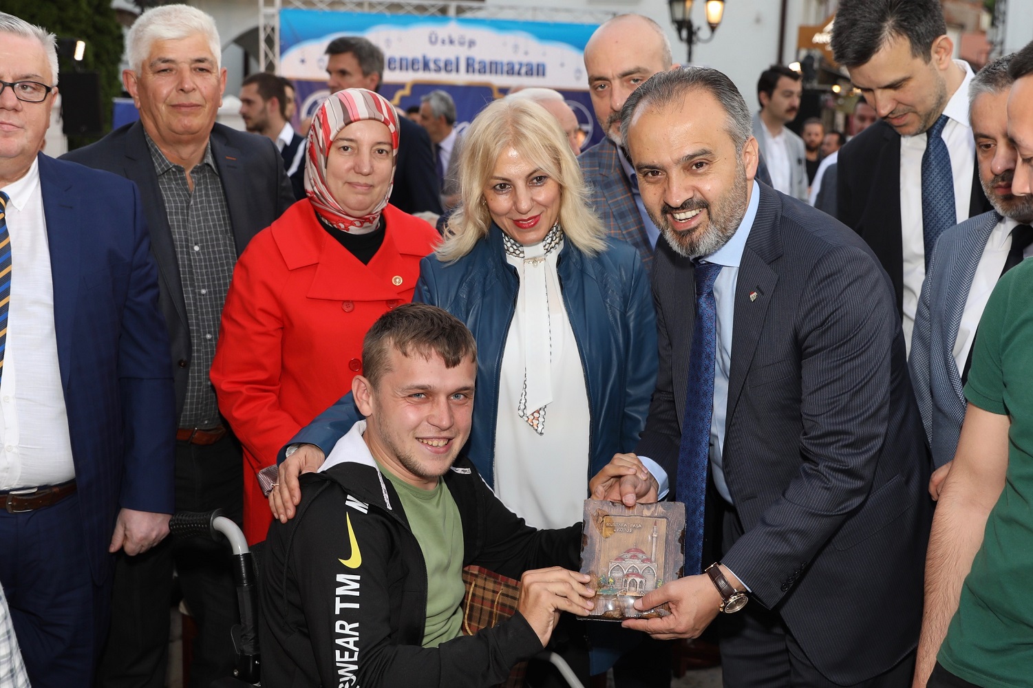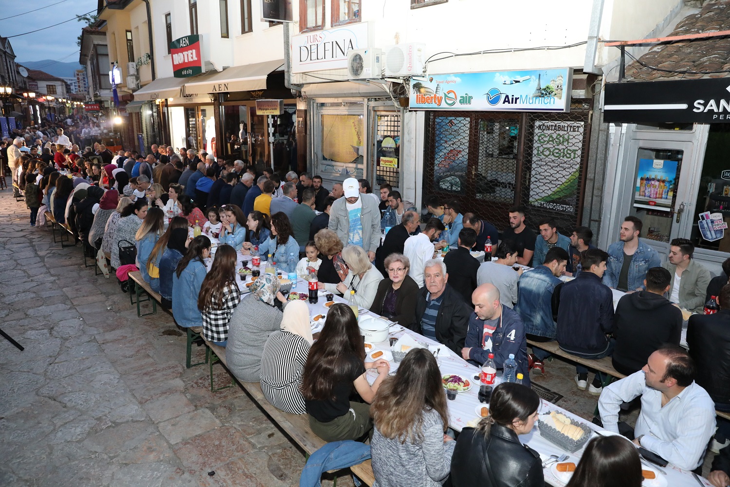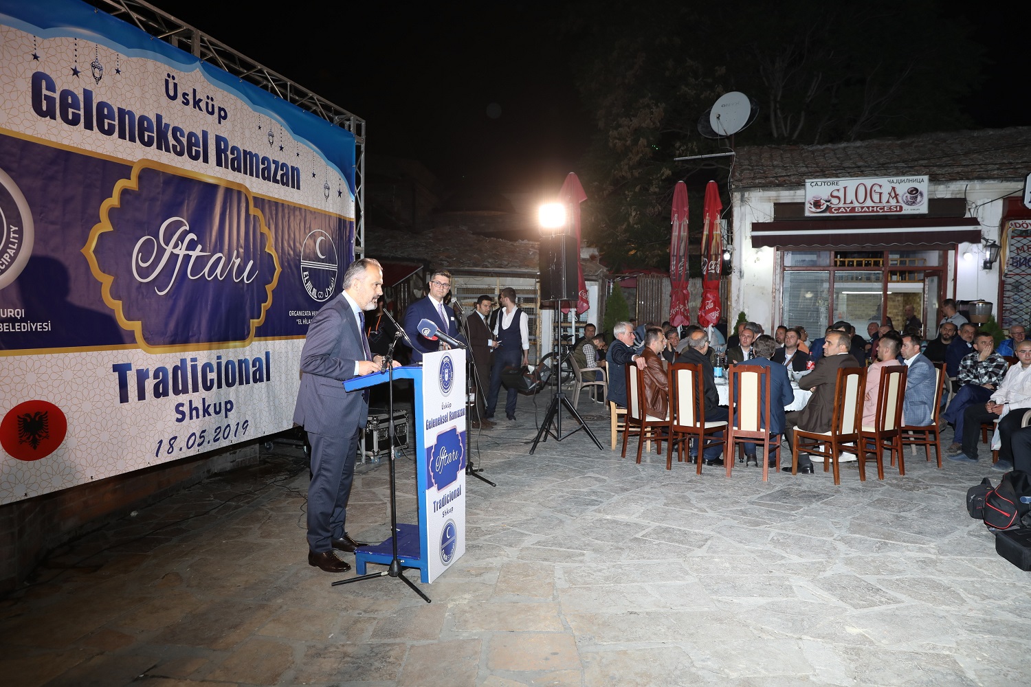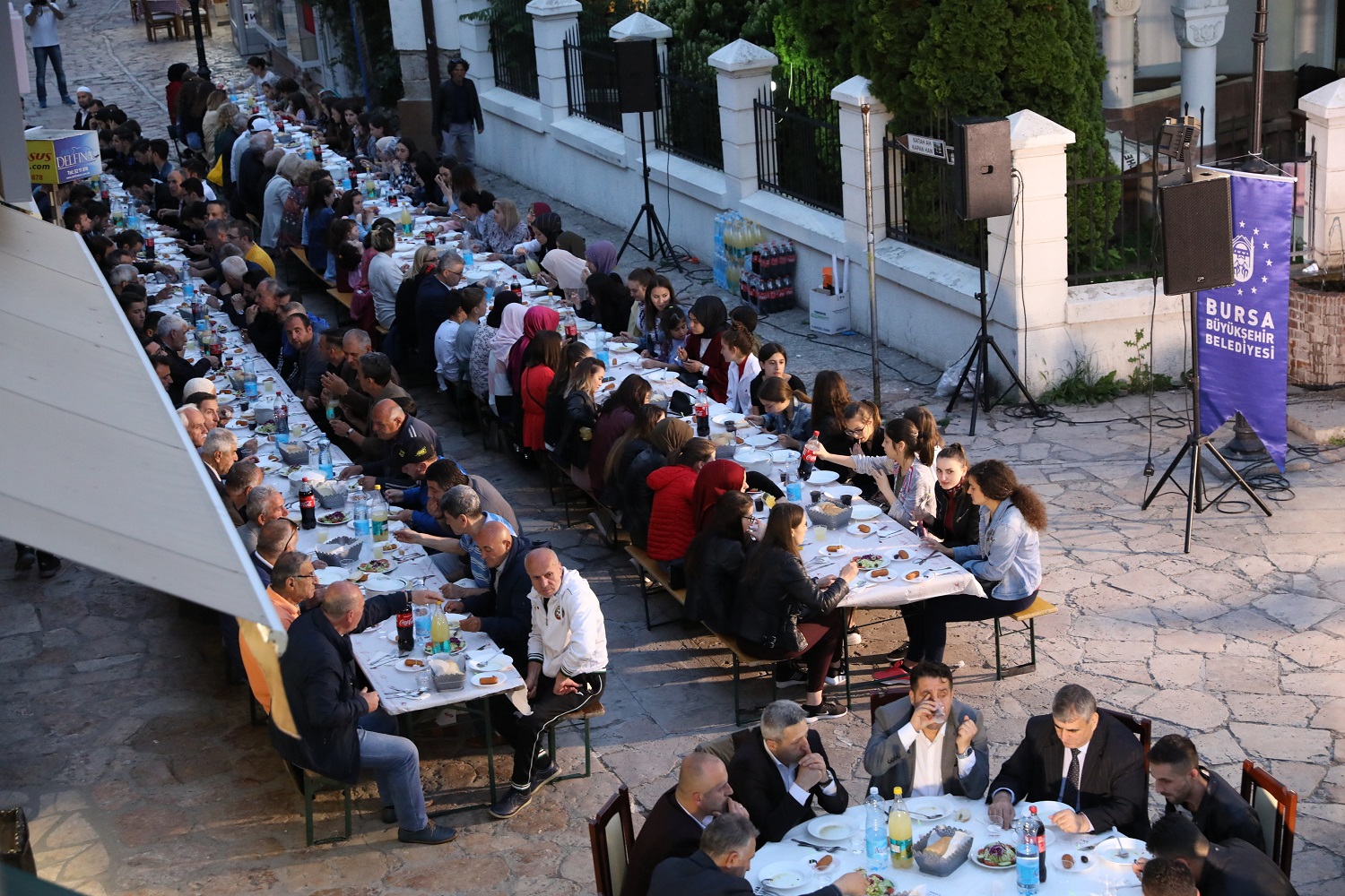 Üsküp, tarihi günlerinden birini daha yaşadı. Bursa Büyükşehir Belediyesi’nin El Hilal Derneği’yle ortaklaşa organize ettiği iftar yemeği, yoğun katılıma sahne oldu. Yüzlerce Üsküplü ‘aileleriyle birlikte’ kurulan sofralarda orucunu açarken; Balkan Müslümanlarını Türkiye’nin Üsküp Büyükelçisi Tülin Erkal Kara, AK Parti Bursa İl Başkanı Ayhan Salman, Bursa Ticaret ve Sanayi Odası (BTSO) Başkanı İbrahim Burkay, AK Parti Bursa milletvekilleri Emine Yavuz Gözgeç, Zafer Yıldız, Mustafa Esgin ve Refik Özen de yalnız bırakmadı. Tarihi Murat Paşa Camii önünden başlayarak Türk Çarşısı boyunca uzayan sofralar, Üsküplü Müslümanların ilgisiyle şenlendi. İftar yemeğinin duası ise Türkiye Büyükelçiliği Din Hizmetleri Müşaviri Murat Altan tarafından yapıldı.