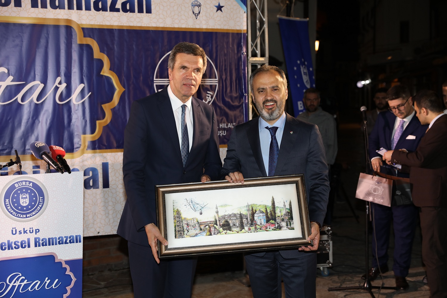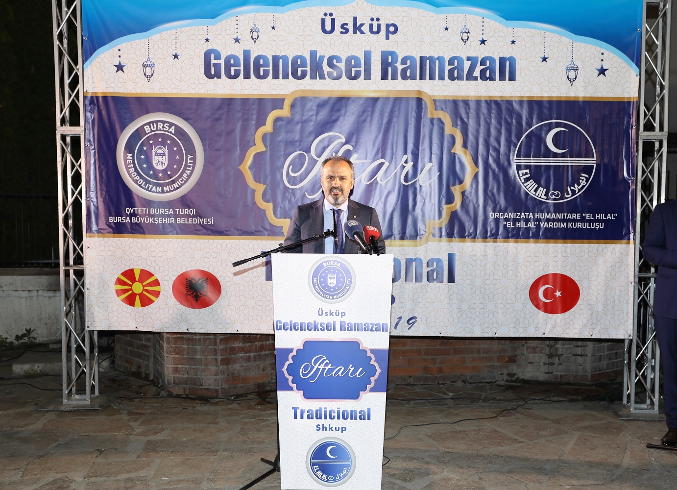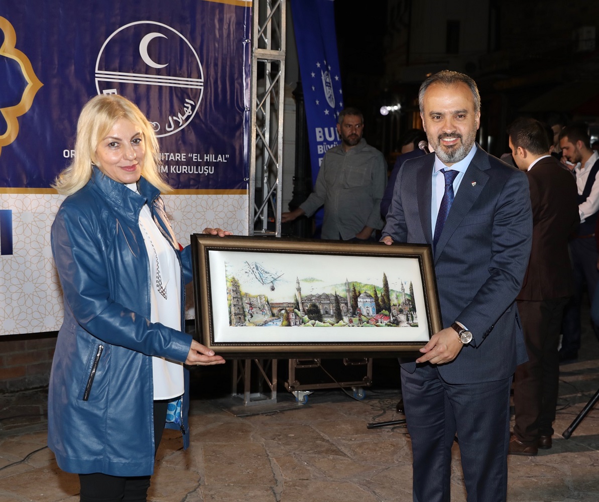 Başkan Aktaş, konuşmasında, organizasyonun gerçekleştirilmesinde büyük emeği olan El Hilal Derneği Başkanı Behuciddin Şehabi, Türkiye’nin Üsküp Büyükelçisi Tülin Erkal Kara, AK Parti İl Başkanı Ayhan Salman, BTSO Başkanı İbrahim Burkay ve AK Parti Bursa milletvekillerine de ayrı ayrı teşekkür etti. Başkan Aktaş, Arnavutça ‘Hayırlı Ramazanlar’ diyerek bitirdiği konuşmasının ardından, Büyükelçi Kara ile El Hilal Derneği Başkanı Şehabi’ye ipek tablo hediye etti.
