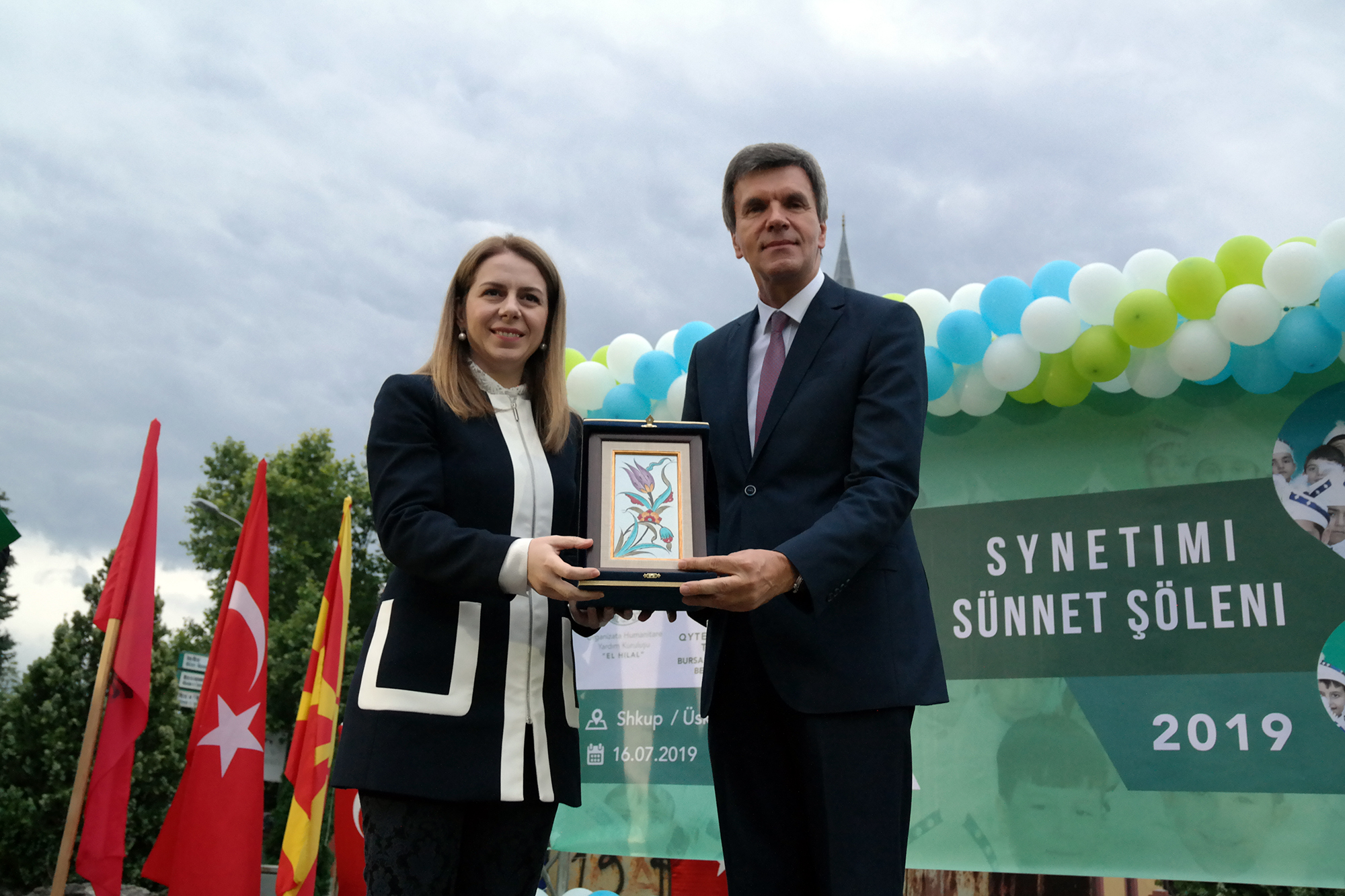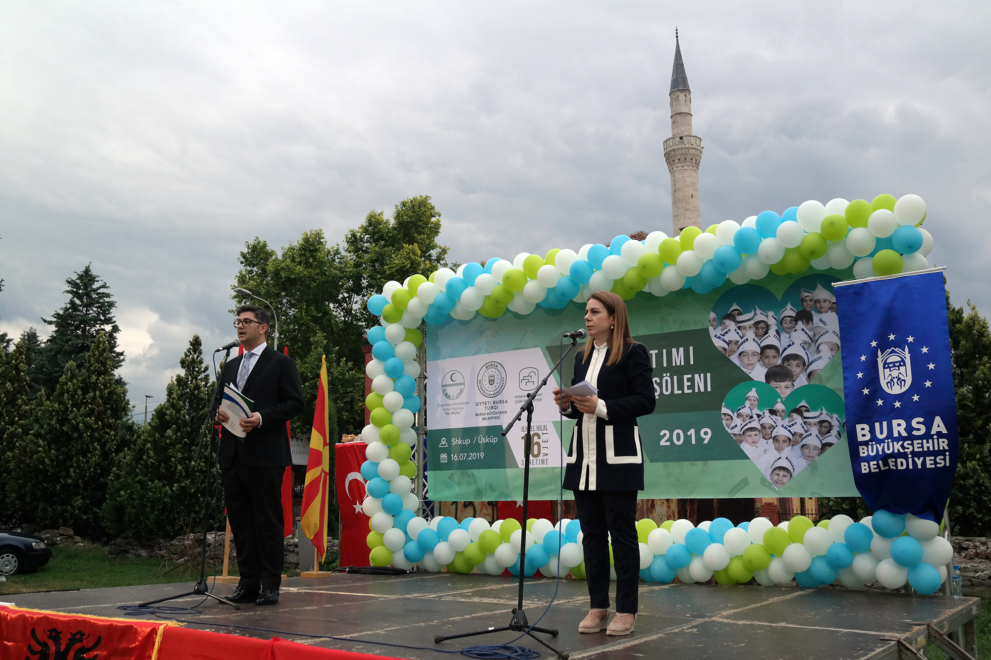 Kuran tilaveti ve ilahilerle başlayan programda konuşan Bursa Büyükşehir Belediyesi Başkanvekili Gülten Kapıcıoğlu, “Bursa olarak, gerek Büyükşehir Belediyesi öncülüğünde, hayırsever işadamlarımız ve vatandaşlarımızın gayretleriyle balkanlardaki mirasımıza sahip çıkan çalışmalar gerçekleştiriliyor. Balkanlar ile Türkiye ve Bursa arasında kurulan gönül köprüsü niteliğindeki çalışmalar, bu bölgelerde yaşayan soydaşlarımızın geleneksel kültürel değerlerini yeniden yaşamalarını sağlıyor. Bugün Türkiye ve Balkanlar arasındaki gönül bağını güçlendirecek bir organizasyona daha katkı koymanın telaşı içindeyiz. Artık geleneksel hale getirdiğimiz sünnet organizasyonlarımızdan birini de Üsküp’te yapıyoruz. Sünnet, bizim en önemli geleneklerimizden biridir. Bu gelenekler sayesinde bir araya geliyoruz, birliğimize, dirliğimize, sahip çıkıyoruz. Bugün burada, 300 çocuğumuz erkekliğe ilk adımını atmış oldu. Çocuklarımızın aileleriyle birlikte ömür boyu sağlıklı, mutlu ve huzurlu yaşamalarını diliyorum” dedi.
