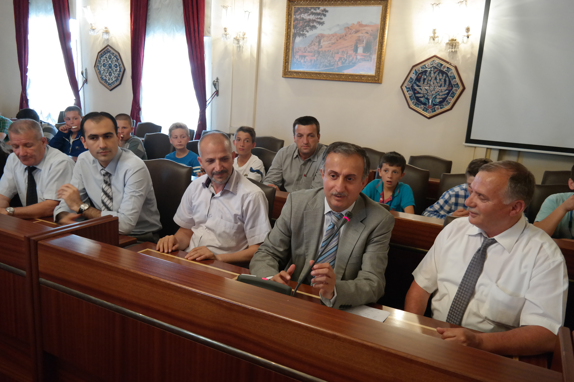 Makedonya’nın Üsküp şehrinden gelen El – Hilal Derneği üyeleri ile 45 yetim öğrenci, Bursa gezisi kapsamında Büyükşehir Belediyesi’ni de ziyaret etti. Büyükşehir Belediyesi Başkanvekili Abdullah Karadağ, Üsküplü konuklarını, Tarihi Belediye Binası meclis salonunda ağırladı. Konuklarına Bursa hakkında bilgiler veren Başkanvekili Karadağ, “Üsküp, bizler için çok önemli. Üsküp’te Bursa olarak çok sayıda restorasyon çalışması yaptık. Bursa’da Balkanlardan gelen konuklarımızı misafir değil, kardeşlerimiz olarak görüyoruz” dedi.