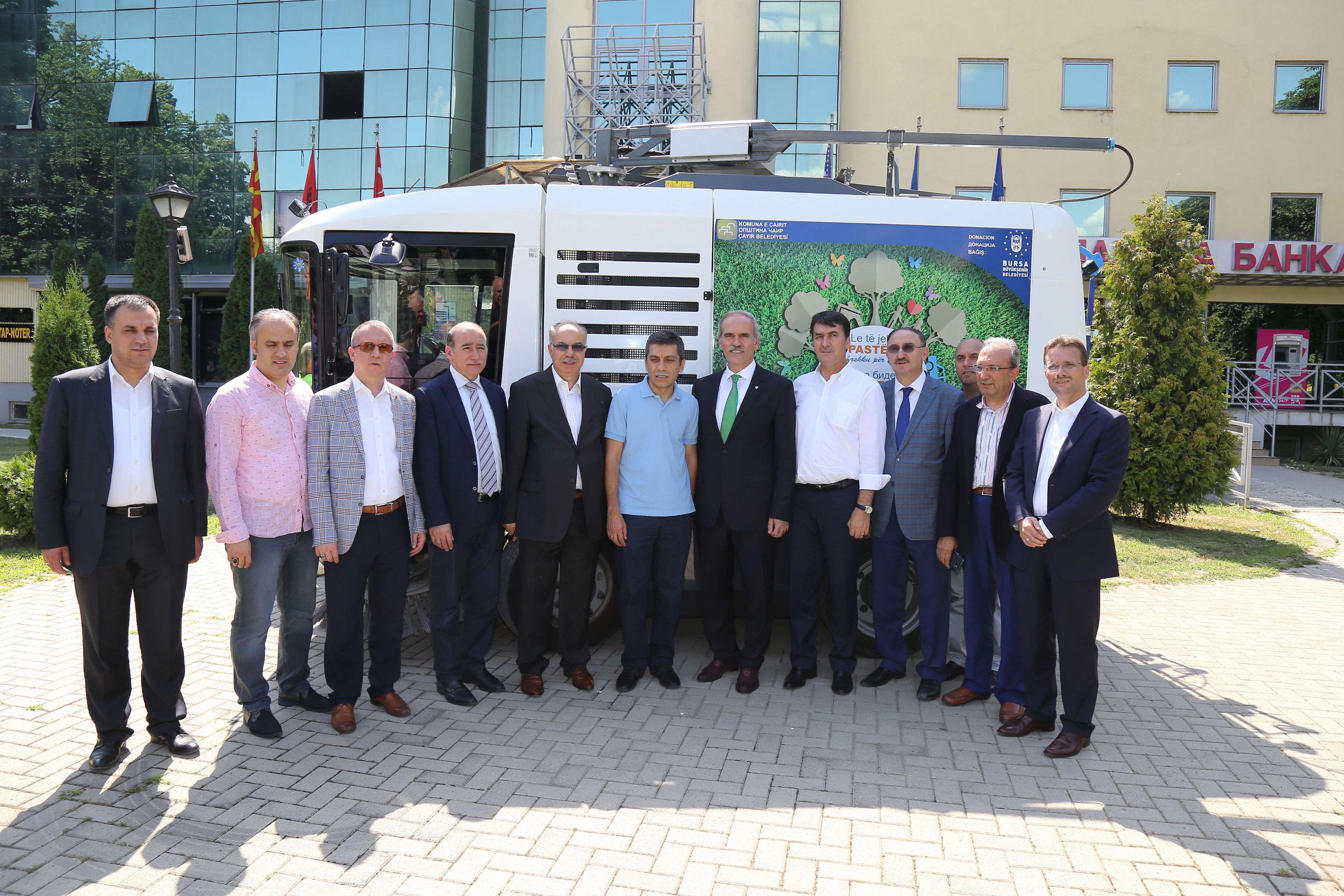 Başkan Altepe, Üsküp temasları kapsamında Çayır Belediyesi’ni ziyaret etti. Büyükşehir Belediyesi’nin yönlendirmesiyle Bursalı Simge Asfalt tarafından satın alınan 1 milyon TL’lik temizlik aracı, Başkan Altepe’nin de katıldığı organizasyonla Çayır Belediye Başkanı İzzet Mecidi’ye teslim edildi.