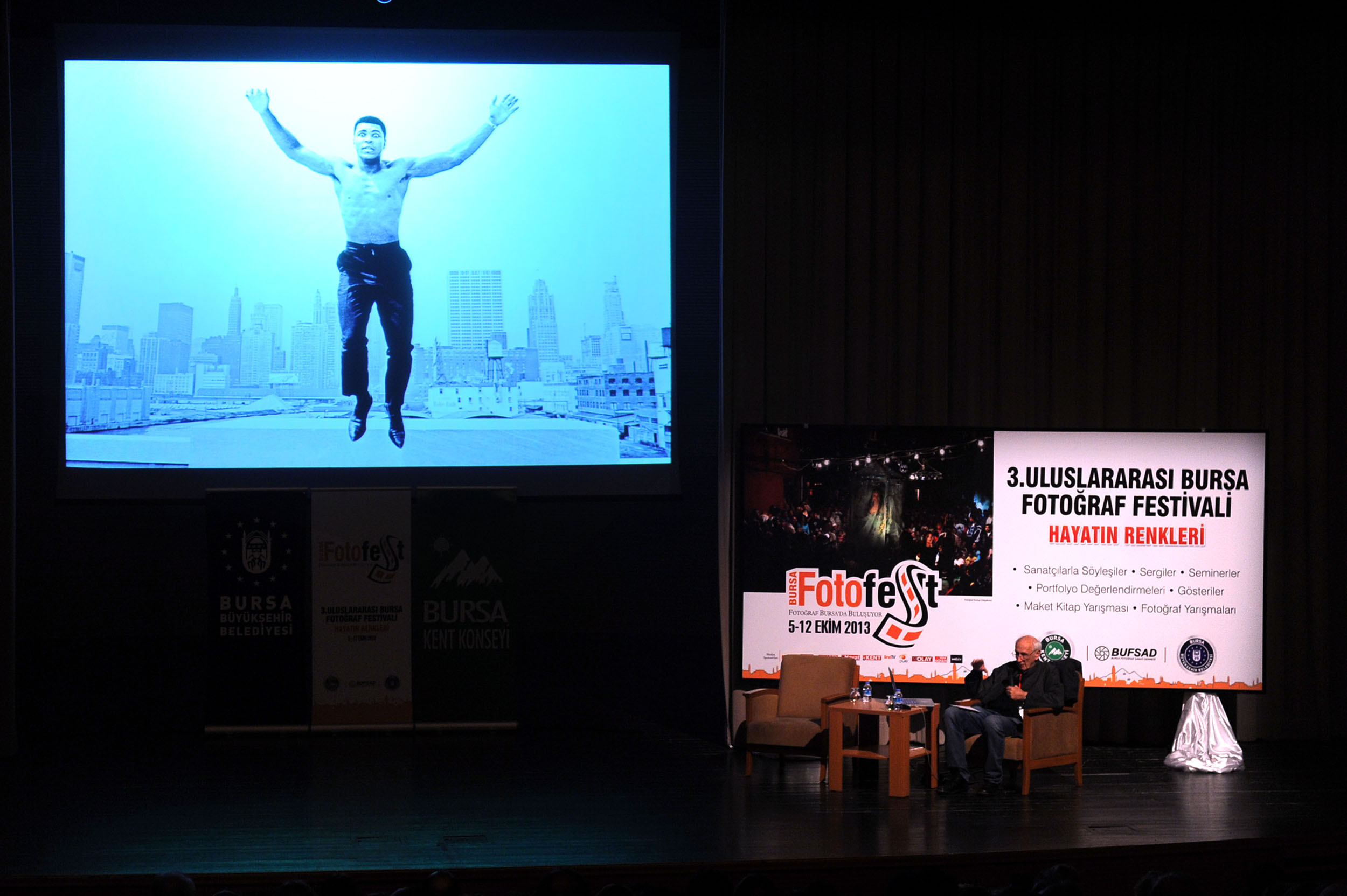 BURSA – Dünyaca ünlü fotoğraf sanatçısı Thomas Hoepker, 3. Uluslararası Bursa Fotoğraf Festivali’nde (Bursa FotoFest) dünya ağır siklet boks şampiyonu Muhammed Ali ile ilgili en özel fotoğraflarını ve anılarını Bursalılarla paylaştı.
