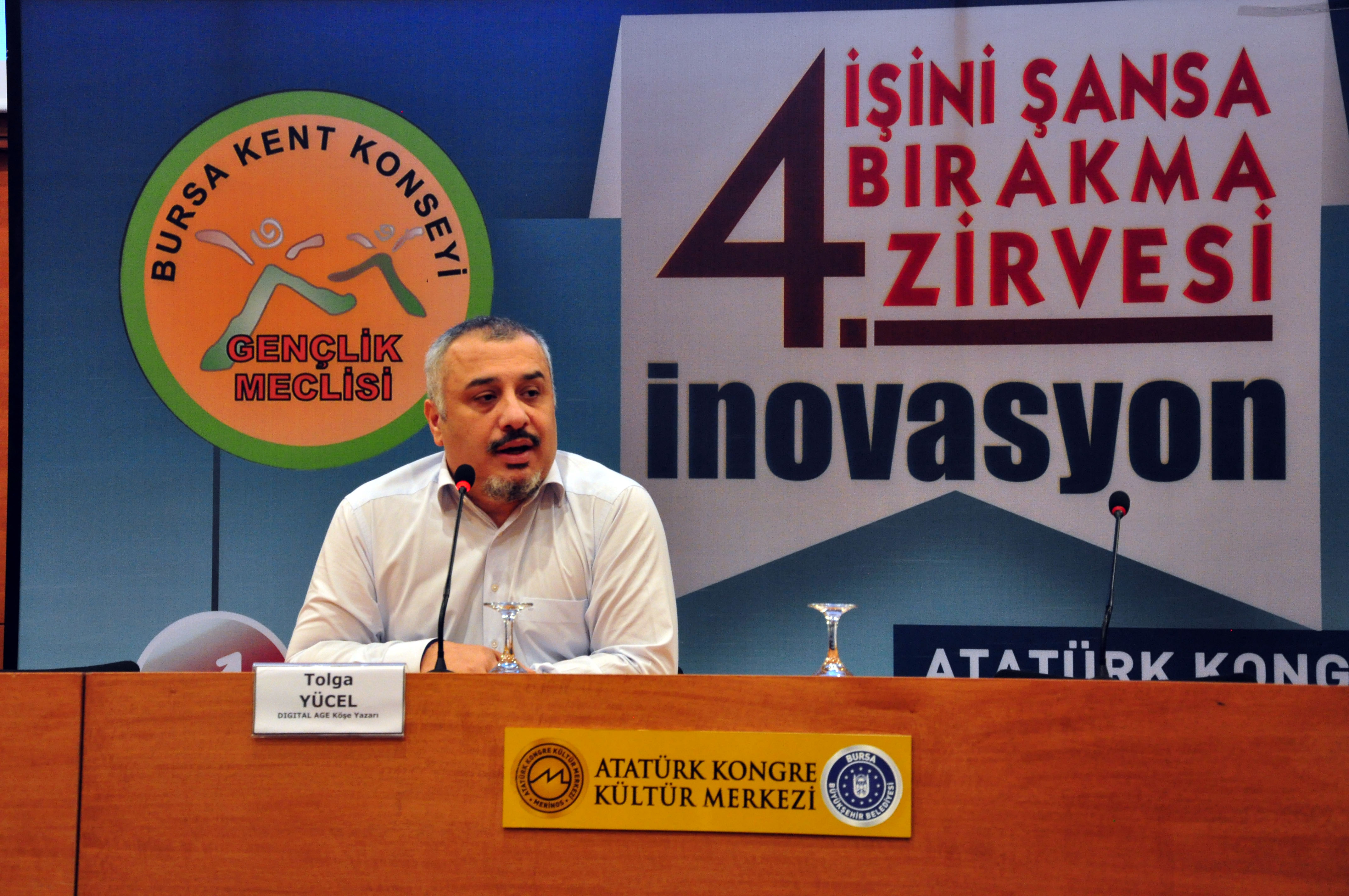 Digital Age Köşe Yazarı ve iletişim uzmanı Tolga Yücel ise ‘İnovasyona sektörel bakış açısı’ konusunda bilgi paylaşımında bulundu. Yenilikçilik kavramının inovasyonu tam olarak anlatamadığını söyleyen Tolga Yücel, Türkiye’de inovasyon yeni yeni konuşulurken, Bursa’da inovasyon kongresi yaptıklarını hatırlattı. Bursa’nın, Osmanlı döneminde payitahtın İstanbul’a kaydığı günden bugüne fason üretim merkezi olduğunu söyleyen Yücel, “Osmanlı döneminde İstanbul, iplik üzerine siparişleri Bursa’dan isterdi. Cumhuriyet döneminde bu sefer Ankara, Bursa’yı tekstil konusunda fason üretim merkezi olarak kullandı. 1940-1960’lı senelerde Merinos’tan çıkan bazı insanlar kendi markalarını oluşturdu. Ancak 1960’dan sonra organize sanayi bölgelerinin kurulmasıyla iş adamlarımız, büyük otomobil firmalarının yan sanayisi oldu. Sürekli fason üretim merkezi olan Bursa’da inovasyonu konuşuyoruz. Bu yüzden gençlerin evrensel bilgiye ve trendlere ulaşması gerekiyor. Yoksa bu sistem kendi kendini dönüştüremez. Çünkü fason da en ihtiyacınız olmayan şey, bilgidir. Fason, ne yapılmalı? sorusunu bulur, nasıl yapılmalı? sorusunu bulamaz. İnovasyon bir kültürdür” dedi.