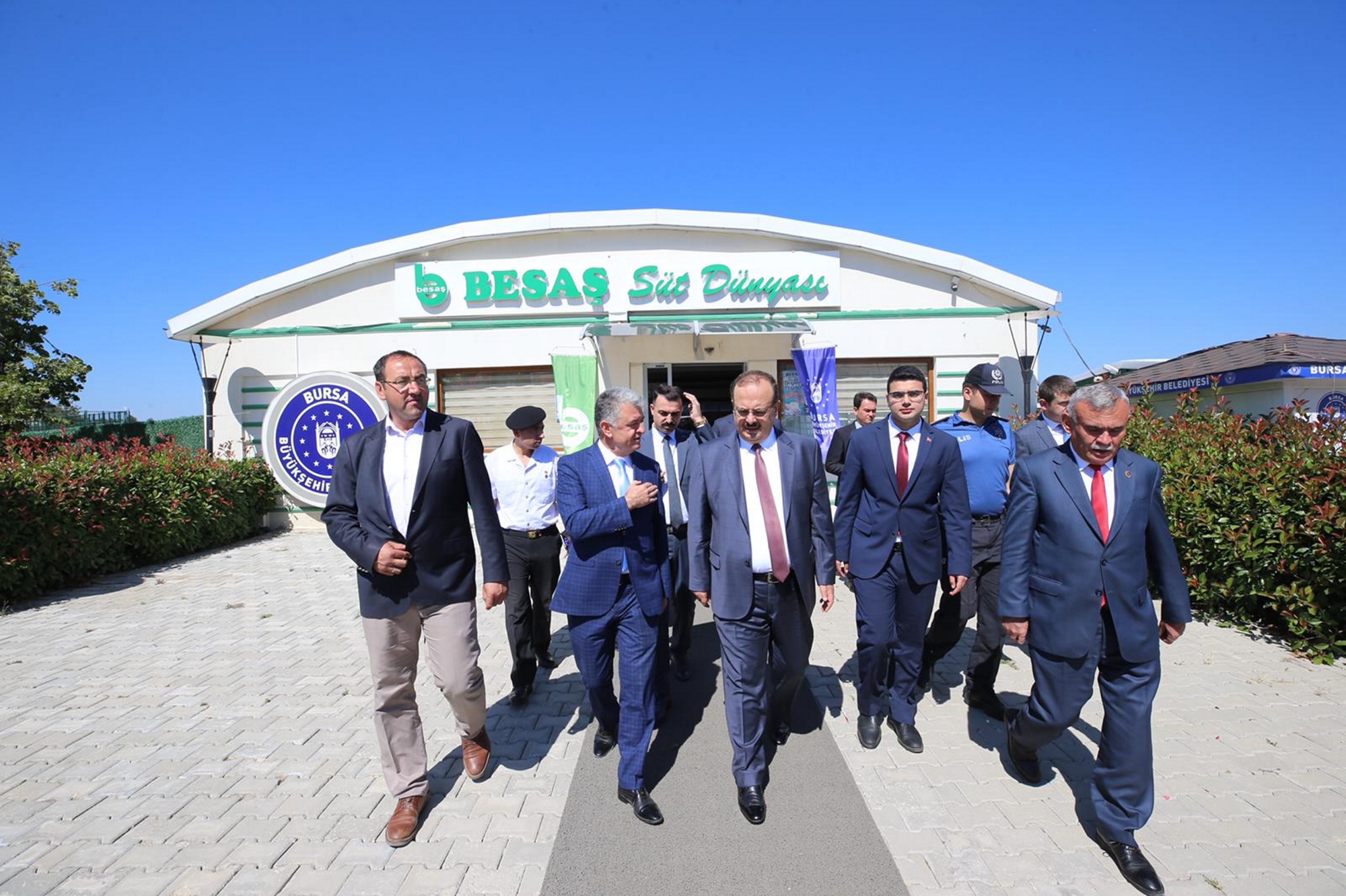 Bursa Valisi Yakup Canbolat da Bursa’nın en fazla göç veren dağ ilçelerinde bu ve benzeri yatırımların büyük önem taşıdığını hatırlatarak, tesisin üretim ve satış rakamlarının yükselmesiyle bölgede istihdamın daha da artacağını, hayvancılığın da gelişeceğini kaydetti. Vali Canbolat, üretim tesislerinin ardından ürün satış noktası olan BESAŞ Süt Dünyası’nı da gezdi.
