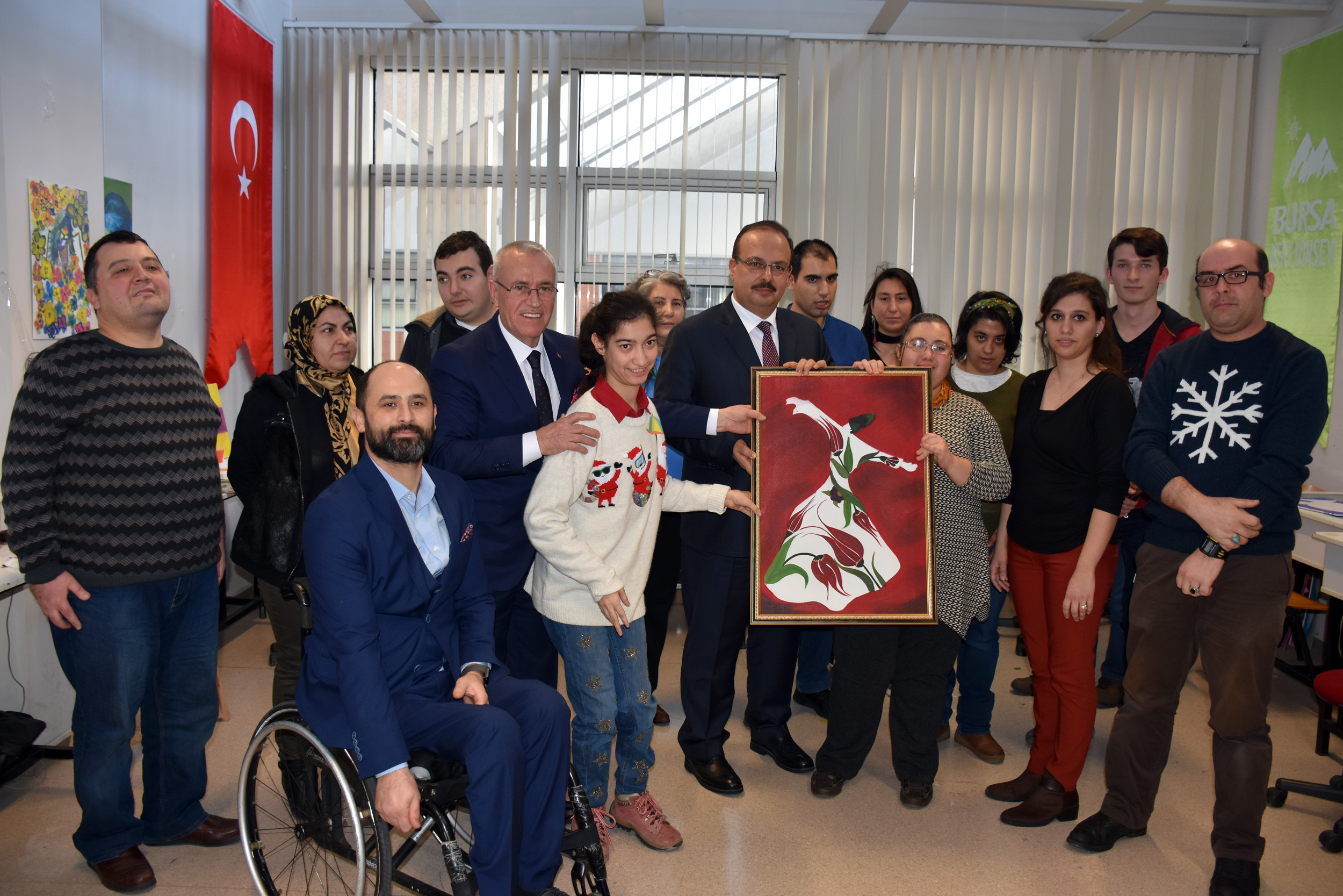 Daha sonra beraberindekilerle Vali Yakup Canbolat, Çekirge Çalışma Grubu ile Tarihi Kültürel Miras Çalışma Grubu’nun toplantılarına katıldı. Engelliler Meclisi’nin resim atölyesini de ziyaret eden Vali Canbolat’a, engelli ressamlar tarafından yapılan tablo hediye edildi.