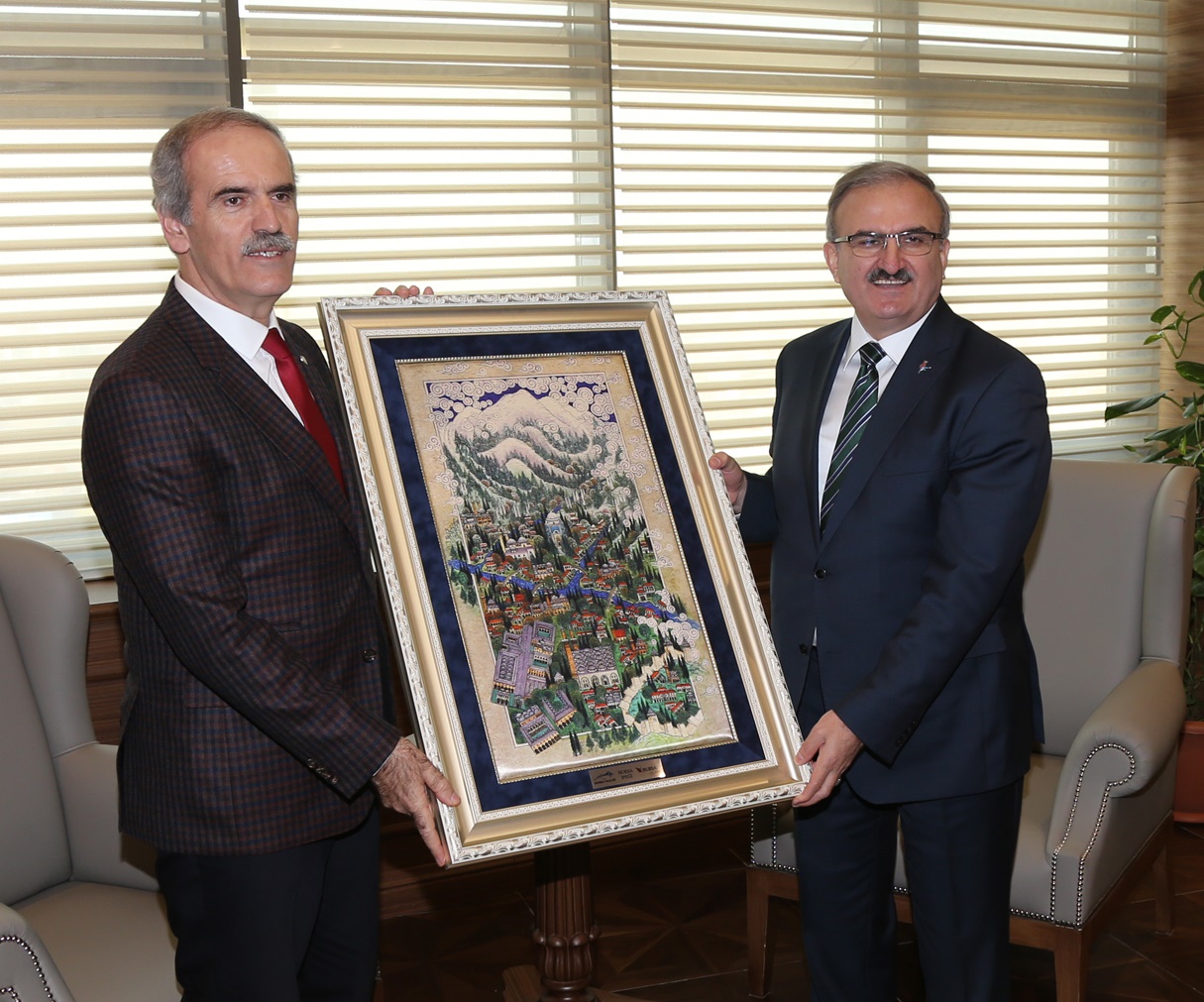 BURSA – Bursa Valisi Münir Karaloğlu, Büyükşehir Belediye Başkanı Recep Altepe’yi, Büyükşehir Belediyesi’nin yeni hizmet binasındaki makamında ziyaret ederek, “Hayırlı Olsun” dileğinde bulundu.