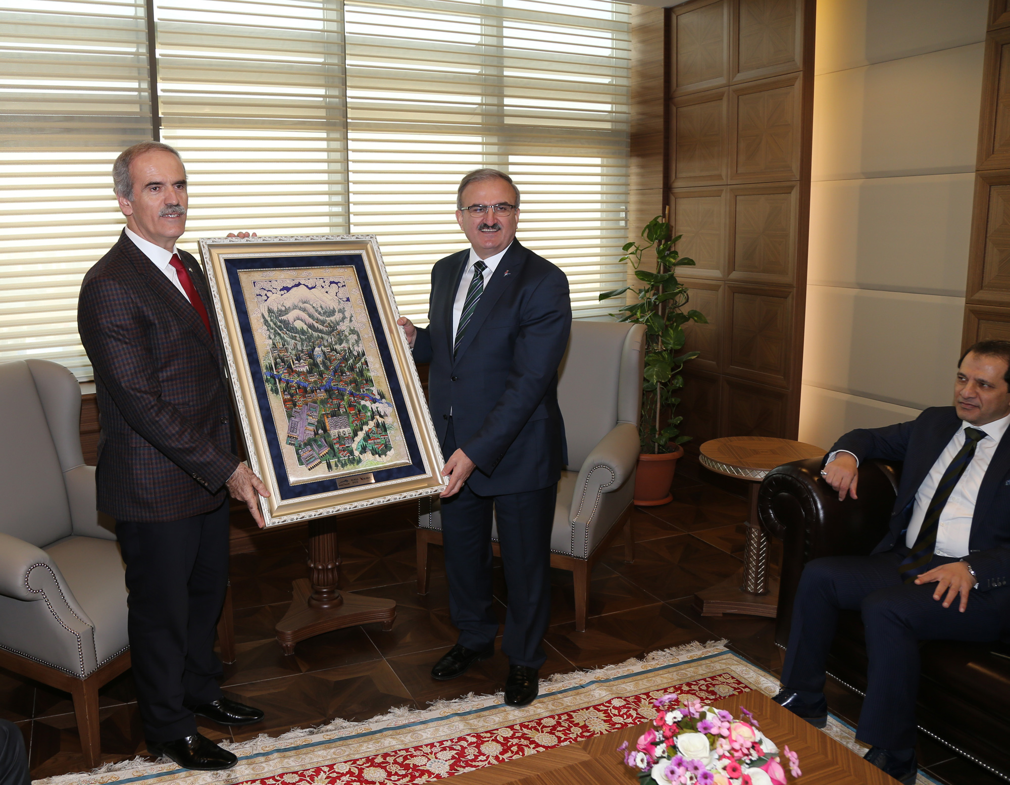 - Bursa Valisi Münir Karaloğlu, Büyükşehir Belediye Başkanı Recep Altepe’yi, Büyükşehir Belediyesi’nin yeni hizmet binasındaki makamında ziyaret ederek, “Hayırlı Olsun” dileğinde bulundu.