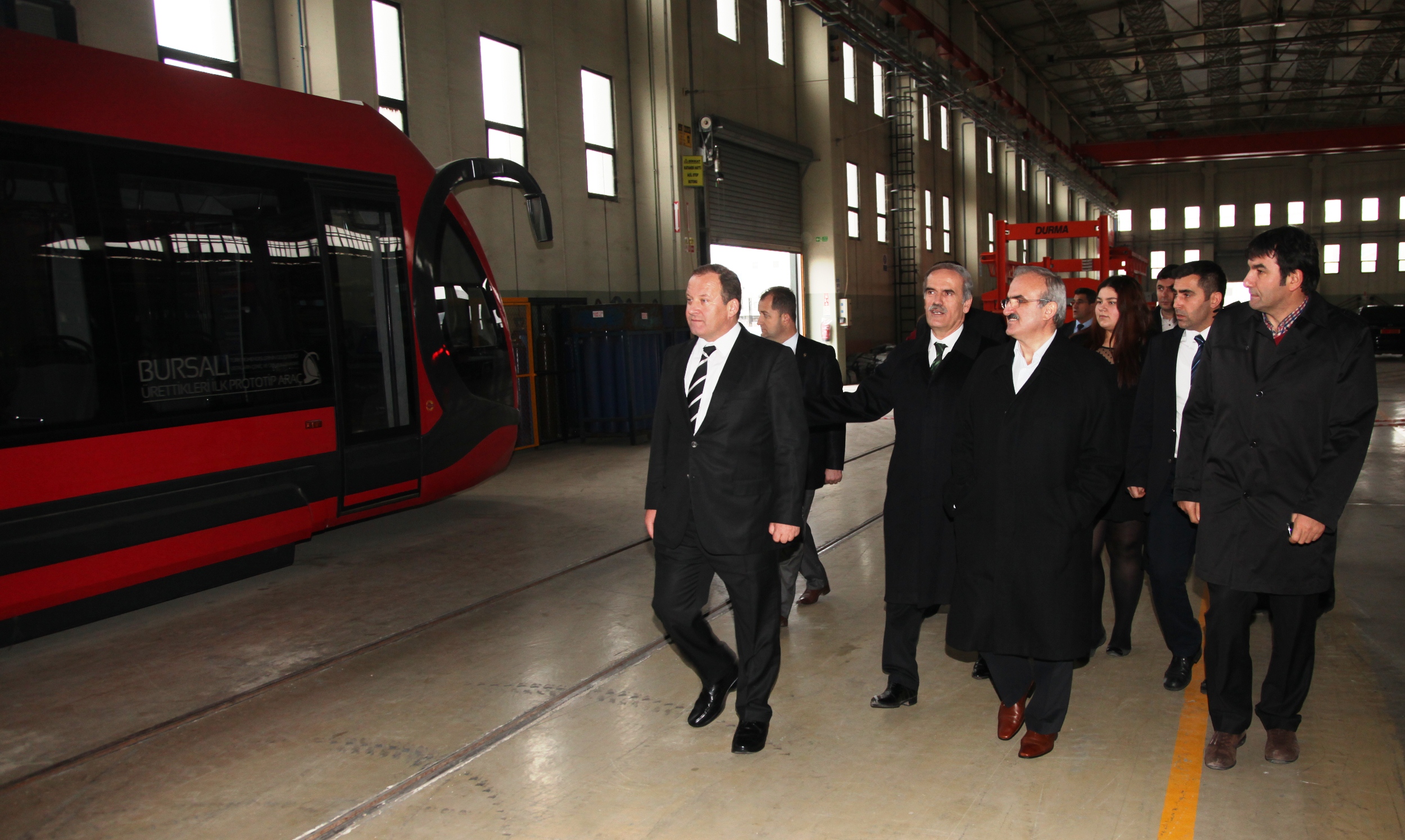 Bursa Valisi Münir Karaloğlu da üretim çalışmalarını ilgiyle inceleyerek, “Türkiye’nin bir hayalinin burada gerçekleşmiş olduğunu görmekten son derece mutluyum. Tabii kamu – özel sektör işbirliği de var burada. Bursa Büyükşehir Belediyemiz yerli tramvay fikriyle öne çıkıyor ve kendisine partner arıyor, partner de hemen yanıbaşında, Bursa sanayicisi. Hüseyin Durmaz bu işe gönül veriyor. Bu üretimin Bursa’da gerçekleşmesinden dolayı gururluyuz” şeklinde konuştu.