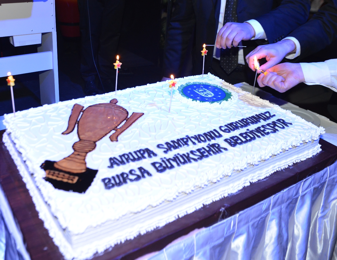 Bursa Büyükşehir Belediyesi tarafından Bursa Akademik Odalar Birliğinde (BAOB) bir restoranda verilen şampiyonluk yemeğine, sporcular ve teknik heyet yer aldı. Yemek öncesi basın mensuplarının sorularını yanıtlayan Bursa Büyükşehir Belediyespor’un başarılı antrenörü Emin İmen, yaptığı açıklamada, Bursa’ya ilk defa böyle tarihi bir zafer kazandırdıkları için çok mutlu olduklarını söyledi. Emeği geçen herkese teşekkür eden İmen, şampiyonluğun sevincini yaşamaya devam ettiklerini belirterek, “Hala maçı yaşıyoruz, daha toparlanamadık. Birkaç gün sonra toparlanırız. Çünkü lige devam etmemiz lazım. Önümüzde play-off’lar var. Hala o mutluluğu zirvede yaşıyoruz” dedi.
