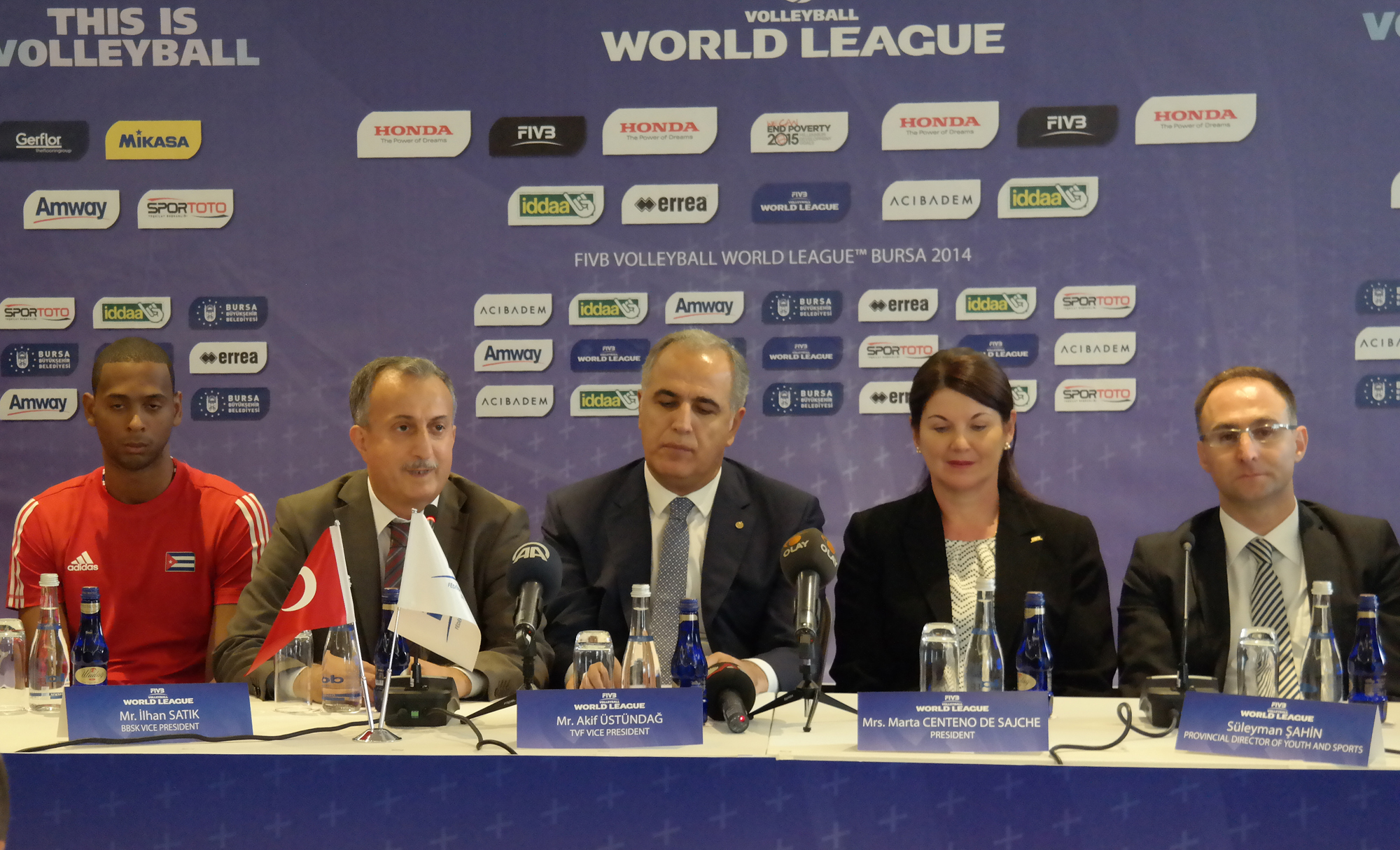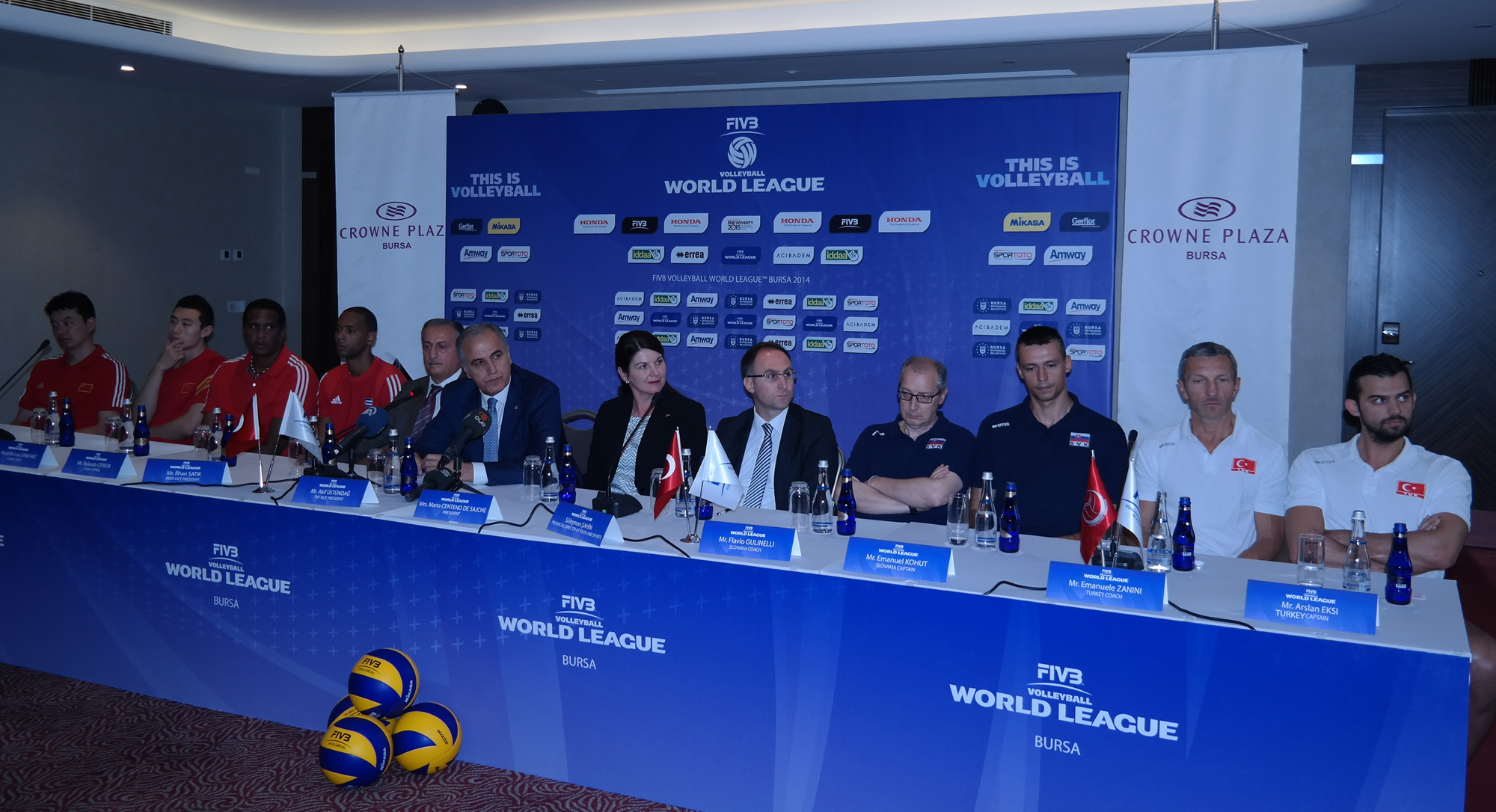 2014 FIVB (Uluslararası Voleybol Federasyonu) Dünya Ligi Erkekler 3´üncü Grup Finalleri´nin basın toplantısı, Bursa Crowne Plaza´da düzenlendi. Toplantıya Türkiye Voleybol Federasyonu (TVF) Başkan Vekili Mehmet Akif Üstündağ, FIVB Turnuva Sorumlusu Marta Centino, Bursa Gençlik ve Spor İl Müdürü Süleyman Şahin, Bursa Büyükşehir Belediye Belediyesi Başkan Vekili Abdullah Karadağ ile Türkiye, Çin, Küba ve Slovakya milli takımlarının antrenörleriyle takım kaptanları katıldı.