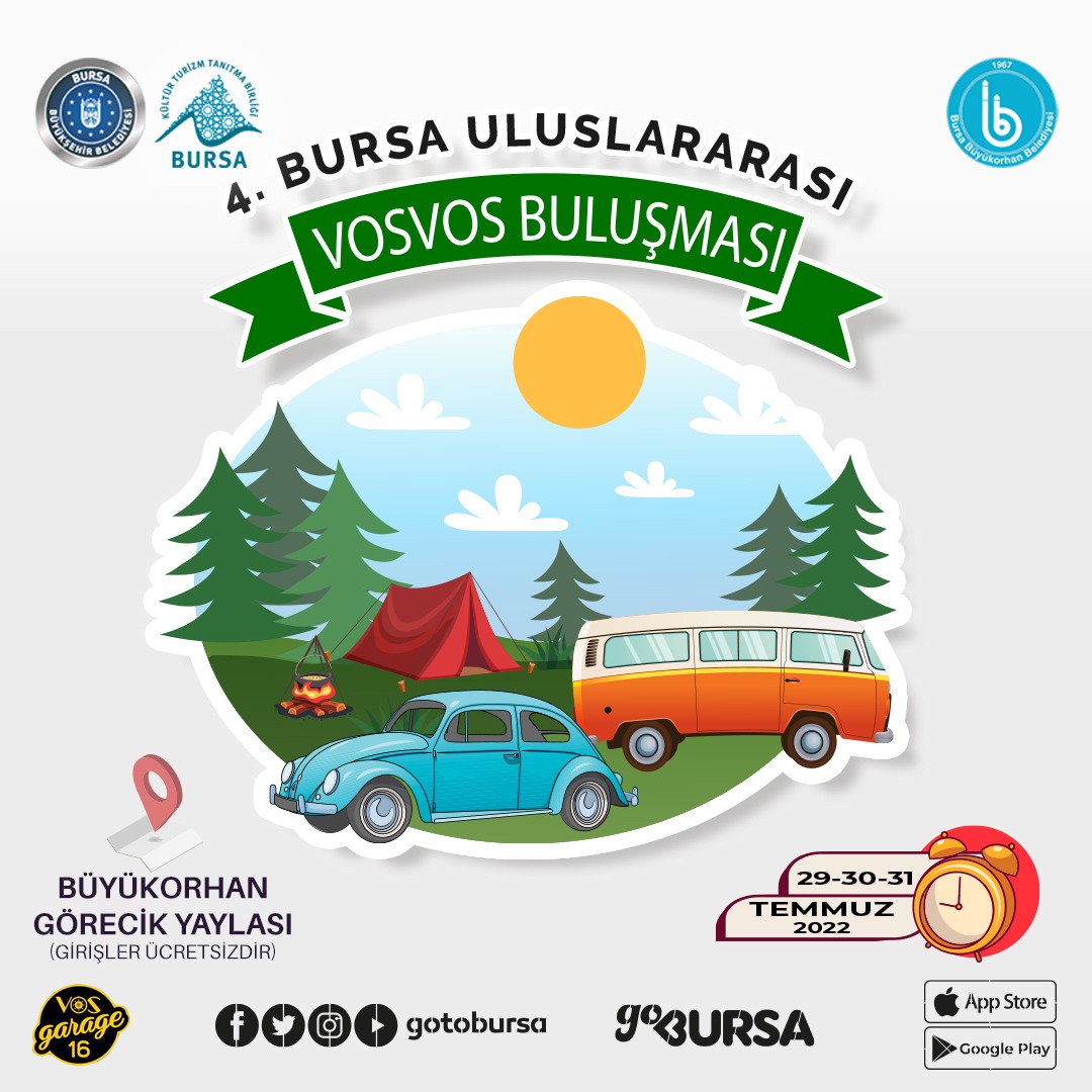 Büyükşehir Belediyesi, Bursa Kültür Turizm ve Tanıtma Birliği, Büyükorhan Belediyesi ve Vosgarage16 grubunun girişimleri ile düzenlenen 4. Bursa Uluslararası Vosvos Buluşması, 30-31 Temmuz tarihleri arasında Büyükorhan’ın Görecik Yaylası’nda gerçekleştirilecek. Türkiye’nin yanı sıra farklı ülkelerden de vosvos tutkunlarını bir araya getirecek etkinliğe; kamp ve karavancılar, dağcılar ve bisikletçiler yoğun ilgi gösteriyor. Festival kapsamında sportif faaliyetler, yöresel ürün tadımları, sokak oyunları, atölye çalışmaları, Hacivat ve Karagöz gösterisi, sosyal medya platformlarında araç tanıtımları gerçekleştiren Otomobilin Mesut Abisi (Mesut Bıyık) söyleşi programı, Grup Vira ve Ali Likoğlu konserleri düzenlenecek.
