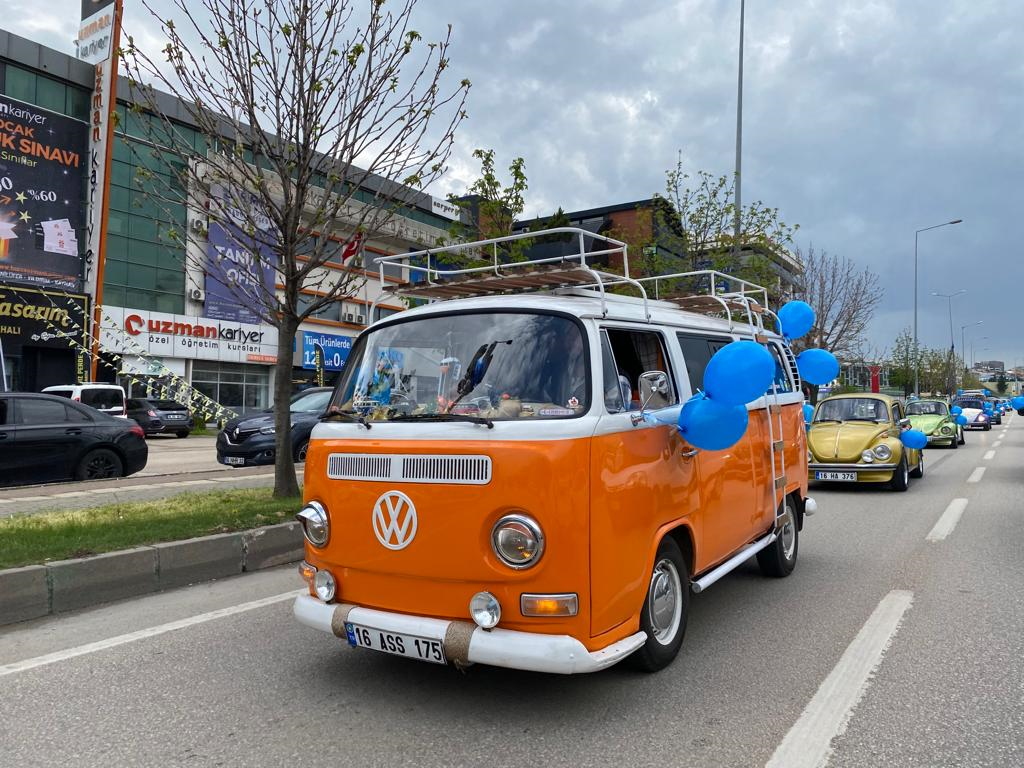 Dünya Otizm Farkındalık Günü nedeniyle otizme dikkat çekmek ve bu konuda toplumsal duyarlılık sağlanması hedefiyle farklı etkinlikleri hayata geçiren Bursa Büyükşehir Belediyesi, Bursa Otizm Derneği ve Vos Garage 16 grubu işbirliğinde düzenlenen şehir turu etkinliğine katkı sağladı. Etkinlik çerçevesinde birbirinden renkli araçlarıyla Bursa, Balıkesir ve İstanbul’dan gelen Vosvos tutkunları, Beşevler Meydanı'nda otizmli çocuklar ve aileleriyle buluştu. Araçlarını süsleyen vosvos tutkunları, daha sonra araçlarına aldıkları otizmli çocuklar ve aileleriyle şehir turu attı.