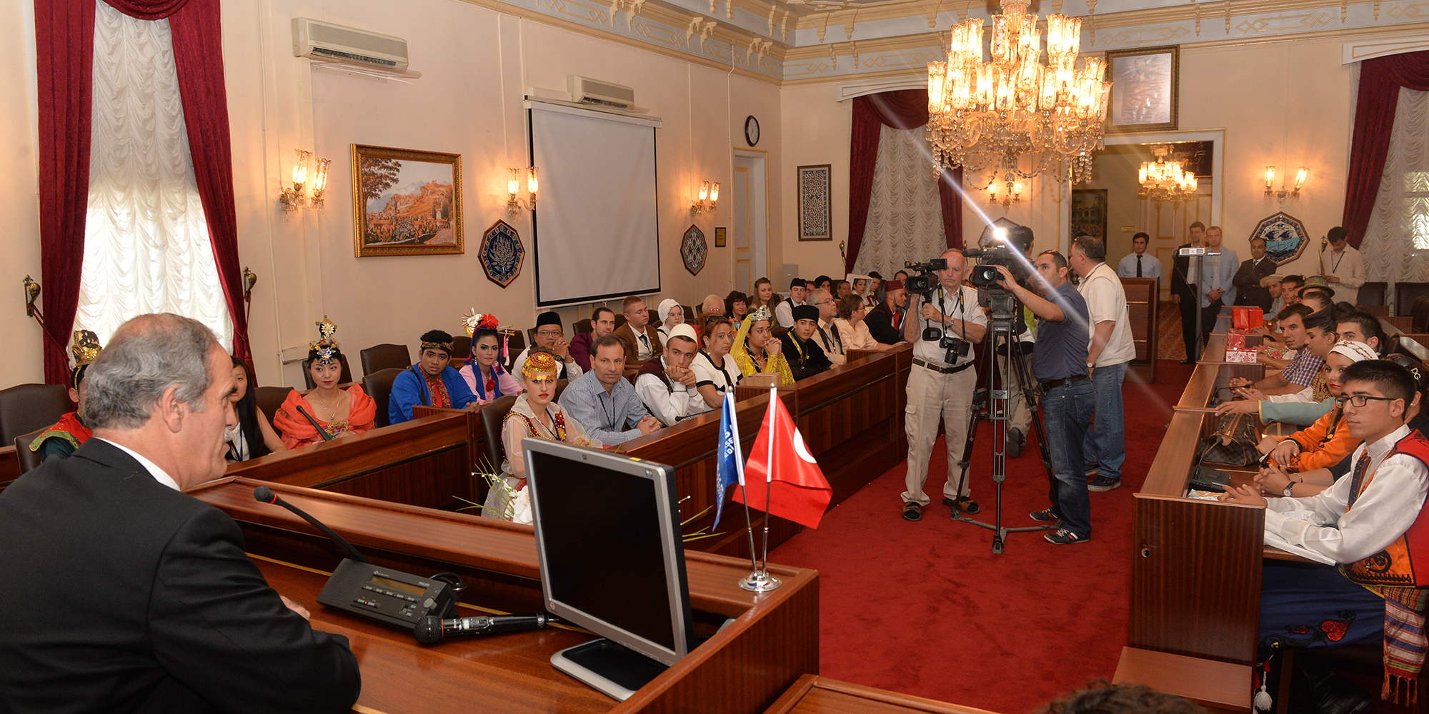 BURSA - Büyükşehir Belediye Başkanı Recep Altepe, 53. Uluslararası Bursa Festivali kapsamında gerçekleştirilen 28. Uluslararası Altın Karagöz Halk Dansları Yarışması için Bursa’ya gelen yabancı dansçıları ağırladı.