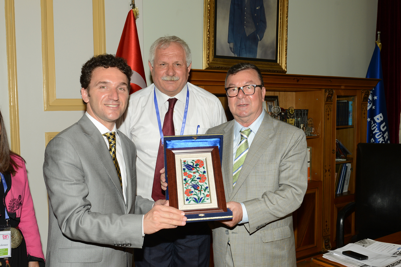 Büyükşehir Belediye Başkanvekili Atilla Ödünç, ziyaretin anısına misafirlerine Bursa’yla ilgili çeşitli hediyeler vererek hatıra fotoğrafı çektirdi. Yabancı ekipler de Başkanvekili Ödünç’e kendi ülkelerine has hediyeler takdim etti.