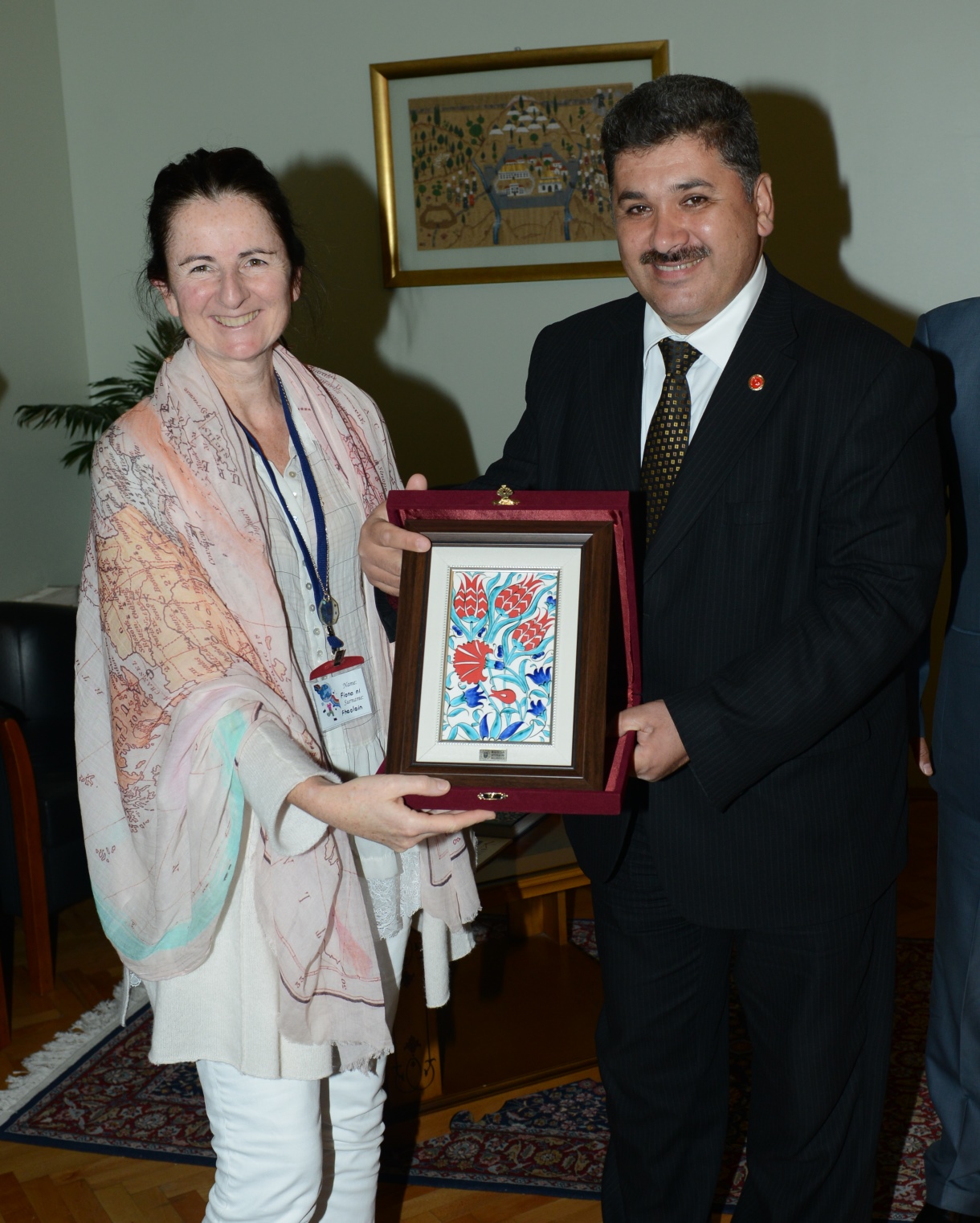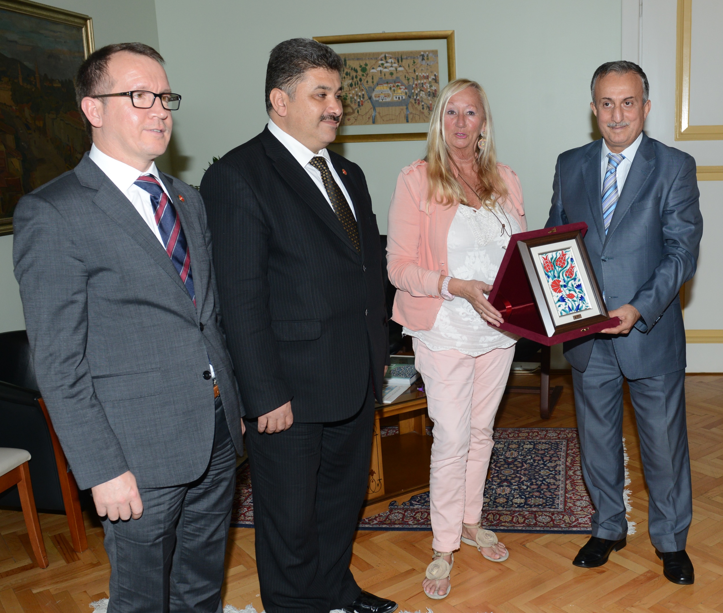 Tarihi Belediye Binası’nda gerçekleştirilen görüşmede, yabancı öğretmen ve öğrencileri Büyükşehir Belediyesi başkanvekilleri Abdullah Karadağ ve Abdülkadir Karlık ağırladı. Karadağ ve Karlık, Bursa Büyükşehir Belediyesi’nin yatırımları ve eğitim çalışmaları hakkında öğrencilere bilgiler verdi. 6 gün boyunca Bursa’yı gezen konuklar, kenti çok beğendiklerini söyledi. Bursa’da bulunmaktan dolayı çok mutlu olduğunu ifade eden heyet üyeleri, kültürlerarası diyaloğun önemli olduğuna dikkati çekti. Ziyaretin sonunda heyet temsilcilerine Bursa’ya özgü hediyeler verildi.