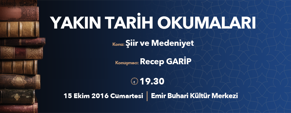 Bu günde dek alanında uzman onlarca akademisyen, sanatçı ve bilim insanını Bursalılarla buluşturan Emir Buhari Kültür Merkezi’nde gerçekleştirilecek yeni sezonun ilk programının konuğu 22. Dönem Adana Milletvekili, ilahiyatçı, şair ve ressam Recep Garip olacak. Garip, 15 Ekim Cumartesi Saat 19.30’da başlayacak programda “Şiir ve Medeniyet” ilişkisini anlatacak. Emir Buhari Kültür Merkezi Müdürü Sami Özbağkıran, “Yakın Tarih Okumaları” etkinliğini her ayın 2. haftası düzenleyeceklerini, tarih meraklılarının da ilgi gösterdiği program ile siyasetten, sanata birçok konu başlığında yakın tarihe ışık tutacaklarını söyledi. Emir Buhari Kültür Merkezi’ndeki programların halka açık ve ücretsiz gerçekleştirildiğini ifade eden Özbağkıran, şiir ve tarihe ilgi duyanları sezonun ilk programına davet etti