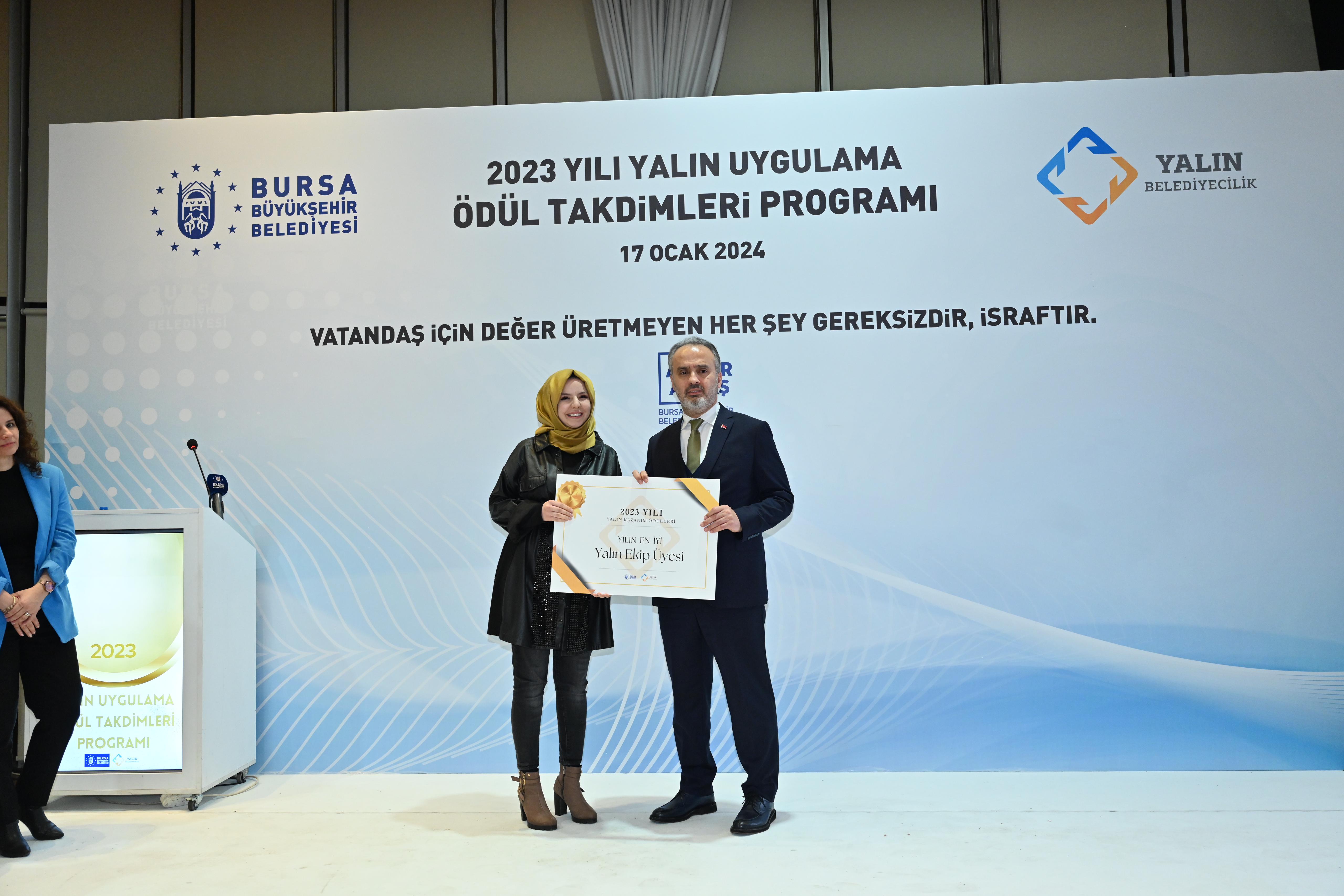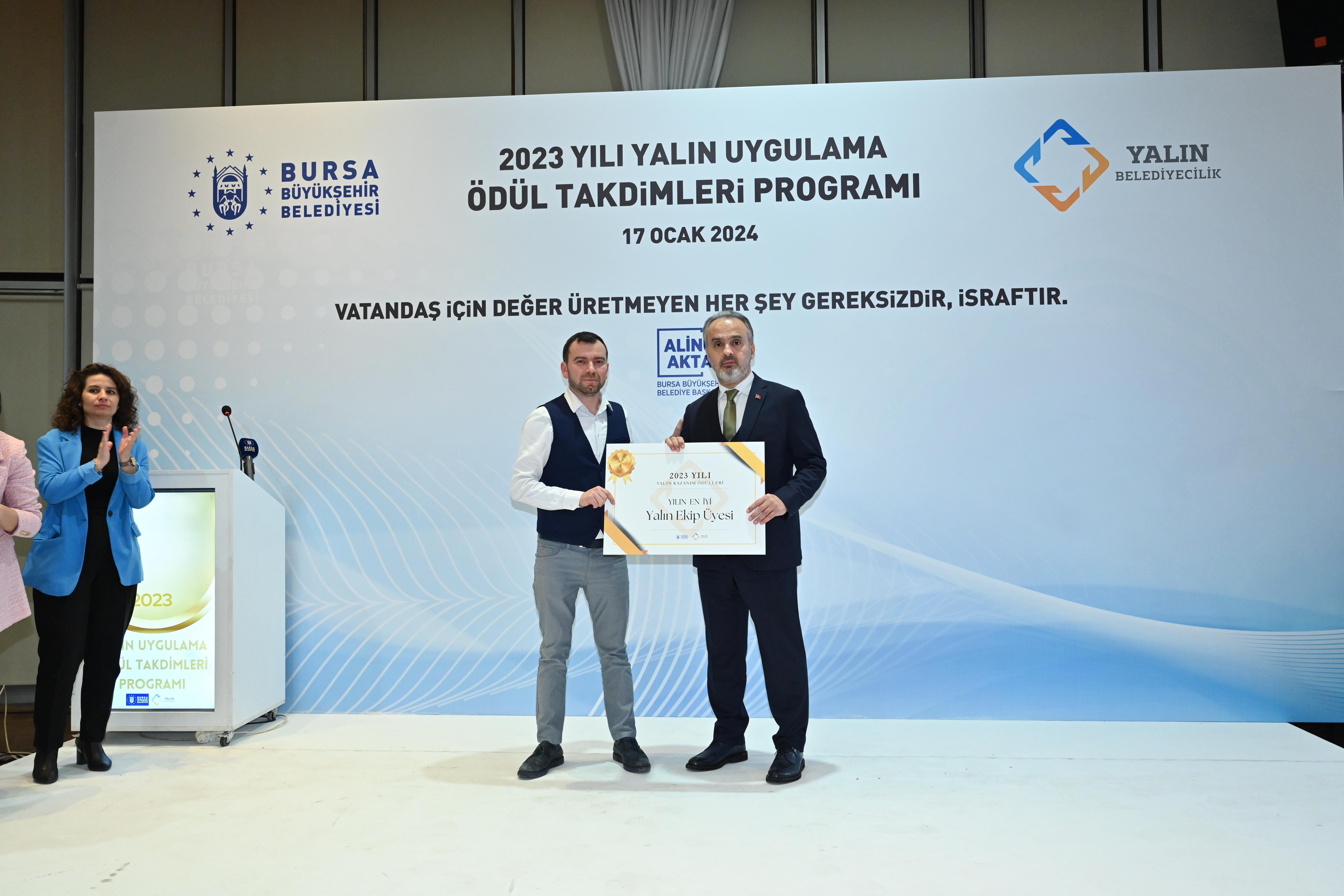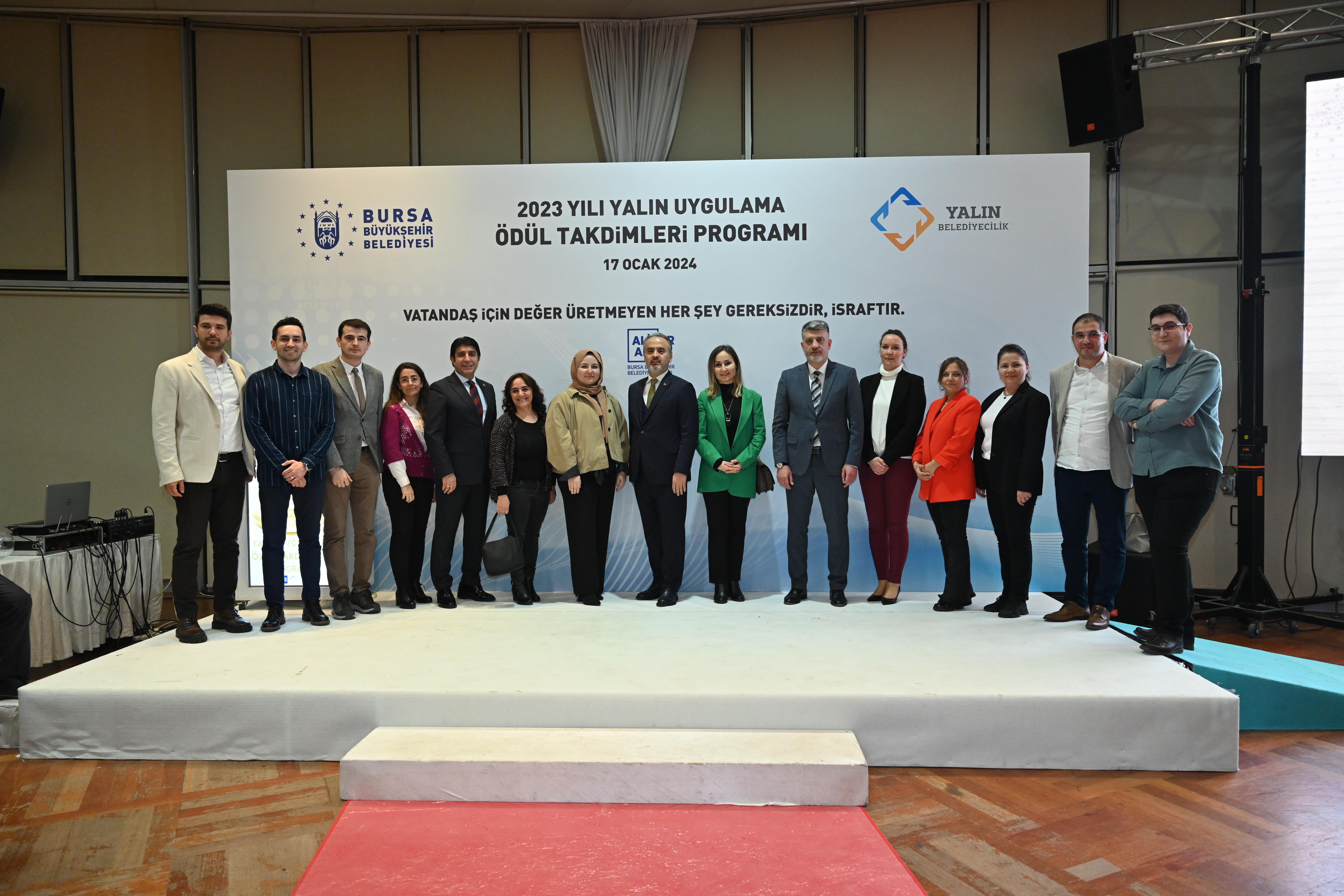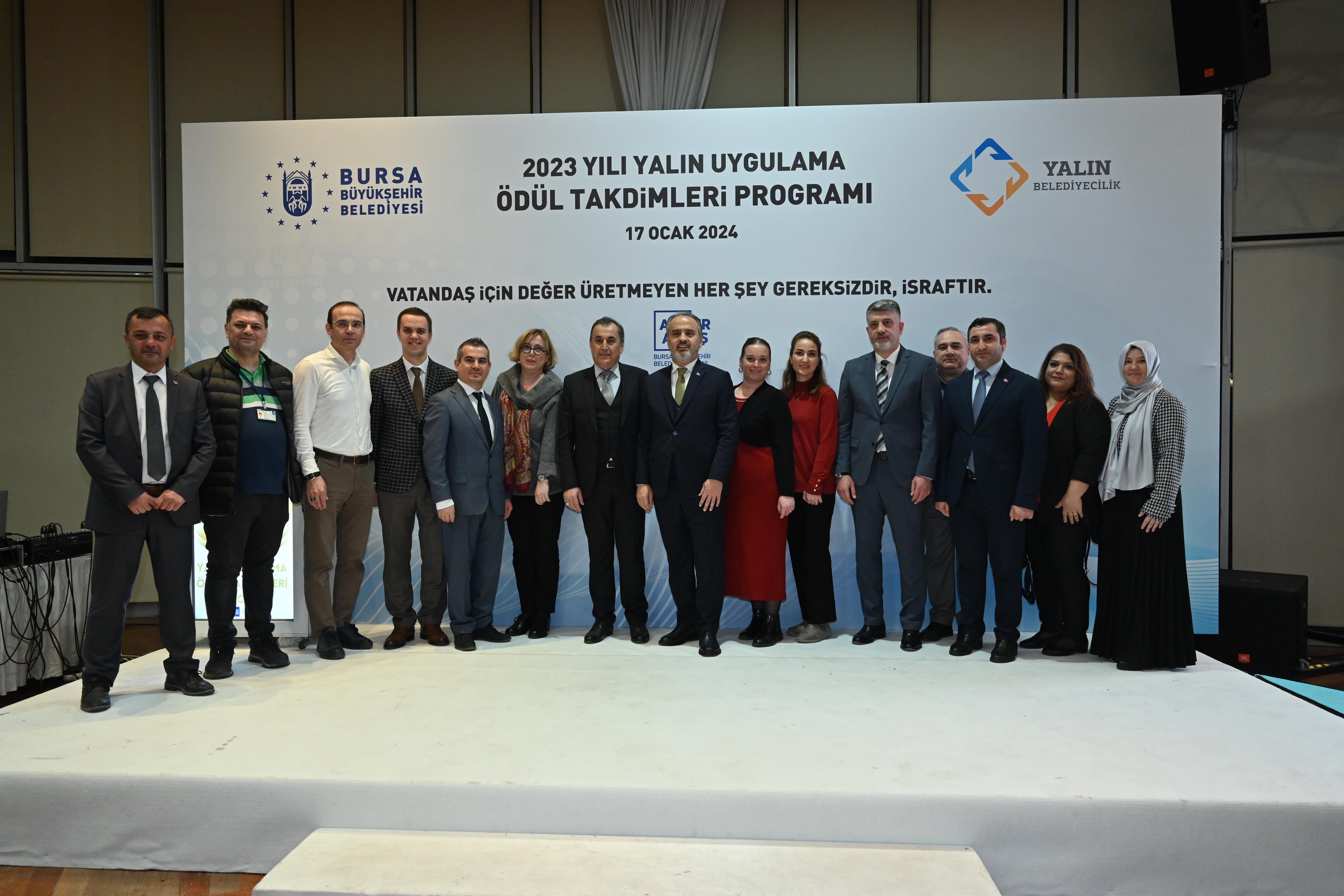 Bursa Büyükşehir Belediyesi, var olan kaynakların en etkin şekilde kullanılarak en verimli hizmetin sunulabilmesi amacıyla, kamuda örneklerine fazla rastlanılmayan yalın yönetim sistemini 2020 yılında uygulamaya başladı. Türkiye’de yerel yönetimlere örnek olarak başlatılan uygulama kapsamında yapılan çalışmalarla, vatandaş için değer üretmeyen ancak kaynak tüketen her şey gereksiz ve israf olarak tanımlandı. Atatürk Kongre ve Kültür Merkezi’nde 2023 yılındaki yalın uygulamaların ödüllendirilmesine yönelik düzenlenen törene Bursa Büyükşehir Belediye Başkanı Alinur Aktaş, Büyükşehir Belediyesi Genel Sekreteri Ulaş Akhan, Genel Sekreter Yardımcıları ile Belediye iştiraklerinin Genel Müdür ve Genel Müdür Yardımcıları, Daire Başkanları ve Yalın yönetim ekipleri katıldı. Ödül töreni öncesinde Yalın Uygulamalarla ilgili çalışma yapan ekipler arasında Yalın Uygulamalara dair kelimelerle ilgili bir oyun oynandı. Ödül takdimi öncesi Strateji Geliştirme Dairesi Başkanı Alper Bayrak, Yalın Belediyecilik ve ödüllendirme sistemi ile ilgili bilgiler içeren bir sunum gerçekleştirdi.