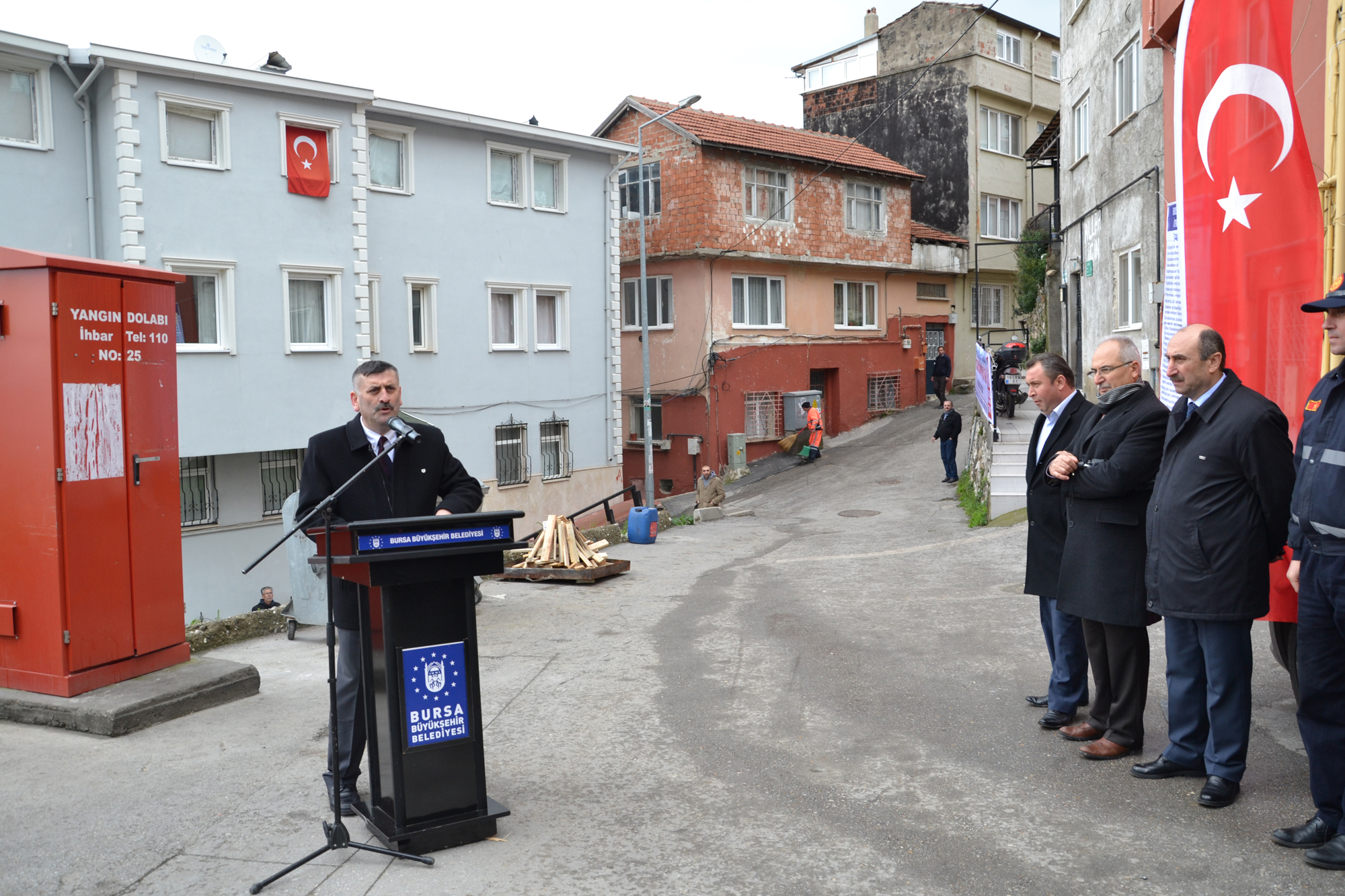 BURSA - Büyükşehir Belediyesi tarafından itfaiye araçlarının girmekte zorlandığı dar sokaklar ile merdivenli sokaklardaki olası yangınlara müdahale etmek amacıyla 5 yıl önce başlatılan yangın dolabı sayısı, yeni yapılan 12 yangın dolabı ile 60’a çıktı.
