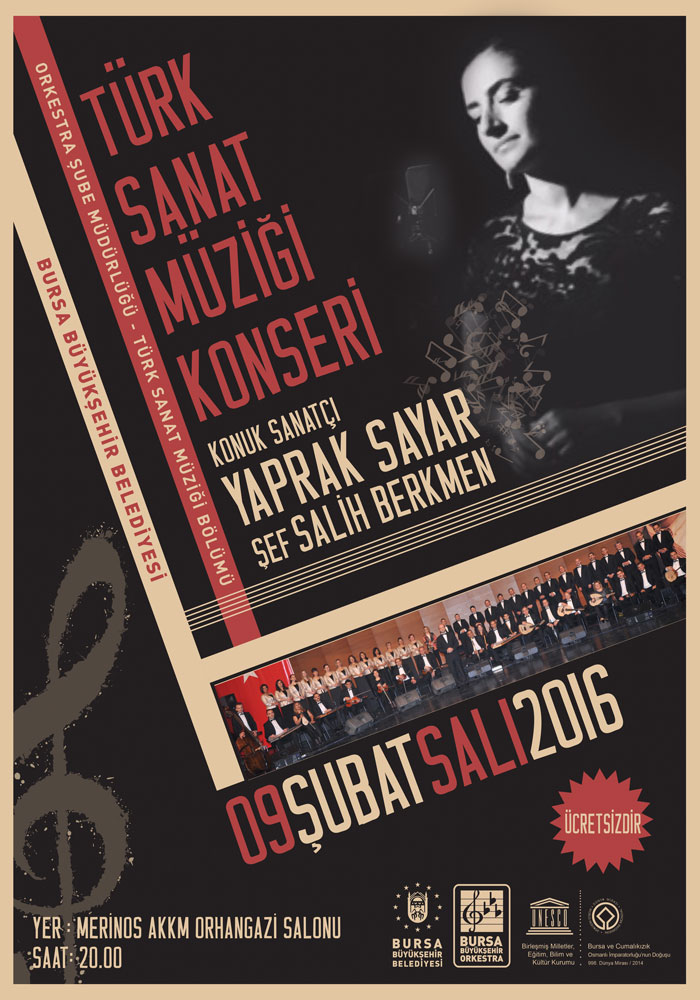 BURSA – Bursa Büyükşehir Belediyesi Orkestrası Türk Sanat Müziği Bölümü’nün usta sanatçı Yaprak Sayar’ın konuk olacağı konseri, 9 Şubat Salı günü saat 20.00’da Merinos AKKM Orhangazi Salonu’nda gerçekleştirilecektir.