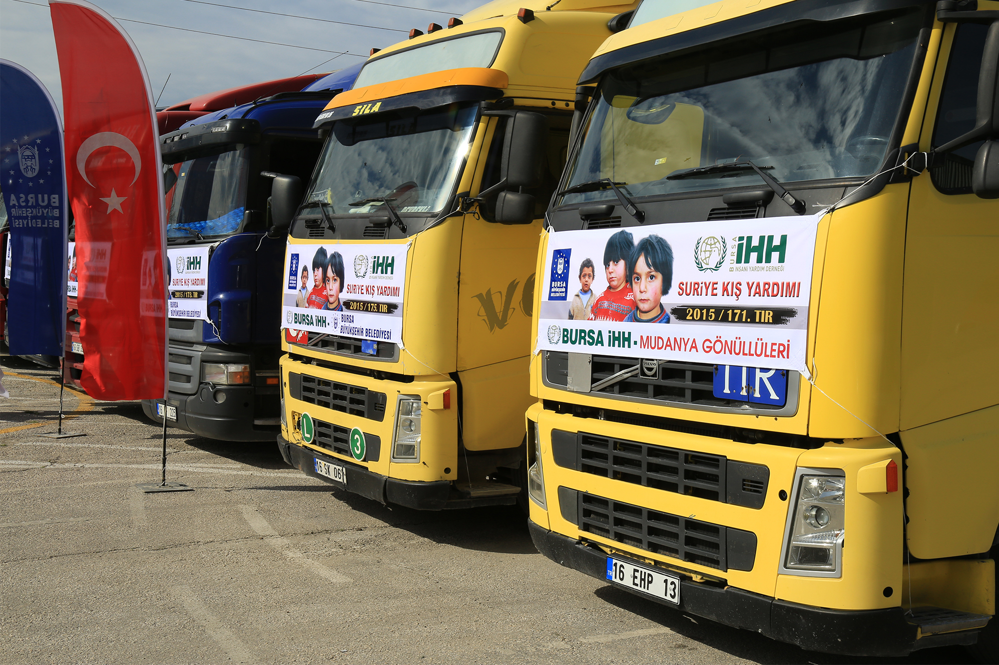 BURSA - Bursa Büyükşehir Belediyesi ve İnsani Yardım Vakfı’yla (İHH) Mudanya ve Gürsulu hayırsever vatandaşların katkılarıyla hazırlanan 7 TIR dolusu yardım, Suriye’deki yetimlere ulaştırılmak üzere yola çıkarıldı.