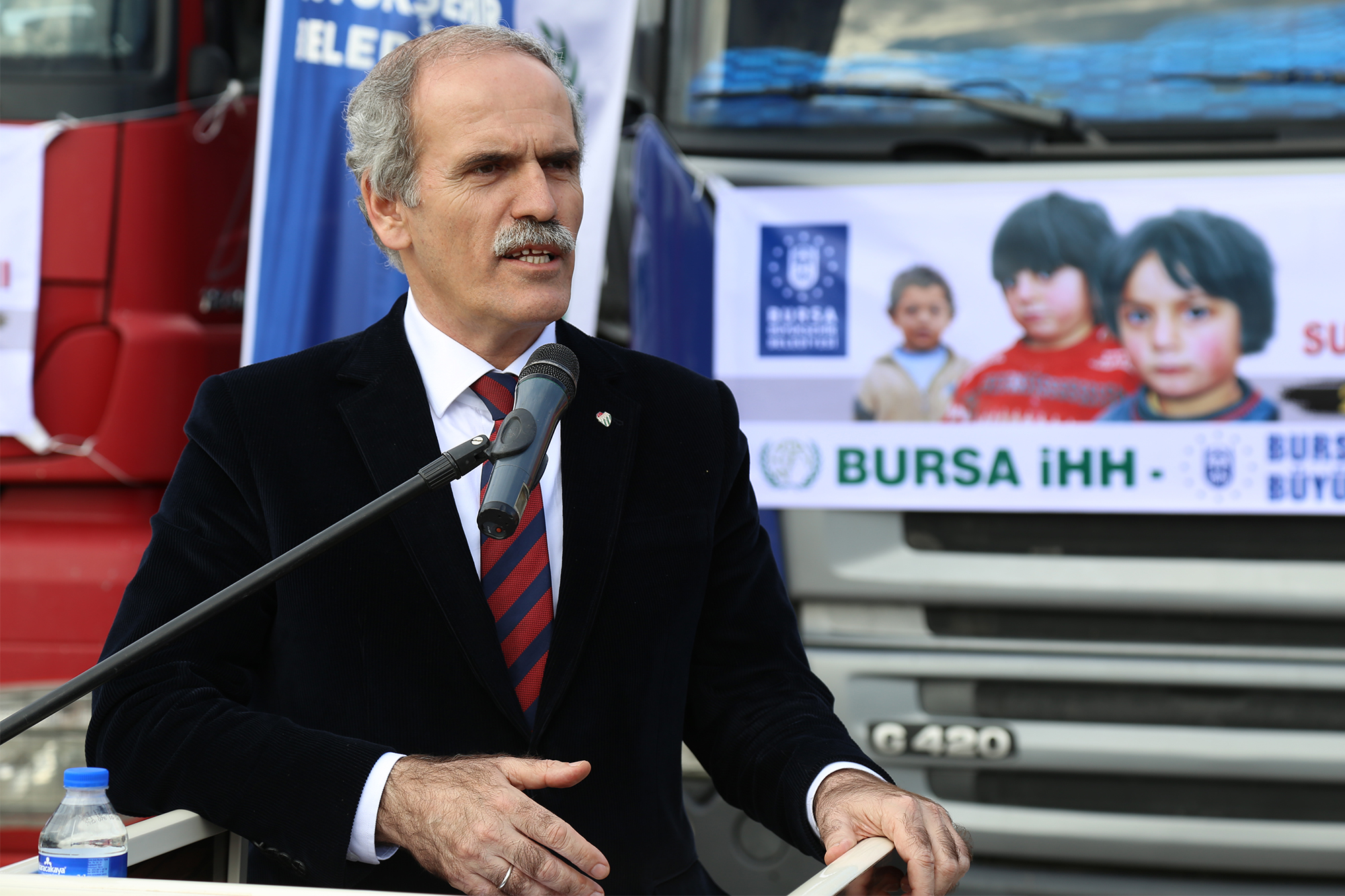 - BURSA’DA BÜYÜKŞEHİR BELEDİYESİ VE SİVİL TOPLUM KURULUŞLARI TARAFINDAN TOPLANAN 7 TIR DOLUSU YARDIM MALZEMESİ, SURİYE’DEKİ İHTİYAÇ SAHİPLERİNE ULAŞTIRILMAK ÜZERE YOLA ÇIKARILDI.