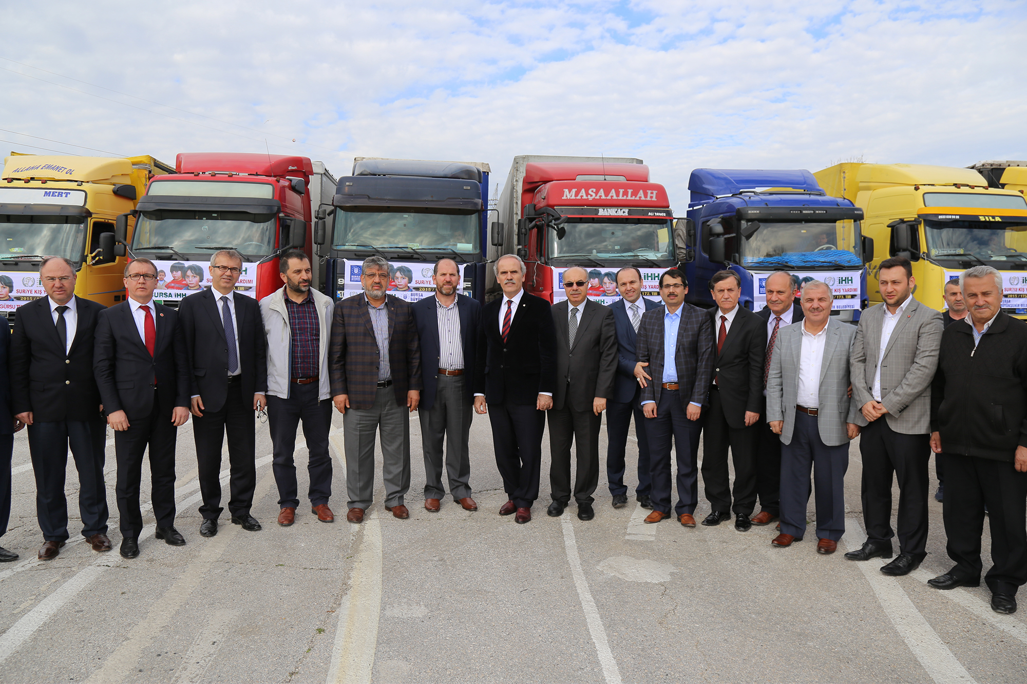 Konuşmalardan sonra Kestel İlçe Müftüsü Mustafa Mestan’ın yaptığı duanın ardından TIR’lar yola çıkarıldı. Büyükşehir Belediyesi ve İHH ile Mudanya ve Gürsulu hayırsever vatandaşların yardımlarıyla oluşturulan TIR’lar; kuru gıda, odun, kuzine soba, konfeksiyon ürünleri, kumaş, battaniye, kutu ilaç ve hijyen malzemelerinden oluşuyor.
