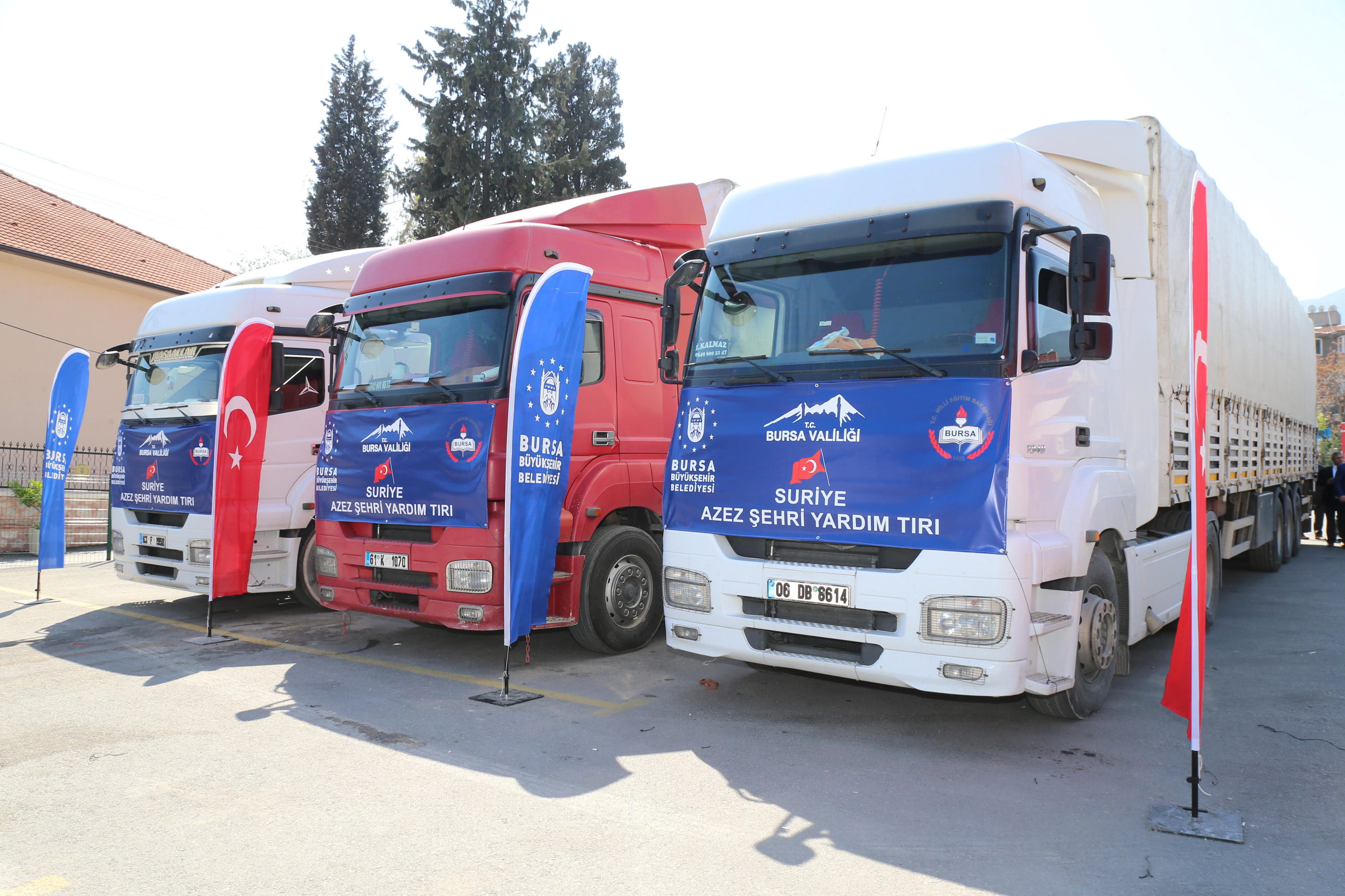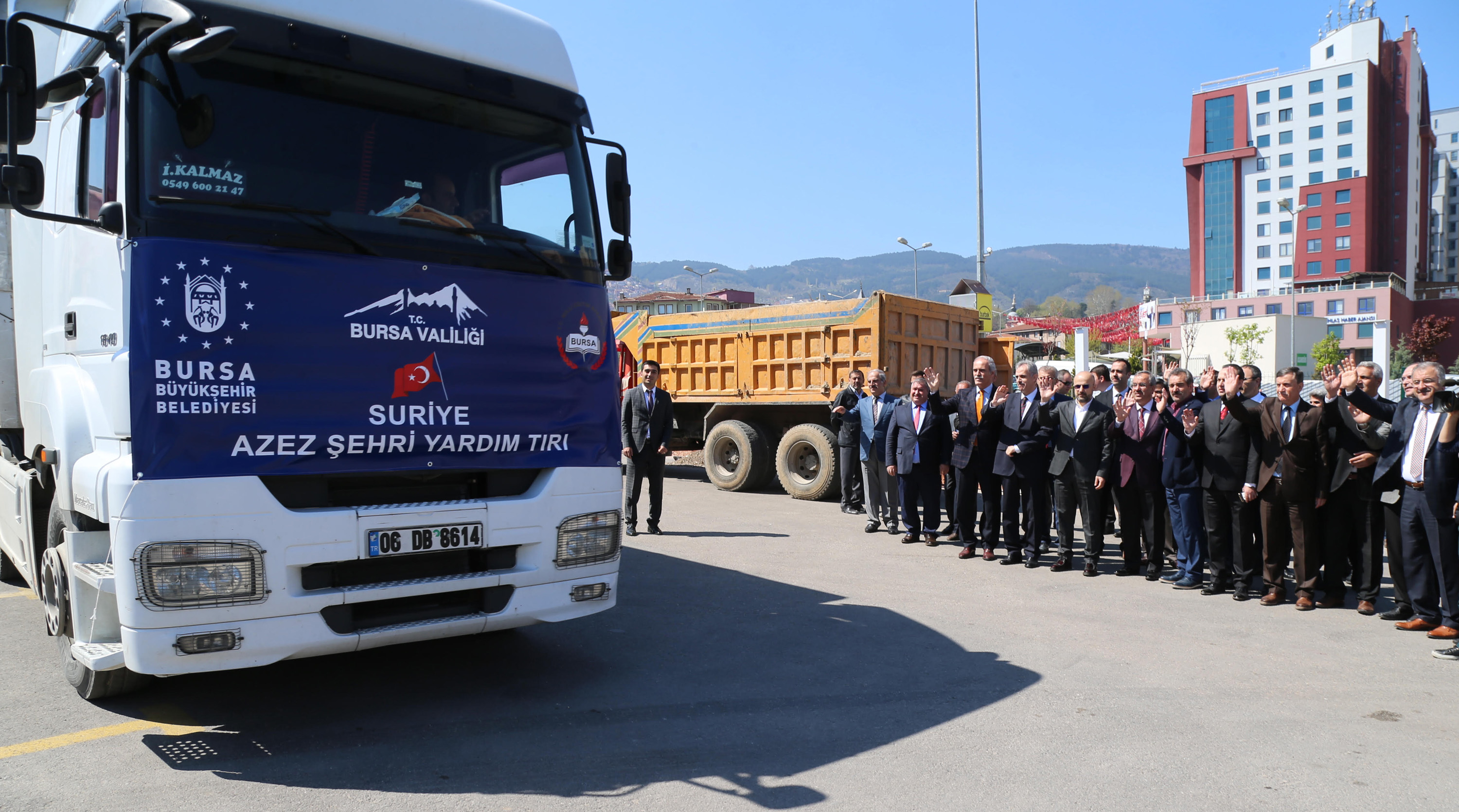 Bursa Büyükşehir Belediyesi ve İl Milli Eğitim Müdürlüğü tarafından hazırlanan, içinde eğitim malzemelerinin bulunduğu 3 tır, Suriye Azez’deki ihtiyaç sahiplerine ulaştırılmak üzere, Doğanbey Otoparkı’ndan gönderildi. Büyükşehir Belediye Başkanı Recep Altepe, Bursa’dan, kardeş ülke Suriye’ye desteğin devam ettiğini ve ülkede 6 yıldır devam eden zulüm bitene kadar da yardımların devam edeceğini söyledi.