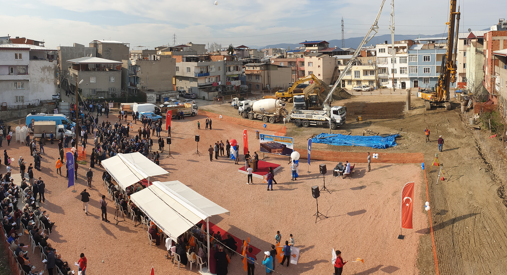 Konuşmaların ardından bölgeye değer katacak Pazar alanı ve kapalı otoparkın temeli atıldı.