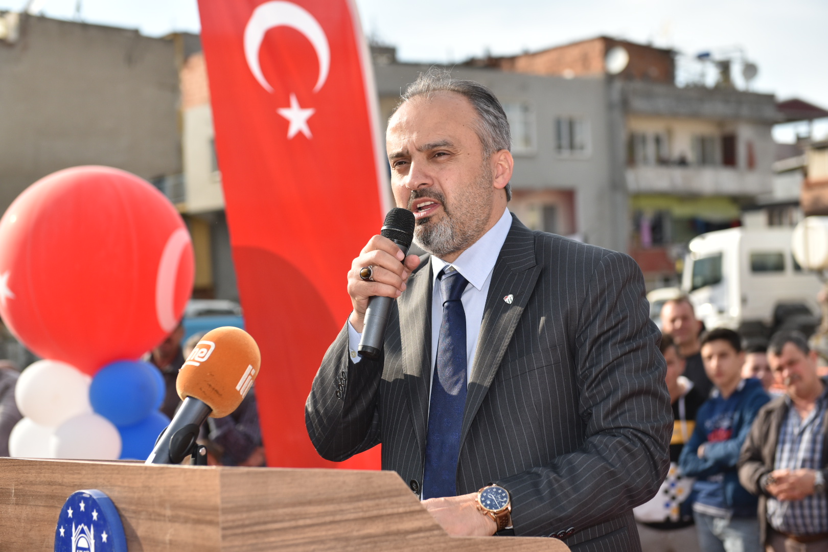 Bursa Büyükşehir Belediye Başkanı Alinur Aktaş, temel atma töreninde yaptığı konuşmaya, merhum başkan Cüneyt Yıldız’ı rahmetle anarak başladı. Kendisinin üçüncü dönem başkanlığında, Yıldız’ın birinci dönemini yaşadığını ve seçimlerden 1 yıl sonra yaşamını yitirdiğini hatırlatan Aktaş, “Benden 5 yaş küçüktü. Kendisini çok sevmiştik. Rabbimden ona şehit hükmünde muamele etmesini diliyorum. O’nun taahhüt ettiği bir işi gerçekleştirmek benim için büyük bir onur ve büyük bir kıvanç” dedi.