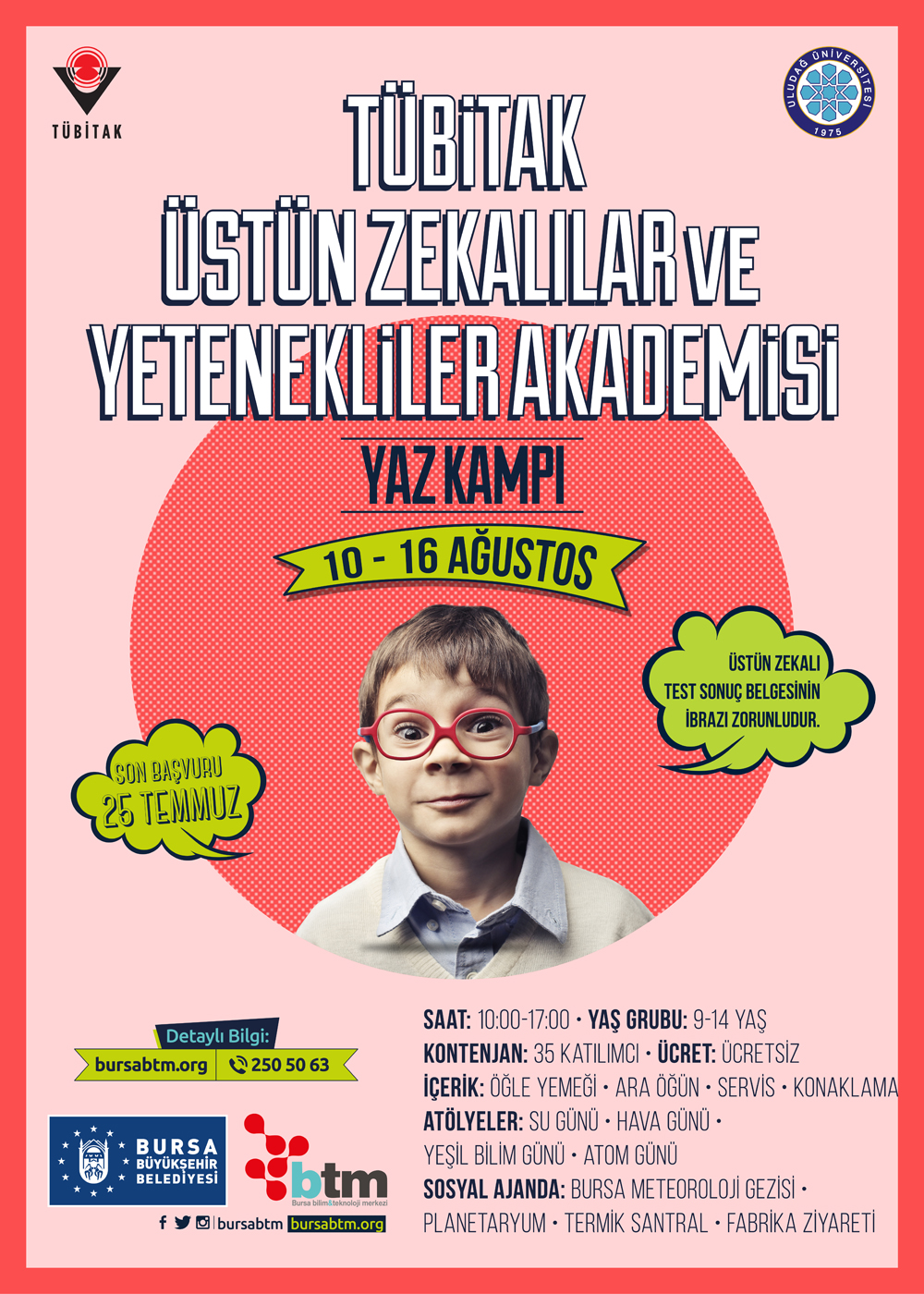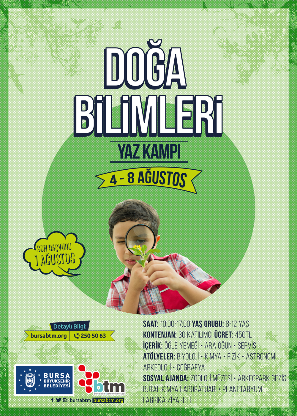 BTM’deki kamplara katılacak olan gençler, kamp süresince yoğun bir bilim eğitimi programından faydalanacak, bilimsel bilgi, yetenek ve tecrübelerini arttıracak. Kamplara katılacak öğrencilerin gözlem, bilimsel yöntem ve üst düzey bilişsel becerileri kullanma gibi özellikleri de kalıcı olarak gelişmesi hedefleniyor. Vatandaşlar, kamplarla ilgili detaylı bilgiye de ‘bursabtm.org’ adlı internet adresinden veya 0 224 250 50 63 numaralı telefonlardan ulaşabilecekler.