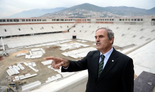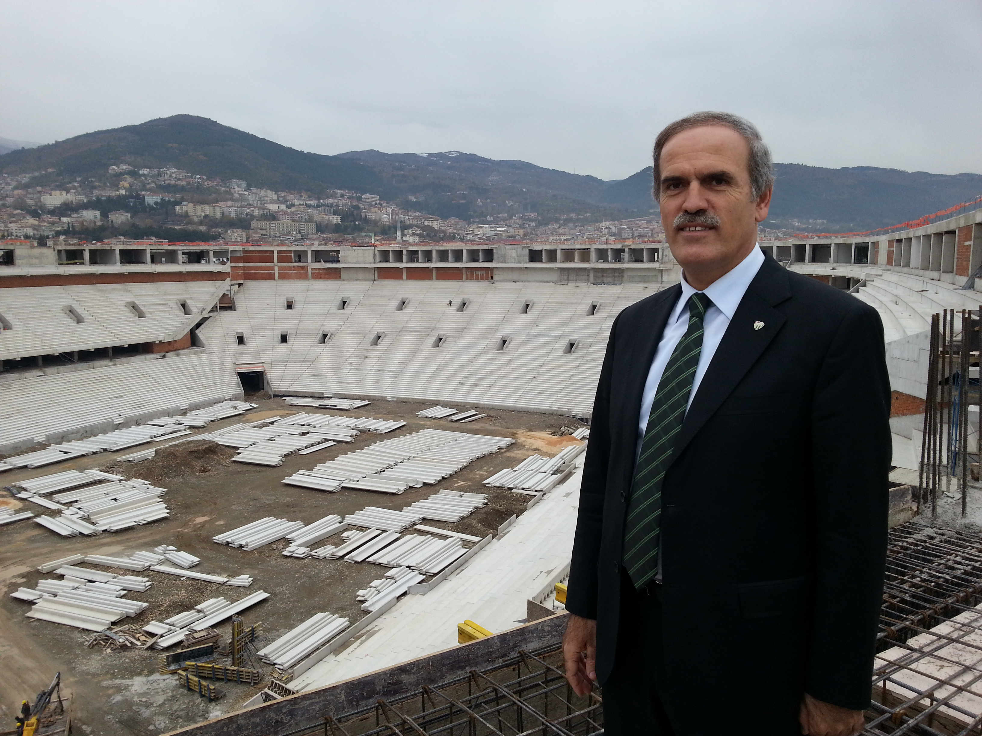 ´´İstanbul´da Türk Telekom Arena Stadı yapıldı, eski Ali Sami Yen Stadı´nın bulunduğu yere alışveriş merkezi, ticaret merkezleri yapılıyor. Biz bu stadı kendimiz yapıyoruz, eski stadın yerini de meydan olarak değerlendireceğiz. Sayın Başbakanımızın bu konuda isteği var. O nedenle stat için 50 trilyon yardım yaptı. Bu stadı belediye başlattı. Her şeyiyle belediyenin malı olacak. Bursa´ya, Bursa sporuna, Bursaspor´a, ülke turizmine önemli katkı sağlayacak.´´