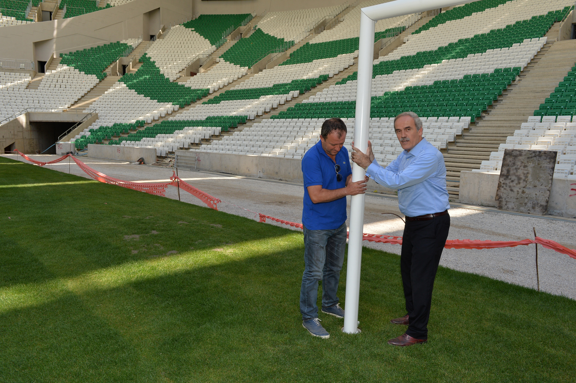 Başkan Altepe, yeni stadyumun Bursa’nın artık simgelerinden biri olduğunu belirterek, “Bursa’nın en büyük anıtsal yapılarından biri olan stadyum, Bursa’ya da Türkiye’ye de değer katacak. Yeni sezonda yeni maçların burada yapılması için bizler büyük heyecanla çalışıyoruz. Artık sahada tüm düzenlemeler bitti, çimler yerlerine yerleşti. Son eksiklerin tamamlanmasıyla çalışmalar birkaç gün içinde bitmiş oluyor. Kısa bir süre sonra saha maç yapılır hale gelecek. Tribünler daha önce tamamlanmıştı, soyunma odaları ve diğer birimlerde de çalışmalar yapıldı” dedi.